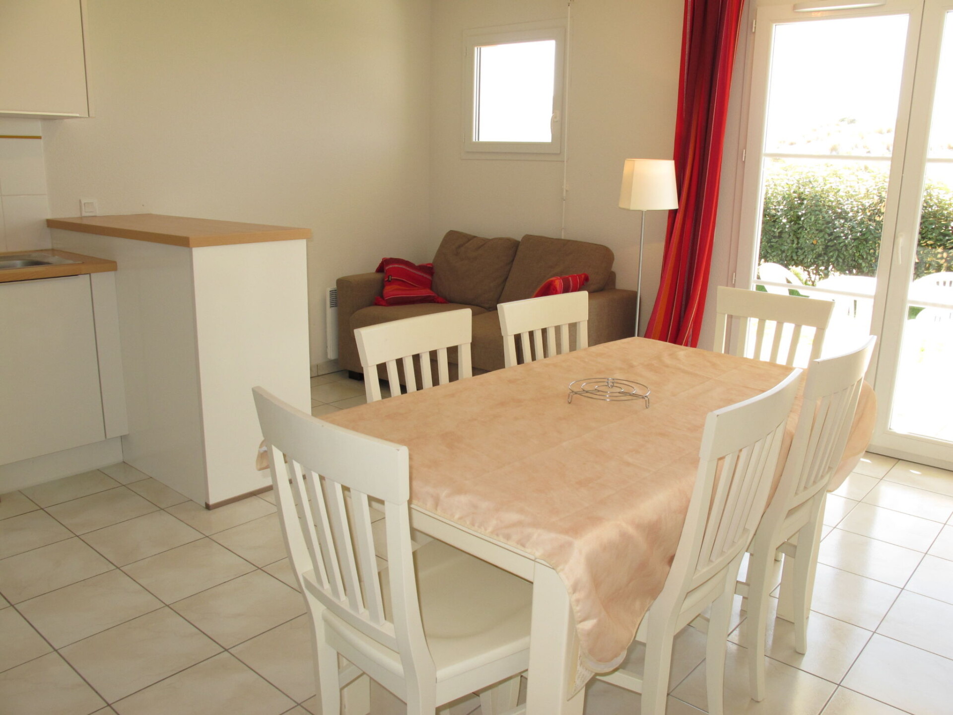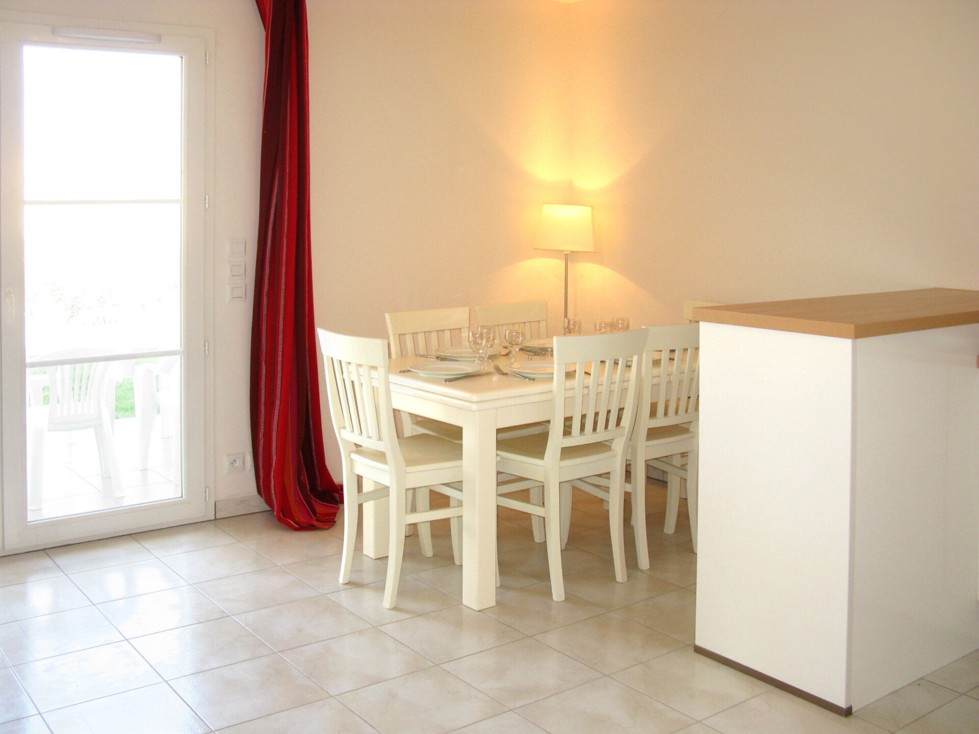 "Résidence Indigo II", halfvrijstaand huis 4-kamers 75 m2 op 2 verdiepingen. Licht, doelmatig en gezellig ingericht: woon-/eetkamer met eettafel en TV (Flatscreen TV). Uitgang naar het terras. 1 kleine kamer met 1 uitschuifbaar bed (2 x 80 cm, lengte 190 cm). Kookhoek (afwasmachine, 4 keramische glas kookplaten, broodrooster, waterkoker, magnetron, diepvriezer, elektrische koffiemachine). Douche/WC. Bovenverdieping: 1 kamer met 3 bedden (90 cm, lengte 190 cm). Uitgang naar het balkon. 1 kamer met 1 2-pers bed (140 cm, lengte 190 cm). Badkamer, aparte WC. Elektrische verwarming. Balkon, terras gedeeltelijk overdekt. Terrasmeubelen. Ter beschikking: wasmachine, strijkijzer, kinderstoel, kinderbed (extra). Internet (WiFi, gratis). Niet rokers woning. Maximaal 1 huisdier/hond toegestaan. Rookmelders.