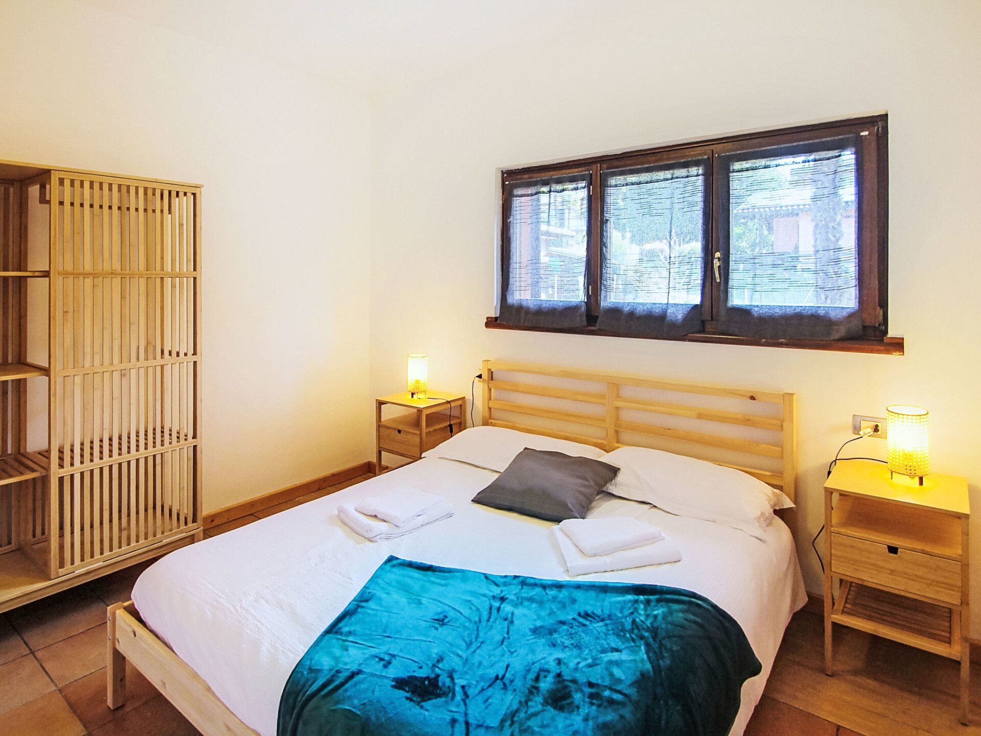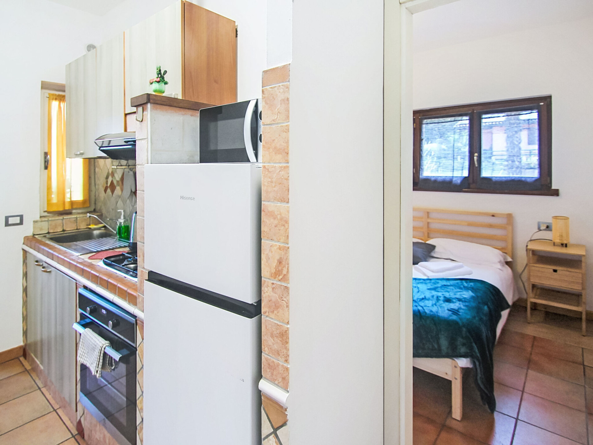 Appartement 2-kamers 45 m2 op de 1e verdieping. Doelmatig en gezellig ingericht: woon-/eetkamer met 1 divanbed, 1 uitschuifbaar bed en TV. Uitgang naar het terras. 1 2-pers. kamer. Kleine, open keuken (4-pits kookplaat, oven, waterkoker, magnetron, diepvriezer). Douche/bidet/WC. Terras 10 m2. Terrasmeubelen, ligstoelen (2). Ter beschikking: haardroger. Internet (WiFi, gratis). Rookvrij huis. IT012092B4YO8UQ65U