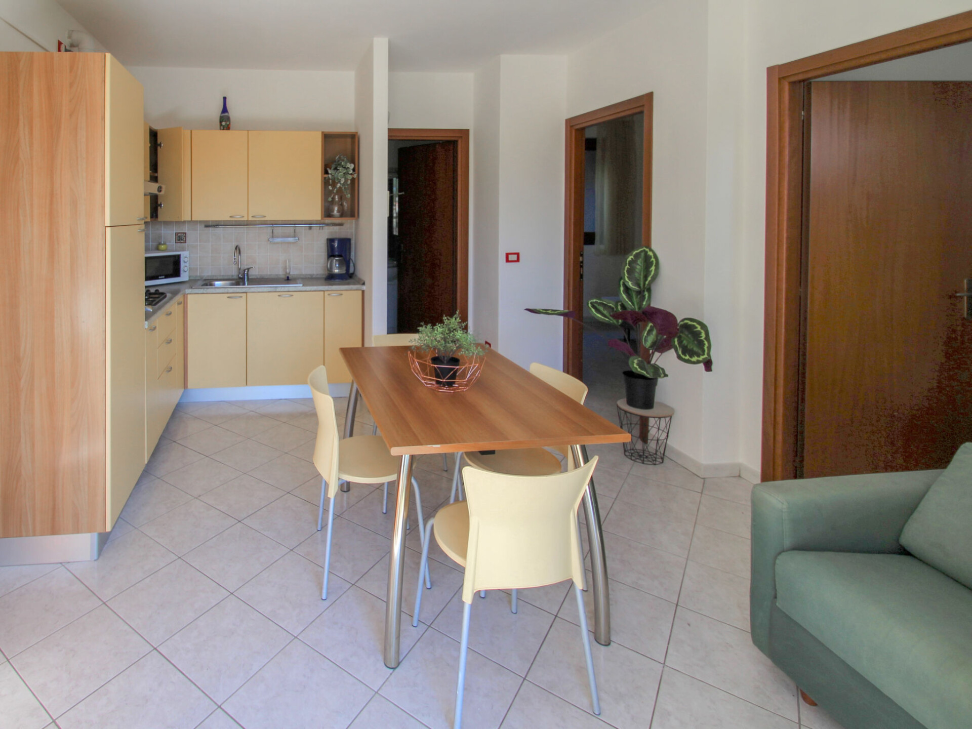 Huis in een rij 3-kamers 55 m2, op de begane grond. Doelmatig ingericht: woon-/eetkamer met 1 divanbed, TV en air-conditioning. Uitgang naar de tuin. 1 2-pers. kamer. 1 kamer met 2 bedden. Kookhoek (4-pits kookplaat, afwasmachine, waterkoker, magnetron, diepvriezer). Douche/bidet/WC. Tuin 50 m2. Terrasmeubelen, ligstoelen (2). Ter beschikking: haardroger. Internet (WiFi, gratis). Rookvrij huis. IT012092B4B46CVE2G