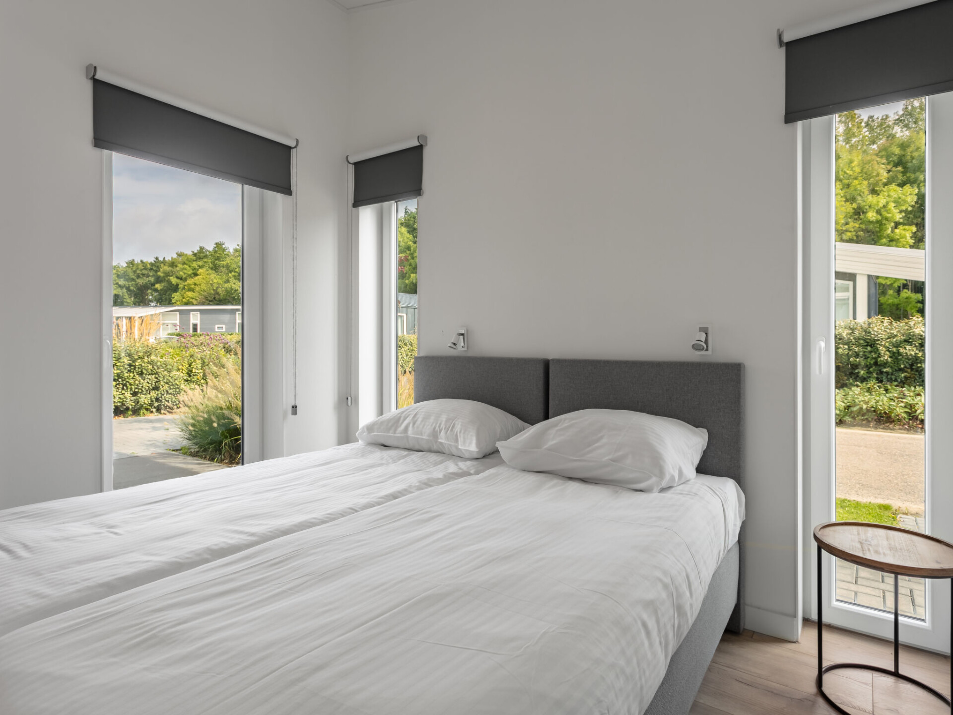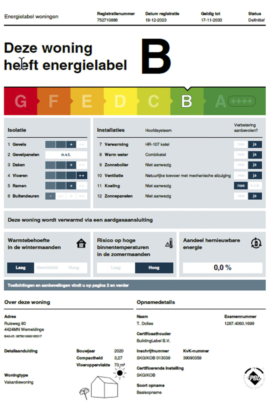 "Ruisweg 80", bungalow 3-kamers 83 m2. Comfortabel en modern ingericht: hal met aparte WC. Woon-/eetkamer met eettafel en Flatscreen TV. Uitgang naar het terras. 2 2-pers. kamers, elke kamer heeft 2 bedden (90 cm, lengte 200 cm). Open keuken (oven, afwasmachine, 4 inductiekookplaten, waterkoker, diepvriezer, elektrische koffiemachine, combimagnetron). Douche. Verwarming. 2 terrassen. Terrasmeubelen, zitgelegenheid, bergruimte. Beperkt uitzicht op het bos. Ter beschikking: wasmachine. Internet (WiFi, gratis). Parkeerplaats (1 Auto) bij het huis. Rookvrij huis. Rookmelders. De gashaard kan tijdens de koudere maanden gebruikt worden. De woning is gelegen naast de entree van het park. Boekingen zijn alleen voor vakantiedoeleinden toegestaan. Ter plaatse kan een borg van EUR 100 per persoon in rekening worden gebracht.