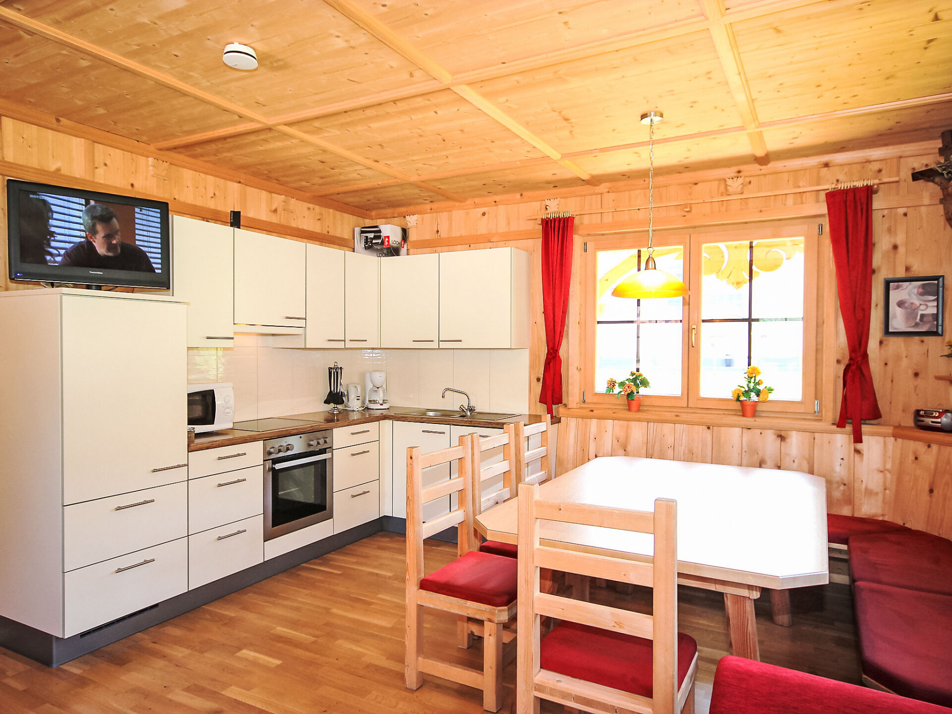 Chalet 6-kamers 100 m2 op 2 verdiepingen. Comfortabel en met veel hout ingericht: hal. Woonkamer met zwedenkachel en Sat-TV (Flatscreen TV), radio en CD-speler. 1 2-pers. kamer. Open keuken (oven, afwasmachine, 4 keramische glas kookplaten, magnetron, diepvriezer) met eettafel. Aparte WC. Bovenverdieping: 4 2-pers. kamers. 2 douches, aparte WC. Zithoek in de tuin. Terrasmeubelen, barbecue, bergruimte. Mooi uitzicht op het landschap. Ter beschikking: kinderstoel, kinderbed. Internet (WiFi, gratis). Niet rokers woning. Rookmelders. Gelieve kinderbedden op het moment van boeking te reserveren. Belangrijk: max. 10 personen toegestaan (incl. kinderen). Het beddengoed voor de wieg is langs zichzelf gebracht.