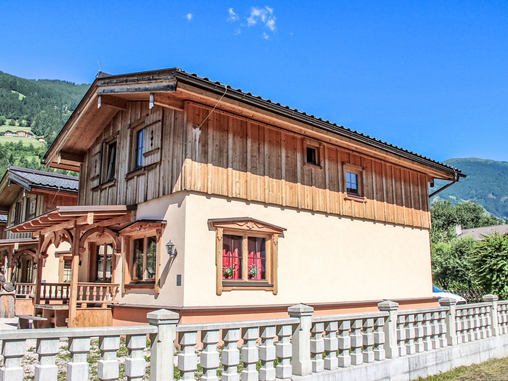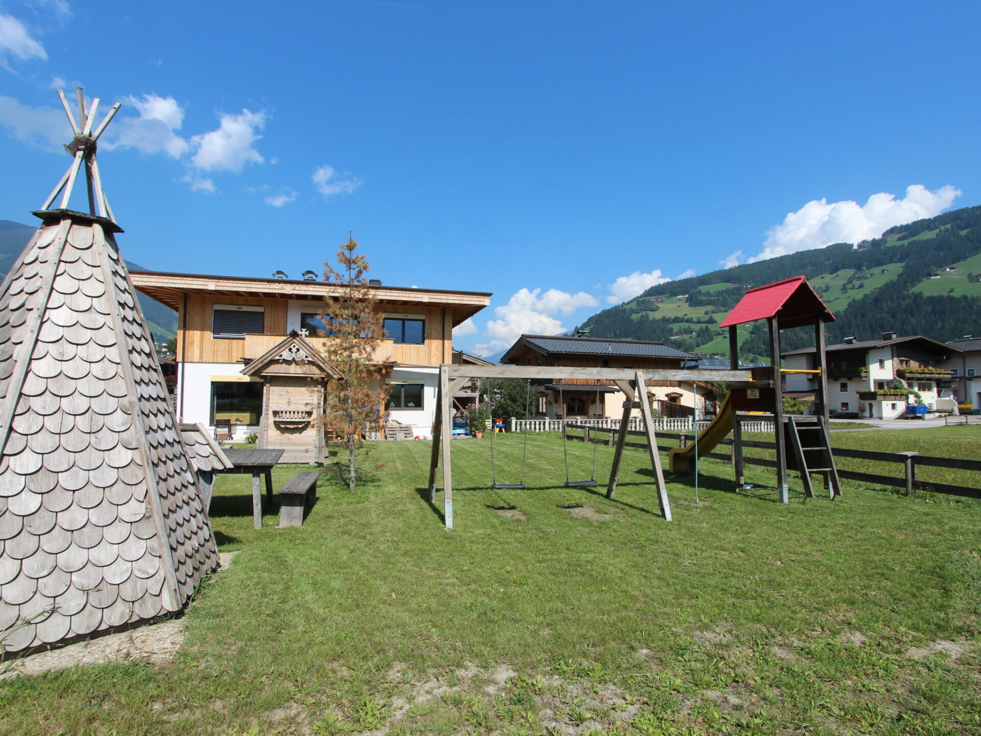 Schwendau 3 km van Mayrhofen: Middenin het prachtige ski- en wandelgebied van het Zillertal vormen 4 houten blokhuizen (winter 2009/10 twee houten blokhuizen) een kindvriendelijk en klein, kindvriendelijk, gezellig vakantiepark "Schwendau", bouwjaar 2009. 3 km van het centrum van Mayrhofen, aan de rand van de plaats, rustige, zonnige ligging, 8 km van het meer, 1 km van het skigebied. Voor medegebruik: terrein. Kinderspeelplaats (glijbaan, schommel). Voor alleengebruik: ligweide. Patio, tuinmeubelen, barbecue. In het huis: Internet (WiFi), sauna, infrarood sauna, ontspanningsruimte, berging voor ski's, centrale verwarming. Toegangsweg tot aan het huis. Parkeerplaats. Levensmiddelenwinkel 50 m, supermarkt 2 km, restaurant 500 m, bakkerij 50 m, bushalte "Schwendau Drei Linden" 51 m, treinstation "Ramsau i.Z.-Hippach Bahnhof" 900 m, openluchtzwembad 500 m, overdekt zwembad 3 km. Manege 500 m, kabelbaan op 1 km, skibushalte 25 m, langlaufloipe 50 m. Bekende skigebieden kunnen gemakkelijk worden bereikt: Zillertal 3000 1 km, Zillertal Arena 6.5 km, Kaltenbach-Hochfügen 12 km. Bekende meren kunnen gemakkelijk worden bereikt: Badesee Aufenfeld 8 km. Gratis skibus. De afgebeelde foto is slechts een voorbeeld. De biologische huizen zijn voornamelijk van hout gemaakt. In een van de 4 huizen bevindt zich (afgesloten) de saunaruimte met Finse sauna en infrarodcabine (voor medegebruik van maandag - vrijdag, april - november, tegen betaling) met een rustruimte, douche en aparte WC. De Horbergbaan (verbinding met het skigebied Zillertal 3000) op 1 km.