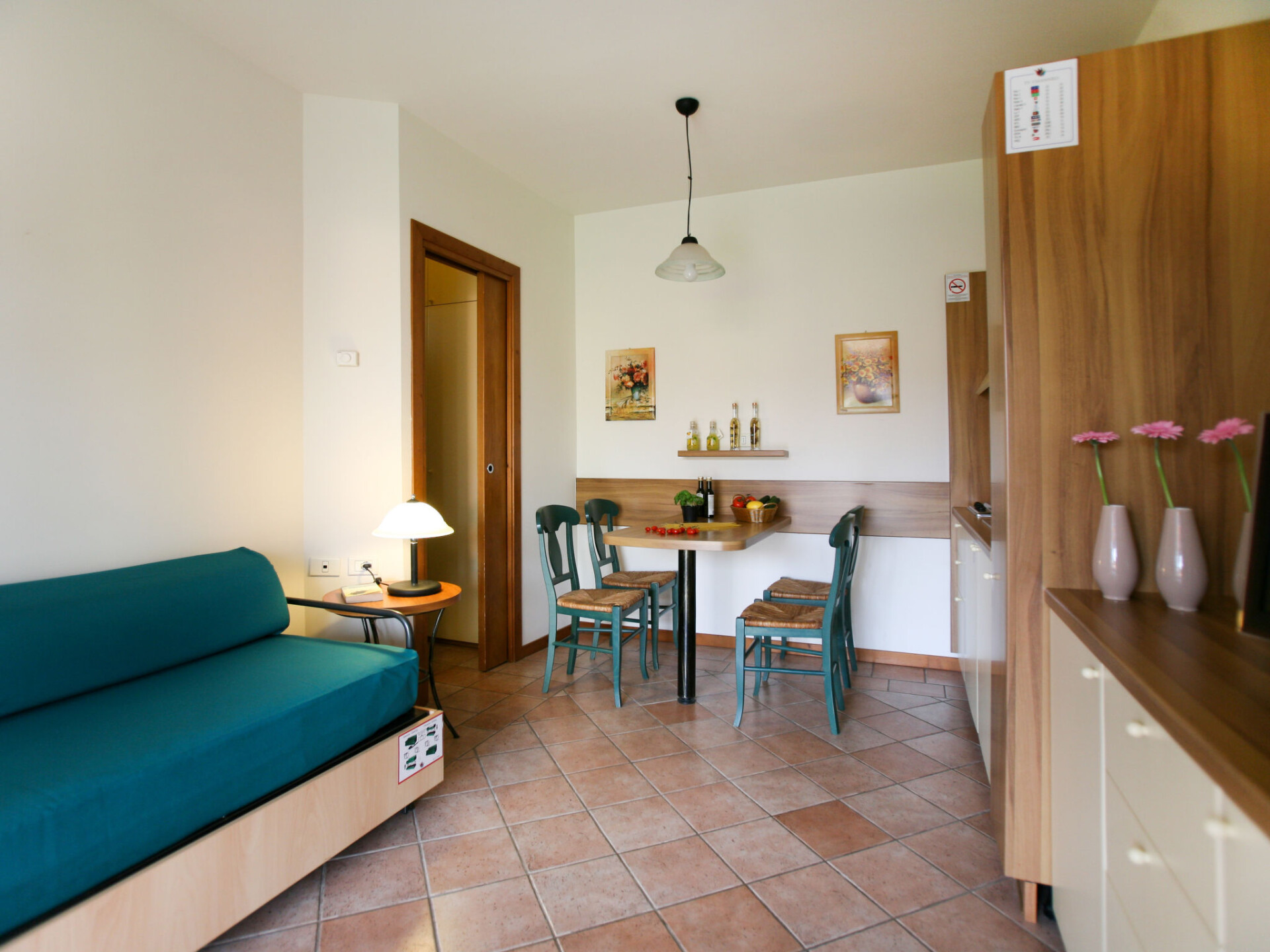 Bungalow 2-kamers 25 m2, op de begane grond. Doelmatig ingericht: woon-/slaapkamer met 1 x 2 stapelbedden, eettafel en Sat-TV. Uitgang naar het terras. 1 kleine 2-pers. kamer. Open keuken (2-pits kookplaat). Douche/WC. Verwarming, air-conditioning. Terras overdekt. Terrasmeubelen. Parkeerplaats. Koelkast zonder vriesvak, niet rokers woning. Privé ingang. Er hoeven geen verplichte extra kosten ter plaatse te worden betaald, behalve de lokale belasting. IT017179B2BS7TIHTF