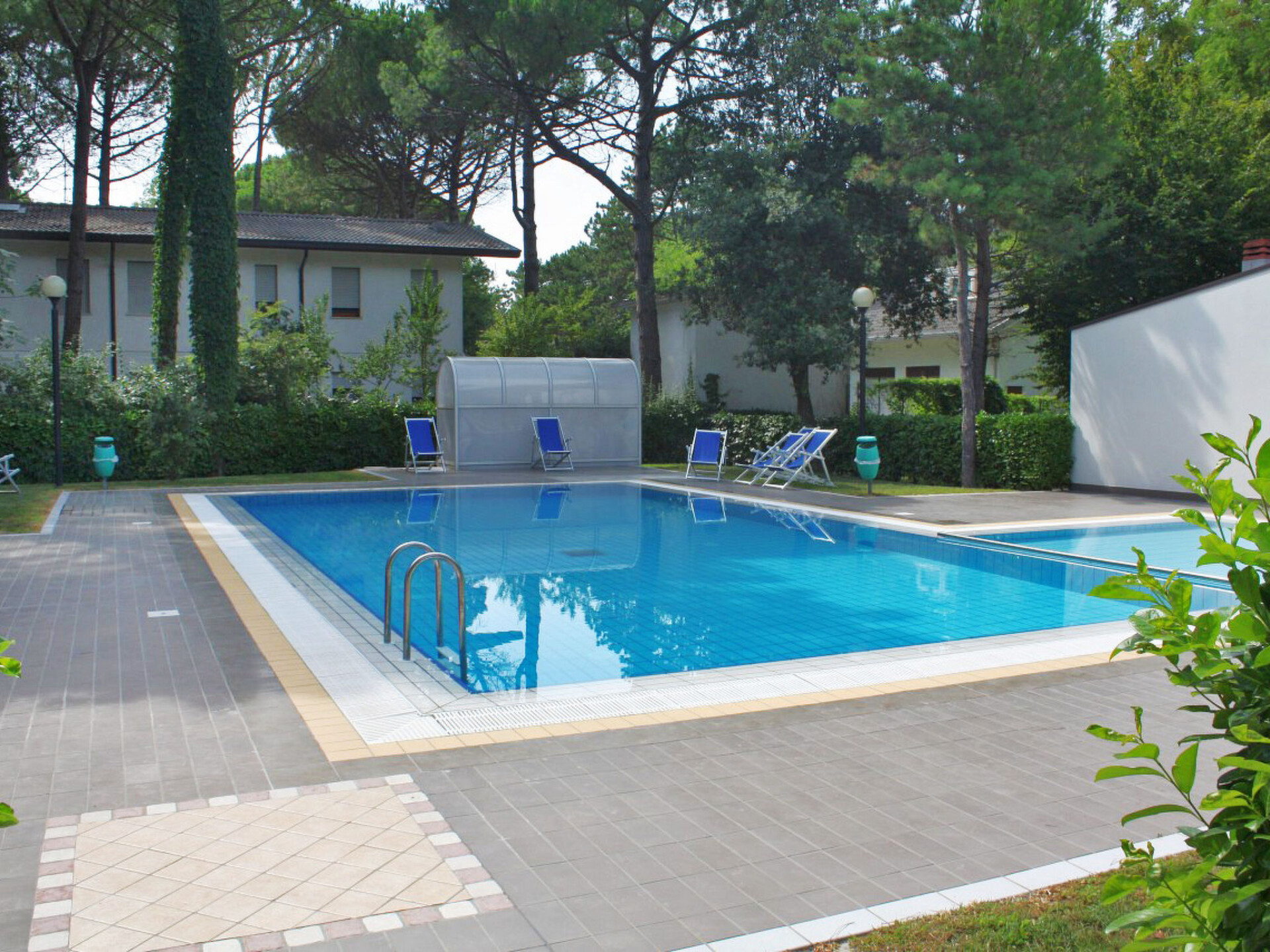 Klein vakantiecomplex "Villaggio Paradiso". 20 huizen in de woning. In de wijk Bibione-Lido del Sole, 300 m van het centrum van Bibione-Lido del Sole, aan de rand van de plaats, 13 km van het centrum van Lignano, 100 km van het centrum van Venezia, 300 m van zee. Voor medegebruik: wild terrein (omheind) met gazon en bomen, openluchtzwembad (10 x 6 m, seizoensgebonden beschikbaarheid: 15.Mei. - 15.Sep.). Douche/WC bij het zwembad, kinderzwembad, barbecue. In het complex: fietsverhuur. Winkel, levensmiddelenwinkel, restaurant 300 m, bushalte 210 m, treinstation "Latisana (Milano-Venezia-Triest)" 21 km, zandstrand 300 m. Golfterrein (18 holes) 9.7 km, kinderspeelplaats 50 m. Attracties in de buurt: Oasi Naturalistica Val Grande - Bibione. De eigenaar accepteert geen groepen. Strandservice: Tijdens het zomerseizoen zijn 1 ligstoel, 1 ligstoel en 1 parasol per appartement bij de huurprijs inbegrepen.