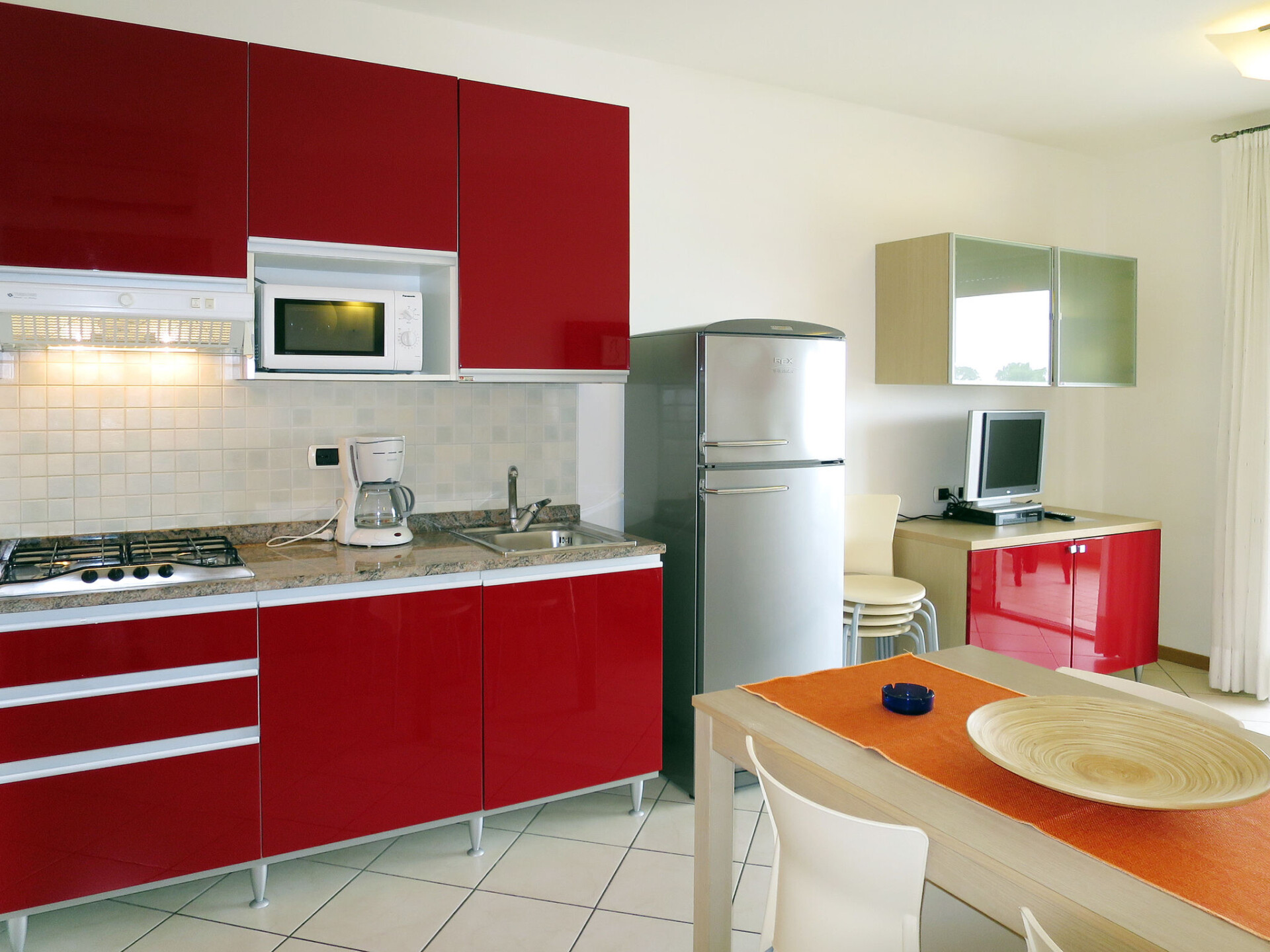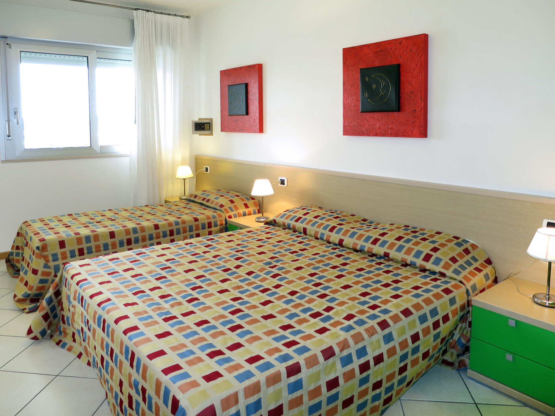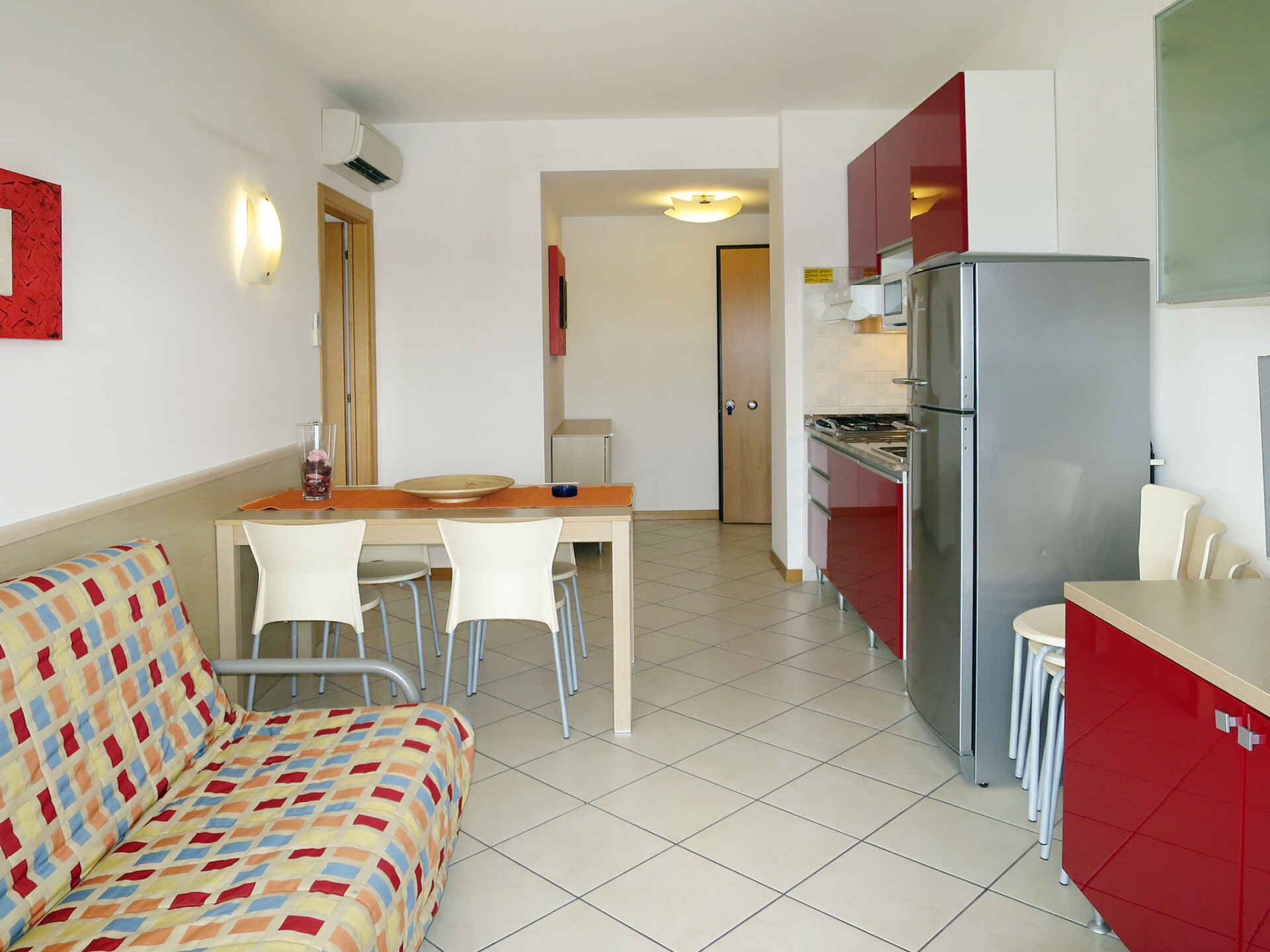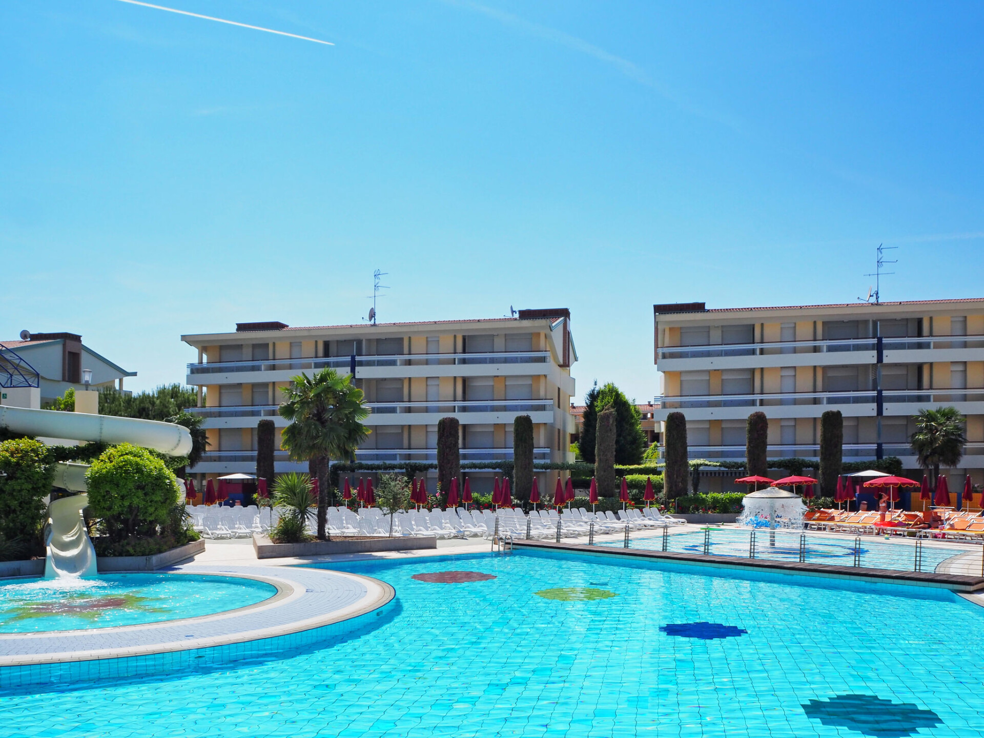 Groot, kindvriendelijk vakantiecomplex "Villaggio Planetarium", van 4 verdiepingen. 9 huizen in de woning. 218 appartementen in de woning. In de wijk Bibione-Spiaggia, 1 km van het centrum van Bibione, 13 km van het centrum van Lignano, 100 km van het centrum van Venezia, 1.4 km van zee. Voor medegebruik: terrein met planten en bomen, 4 zwembaden (seizoensgebonden beschikbaarheid: 15.Mei. - 27.Sep.). Kinderzwembad, glijbaan, hot tub, kinderspeelplaats. In het complex: restaurant, bistro, Internet (WiFi) (extra). Lift, wasmachine, droger (voor medegebruik, extra), fietsverhuur. Half pension op verzoek (extra). Supermarkt 100 m, bushalte 600 m, treinstation "Latisana (Milano-Venezia-Triest)" 21 km, zandstrand 1 km, thermaalbad "Bibione Thermae" 2 km. Golfterrein (18 holes) 11 km. Attracties in de buurt: Oasi Naturalistica Val Grande - Bibione. Animatie in het hoogseizoen. Geschikt voor families. De eigenaar accepteert geen groepen.