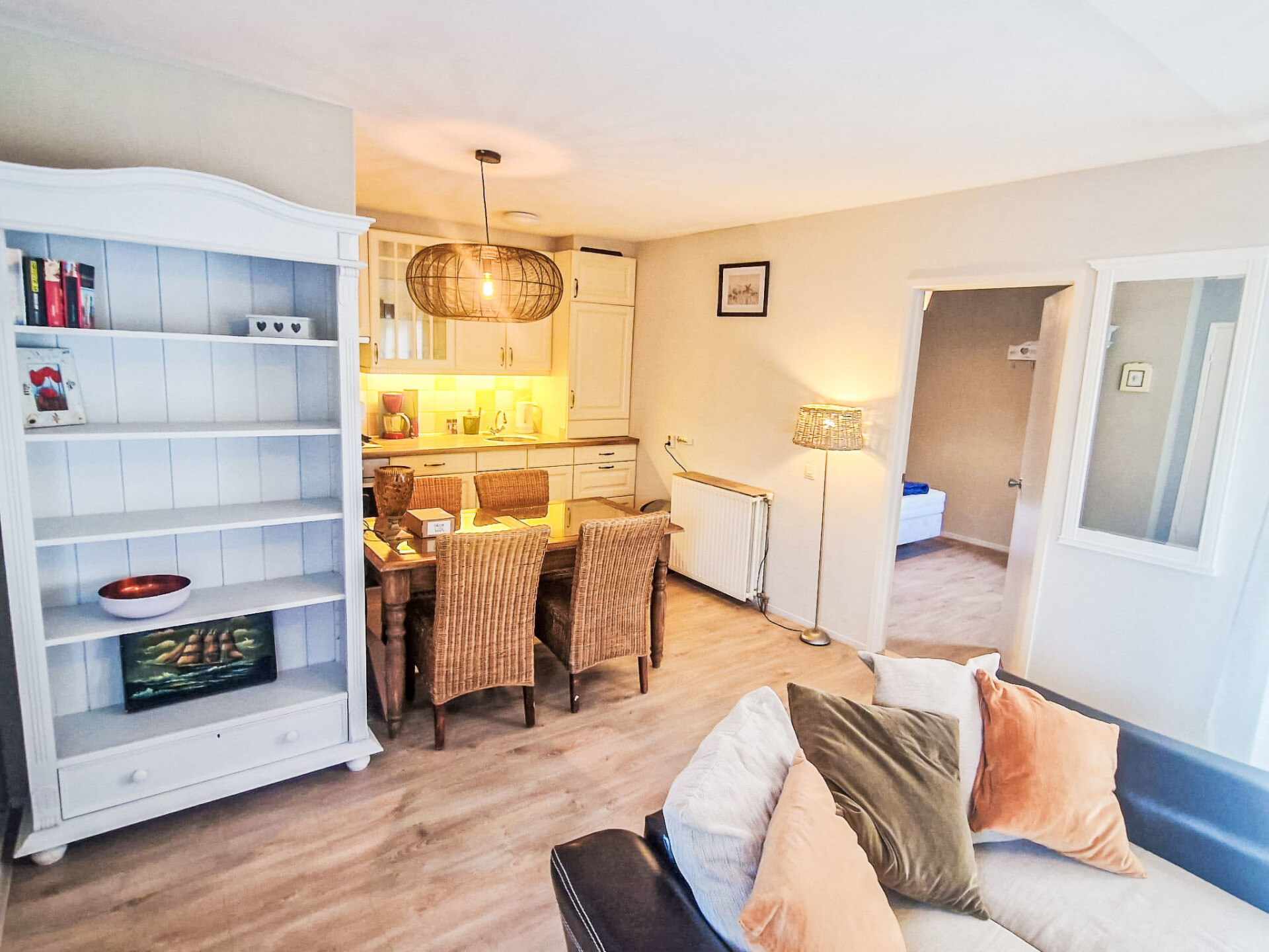 "Zeemeeuw", halfvrijstaand huis 4-kamers 65 m2. Comfortabel ingericht: woonkamer met open haard en Flatscreen TV. Uitgang naar de tuin. 1 kamer met 1 2-pers bed. 2 kamers, elke kamer heeft 1 bed. Open keuken (oven, Gasfornuis, waterkoker, elektrische koffiemachine) met eettafel. Bad/douche, aparte WC. Verwarming. Groot tuin. Terrasmeubelen. Ter beschikking: wasmachine, kinderstoel, kinderbed. Internet (WiFi, gratis). Niet rokers woning. Boekingen zijn alleen voor vakantiedoeleinden toegestaan.