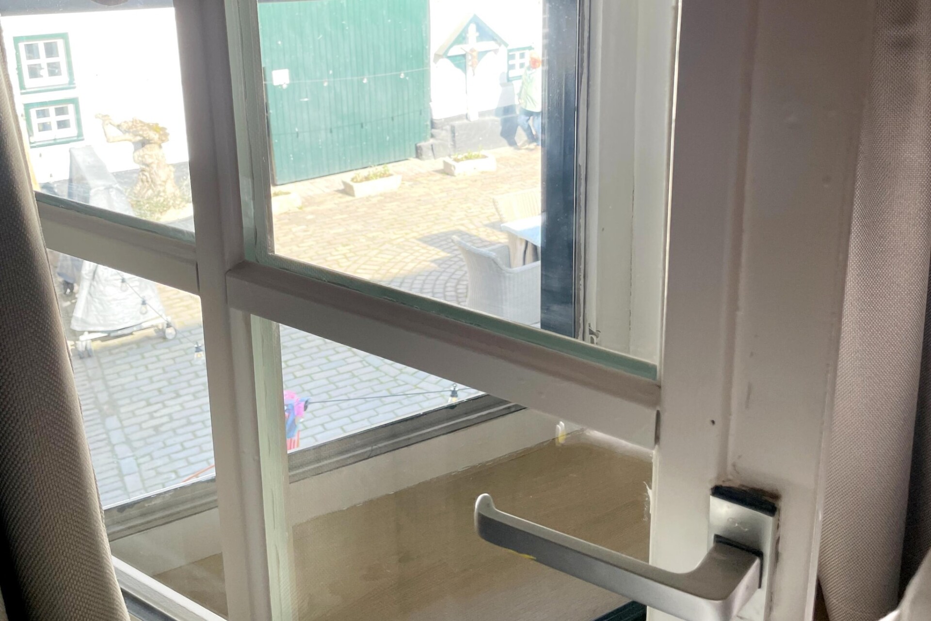 Op de begane grond vindt u een lichte, open keuken met een fornuis, koffiezetapparaat en magnetron, waardoor het bereiden van maaltijden moeiteloos gaat. De uitnodigende woon-/eetkamer biedt een gezellige zithoek en een eettafel, perfect om te ontspannen na een dag vol avonturen. Er is ook een handig toilet op deze verdieping. Vanuit de woonkamer stapt u via tuindeuren direct uw eigen terras op, dat leidt naar een prachtige tuin met tuinmeubilair - ideaal om te genieten van de frisse lucht en buitenmomenten.