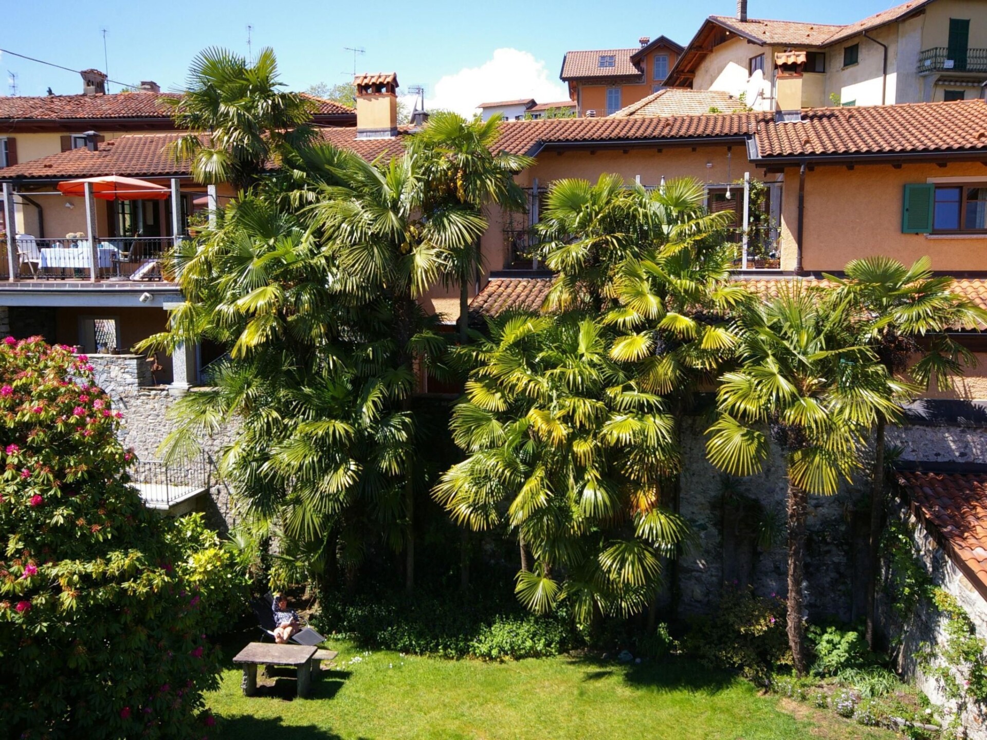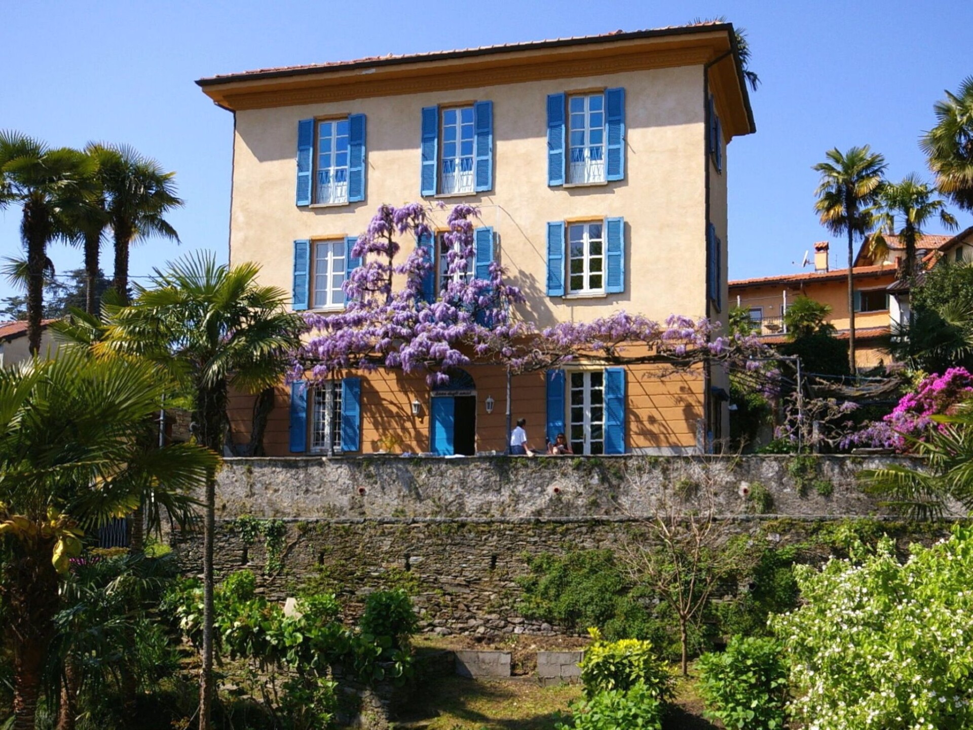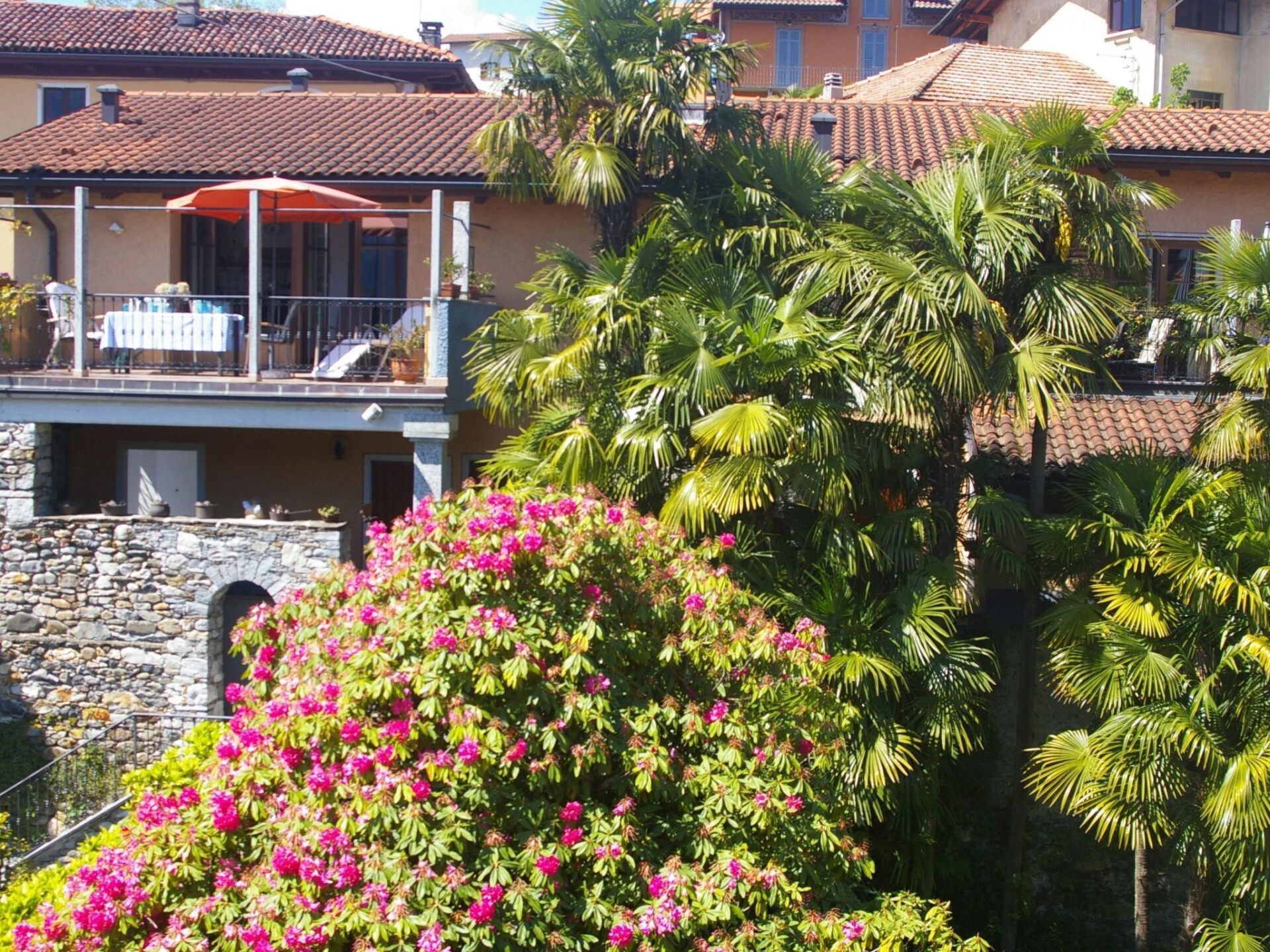 Modern holiday accommodation for families and couples on the western shore of Lake Maggiore, lovingly furnished in an old building with lake view, equipped with panoramic terrace, fireplace, barbecue, large garden, two bedrooms with double beds, one cot and one baby bedThe house in the Verbania area is located on the village square in Biganzolo, near Intra. It is around 200 years old and has recently been completely renovated and modernised to the highest standards of comfort and home technology. The neighbouring gardens of the property (approx. 2000 m²) offer guests quiet spots under palm trees, rhododendrons, camellias and old fig trees. There is a play area for children.The 100 m² "Toce" holiday flat is located on the upper floor of the house. The terrace with lake view overlooks the gardens of the "Casa Degli Amici" below, which are also accessible to guests of the Vecchia Scuderia. The flat is comfortable and cosy, it is centrally heated and can therefore also be used in winter. The spacious 37 m² living area is divided into a seating area around the open fireplace (with sofa bed for two people), the spacious kitchen and the dining area by the window. In the kitchen, guests will find a 4-burner gas hob with electric oven, a microwave with grill, dishwasher and fridge with freezer compartment. An espresso machine and toaster are also available. The digital satellite reception system provides Europe-wide TV programmes. There is also a DVD/CD player and a Bluetooth box. The two double bedrooms have plenty of wardrobe space, a writing desk and wide shelves for personal belongings. The two double beds in the two bedrooms are each 1.60 metres wide - each with two 200 x 80 cm mattresses. The additional children's bed measures 70cm x 140cm. The bathroom has a walk-in shower with glass wall, WC and bidet. Of course as prescribed: Fire extinguishers in the flat and carbon monoxide gas detectors in every room.On the large terrace with lake view there is space for outdoor dining and two deck chairs for siestas. Next to the house on the square "Piazza Morrone" (there is also the upper access to the property) there are several parking spaces for cars, a larger car park is just around the corner.The flat can only be rented by the week. Pets are not allowed. Next to it are private garages and utility rooms as well as a room (with its own toilet) measuring 26 m² for group meetings, exhibitions, seminars (yoga etc.) and social events. If desired, this group room (with multimedia system) can be rented on a daily basis.The Vecchia Scuderia is a former horse stable with shed and barn. It was renovated from 2001 according to the owner's plans and the strict requirements for the protection of historical monuments in the "centro storico" of the village and has since been extended and maintained to a high standard of comfort and building services. The house with two flats is part of the Casa Degli Amici estate - this "house of friends" has been in the family for over 60 years and can also be rented out to larger groups on request. Both houses are over 200 years old and are located in the village centre, between the church and the village square. Together they form a closed ensemble surrounded by four romantic gardens. In the nearby shopping town of Intra you will find supermarkets and typical small Italian shops as well as cafés and restaurants. The nearest bathing area is about 300 metres away on a footpath down to the lake. Behind the village, an enchanting mountainous and unspoilt hiking area with gorges and waterfalls opens up - the Val Grande National Park. IT103072C2V7XF4A88