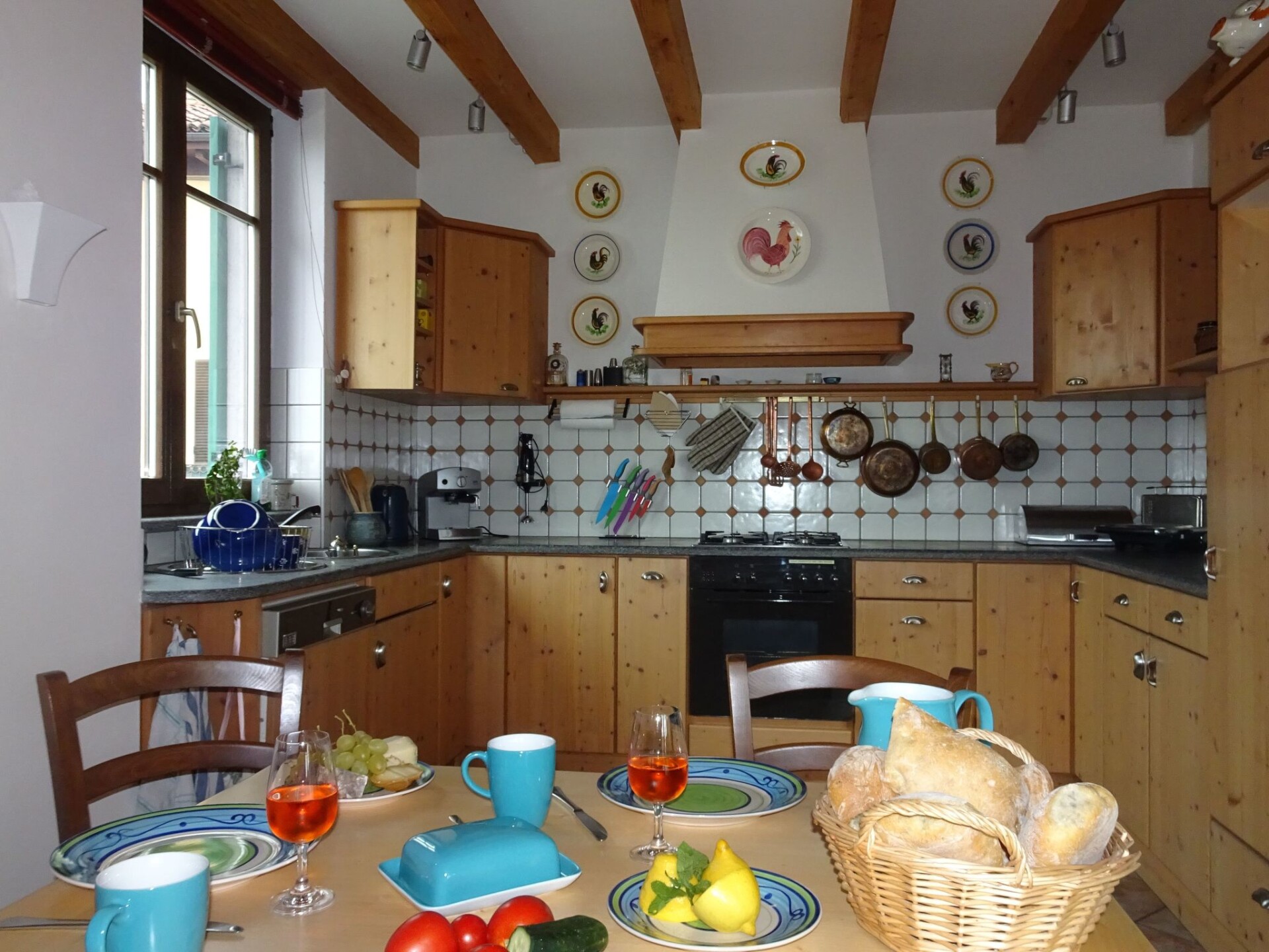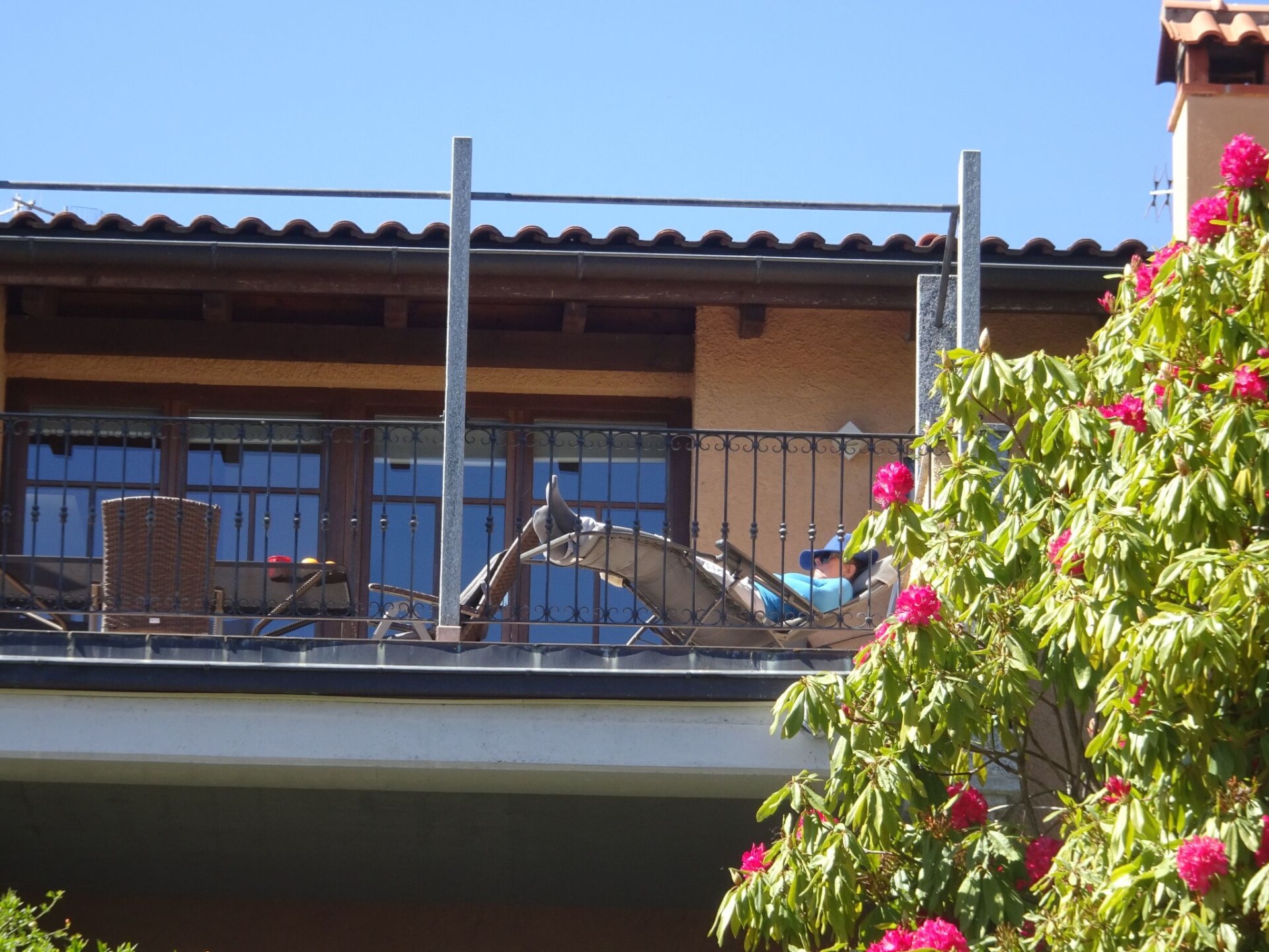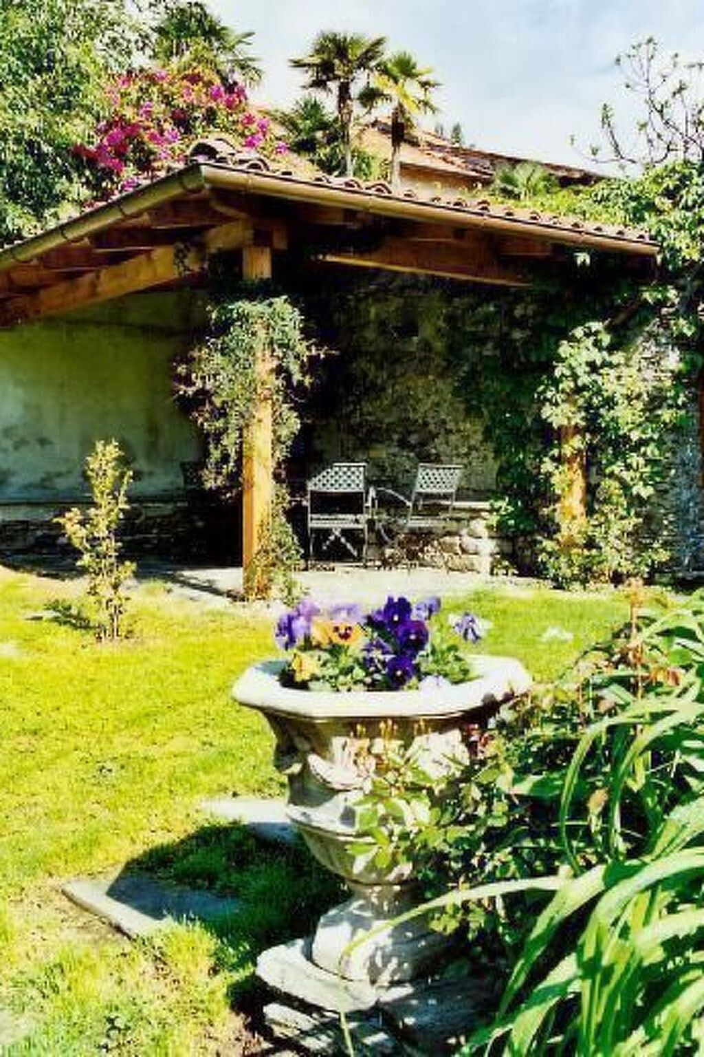 Modern holiday accommodation for families and couples on the western shore of Lake Maggiore, lovingly furnished in an old building with lake view, equipped with panoramic terrace, fireplace, barbecue, large garden, two bedrooms with double beds, one cot and one baby bedThe house in the Verbania area is located on the village square in Biganzolo, near Intra. It is around 200 years old and has recently been completely renovated and modernised to the highest standards of comfort and home technology. The neighbouring gardens of the property (approx. 2000 m²) offer guests quiet spots under palm trees, rhododendrons, camellias and old fig trees. There is a play area for children.The 100 m² "Toce" holiday flat is located on the upper floor of the house. The terrace with lake view overlooks the gardens of the "Casa Degli Amici" below, which are also accessible to guests of the Vecchia Scuderia. The flat is comfortable and cosy, it is centrally heated and can therefore also be used in winter. The spacious 37 m² living area is divided into a seating area around the open fireplace (with sofa bed for two people), the spacious kitchen and the dining area by the window. In the kitchen, guests will find a 4-burner gas hob with electric oven, a microwave with grill, dishwasher and fridge with freezer compartment. An espresso machine and toaster are also available. The digital satellite reception system provides Europe-wide TV programmes. There is also a DVD/CD player and a Bluetooth box. The two double bedrooms have plenty of wardrobe space, a writing desk and wide shelves for personal belongings. The two double beds in the two bedrooms are each 1.60 metres wide - each with two 200 x 80 cm mattresses. The additional children's bed measures 70cm x 140cm. The bathroom has a walk-in shower with glass wall, WC and bidet. Of course as prescribed: Fire extinguishers in the flat and carbon monoxide gas detectors in every room.On the large terrace with lake view there is space for outdoor dining and two deck chairs for siestas. Next to the house on the square "Piazza Morrone" (there is also the upper access to the property) there are several parking spaces for cars, a larger car park is just around the corner.The flat can only be rented by the week. Pets are not allowed. Next to it are private garages and utility rooms as well as a room (with its own toilet) measuring 26 m² for group meetings, exhibitions, seminars (yoga etc.) and social events. If desired, this group room (with multimedia system) can be rented on a daily basis.The Vecchia Scuderia is a former horse stable with shed and barn. It was renovated from 2001 according to the owner's plans and the strict requirements for the protection of historical monuments in the "centro storico" of the village and has since been extended and maintained to a high standard of comfort and building services. The house with two flats is part of the Casa Degli Amici estate - this "house of friends" has been in the family for over 60 years and can also be rented out to larger groups on request. Both houses are over 200 years old and are located in the village centre, between the church and the village square. Together they form a closed ensemble surrounded by four romantic gardens. In the nearby shopping town of Intra you will find supermarkets and typical small Italian shops as well as cafés and restaurants. The nearest bathing area is about 300 metres away on a footpath down to the lake. Behind the village, an enchanting mountainous and unspoilt hiking area with gorges and waterfalls opens up - the Val Grande National Park. IT103072C2V7XF4A88