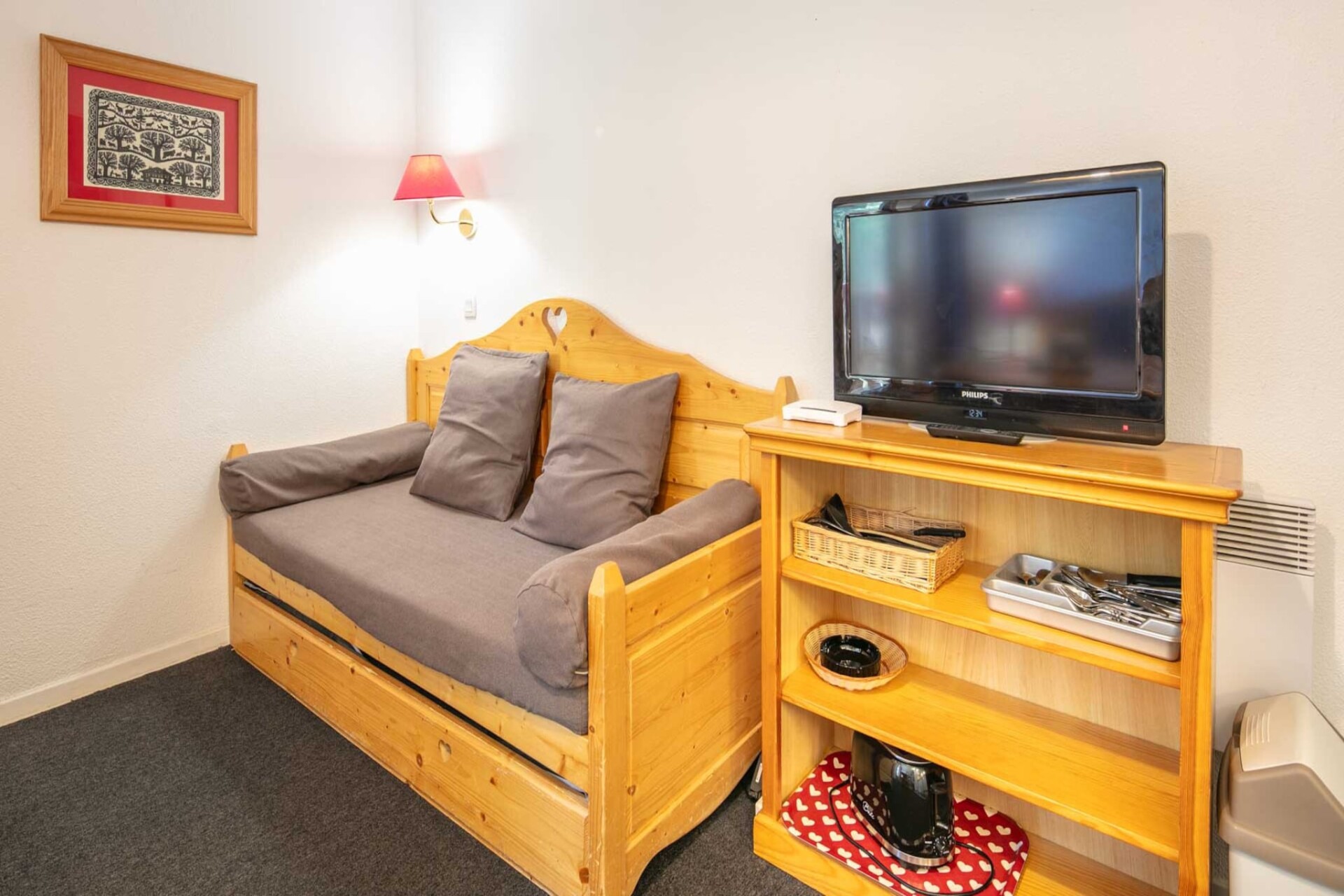 Deze gezellige tweekamerwoning is perfect ontworpen om een groep van vijf personen te verwelkomen in een compacte, maar volledig uitgeruste ruimte van 23 vierkante meter. De indeling is gericht op comfort en flexibiliteit, met twee aparte slaapgedeeltes. De eenpersoonsslaapkamer, grenzend aan de woonkamer, biedt flexibele indelingen, ideaal voor gezinnen. Gasten kunnen gebruikmaken van de comfortabele slaapbank, een eenpersoonsbed en een leuk stapelbed, zodat elk lid van uw gezelschap comfortabel kan uitrusten.