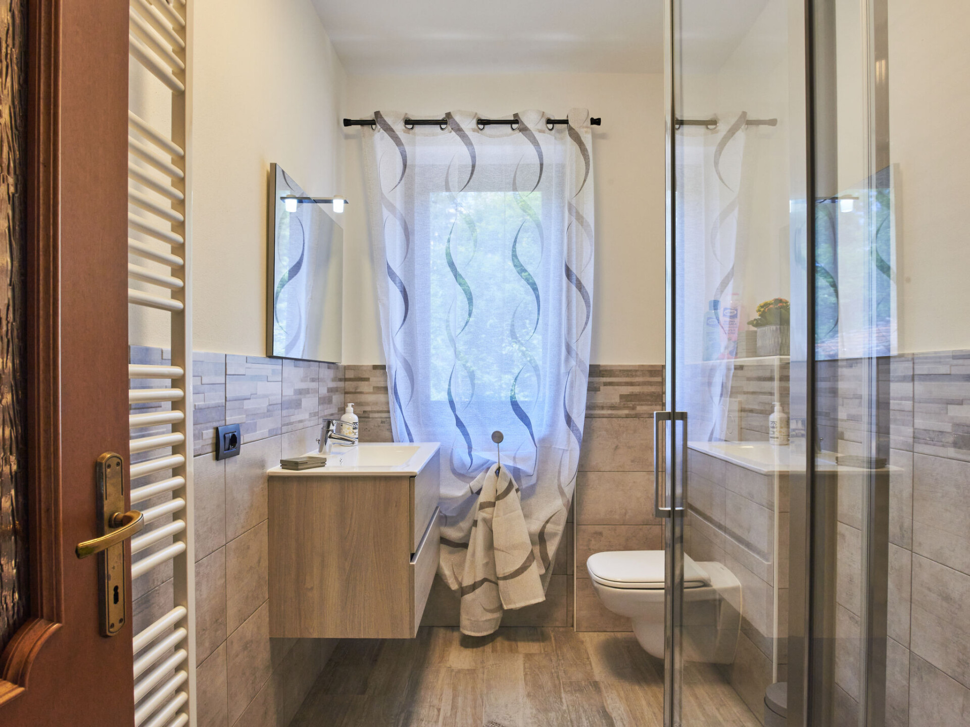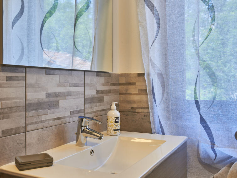 "Veri", appartement 3-kamers 60 m2, op verhoogde begane grond. Comfortabel ingericht: woon-/eetkamer met eettafel en Sat-TV. Uitgang naar de tuin, naar het balkon. 1 kamer met 1 x 2 stapelbedden. 1 2-pers. kamer. Kookhoek (oven, afwasmachine, 4 inductiekookplaten, broodrooster, elektrische koffiemachine). Douche/WC. Houtverwarming. Klein balkon, zithoek in de tuin. Terrasmeubelen, barbecue, ligstoelen (2). Ter beschikking: kinderstoel, kinderbed tot 2 jaar. Internet (Internet (WiFi), gratis). Parkeerplaats (2 Auto's). Niet rokers woning. Maximaal 1 huisdier/hond toegestaan. Privé ingang. IT097023B4OZJFAO4Y