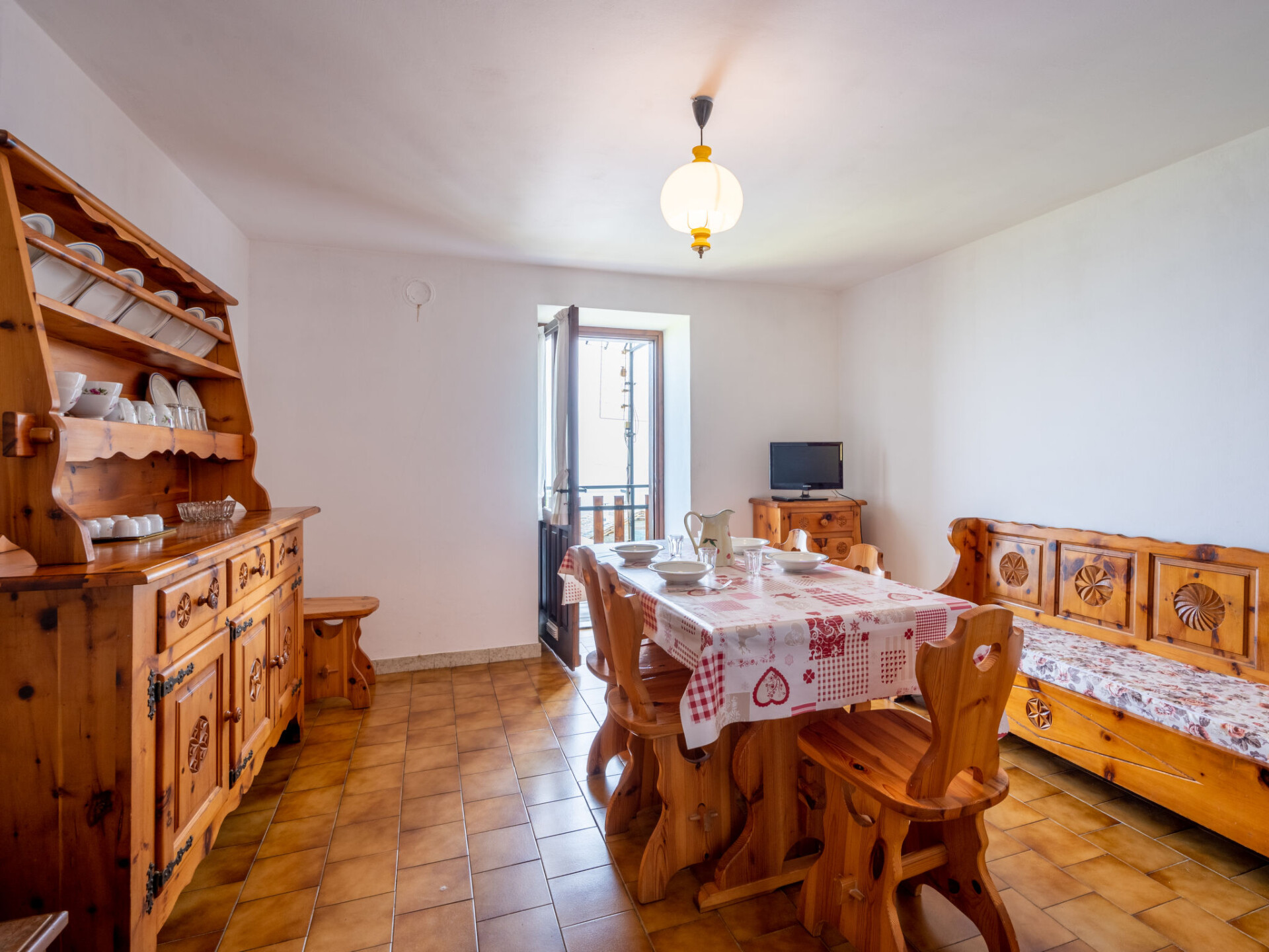 Appartement 5-kamers 100 m2 op 2 verdiepingen op de 1e verdieping, op het zuiden gelegen. Licht, gedeeltelijk afgeschuinde daken, eenvoudig en rustiek ingericht: woon-/eetkamer met TV (Flatscreen TV), verwarming. Uitgang naar het balkon. 1 kamer met 1 2-pers bed. 1 kamer met 1 2-pers bed. Open woon-/eetkamer met eettafel. Uitgang naar het balkon. Kleine, open keuken (4-pits kookplaat, oven, diepvriezer). Bad/bidet/WC. Verwarming, boiler (30 liter). Bovenverdieping: 1 kamer met afgeschuinde daken met 1 2-pers bed. Ligstoelen (4). Uitzicht op de bergen, het dal en de tuin. Maximaal 1 huisdier/hond toegestaan. Privé ingang. IT007063C2X8I6NOG4