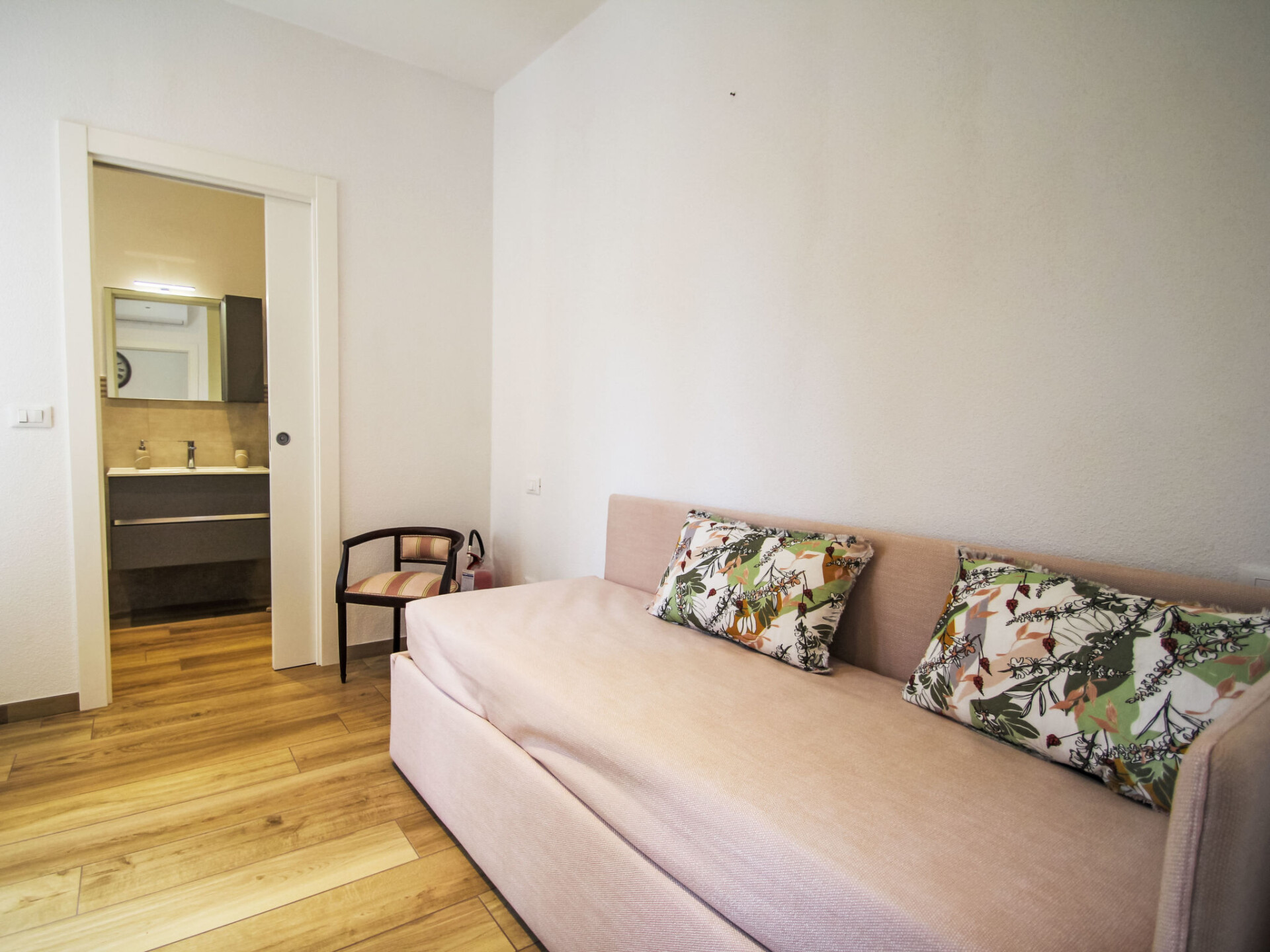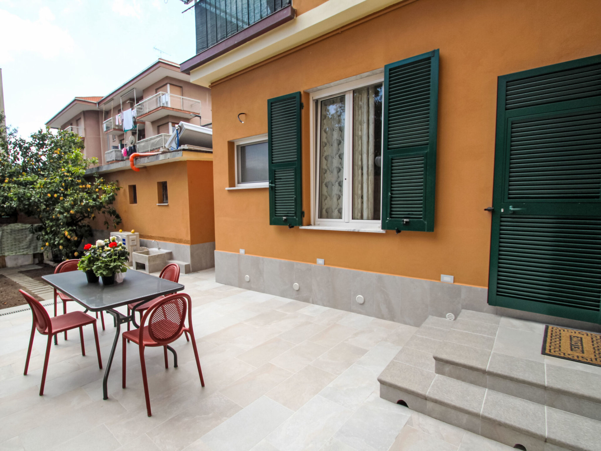 Appartement 2-kamers 42 m2, op de begane grond. Volledig gerenoveerd in 2025, doelmatig en modern ingericht: 1 2-pers. kamer met Sat-TV. Doorgangskamer met 1 bed, 1 uitschuifbaar bed en Sat-TV. Keuken in de hal (oven, afwasmachine, 4 inductiekookplaten, elektrische koffiemachine) met eettafel. Uitgang naar de zitplaats in de tuin. Douche/bidet/WC. Air-conditioning, heteluchtverwarming. Zithoek in de tuin, kleine tuin. Terrasmeubelen. Ter beschikking: wasmachine, strijkijzer, haardroger. Appartement aan de binnenplaats. Privé ingang, brandblusser. IT010059C27KIDYBXC