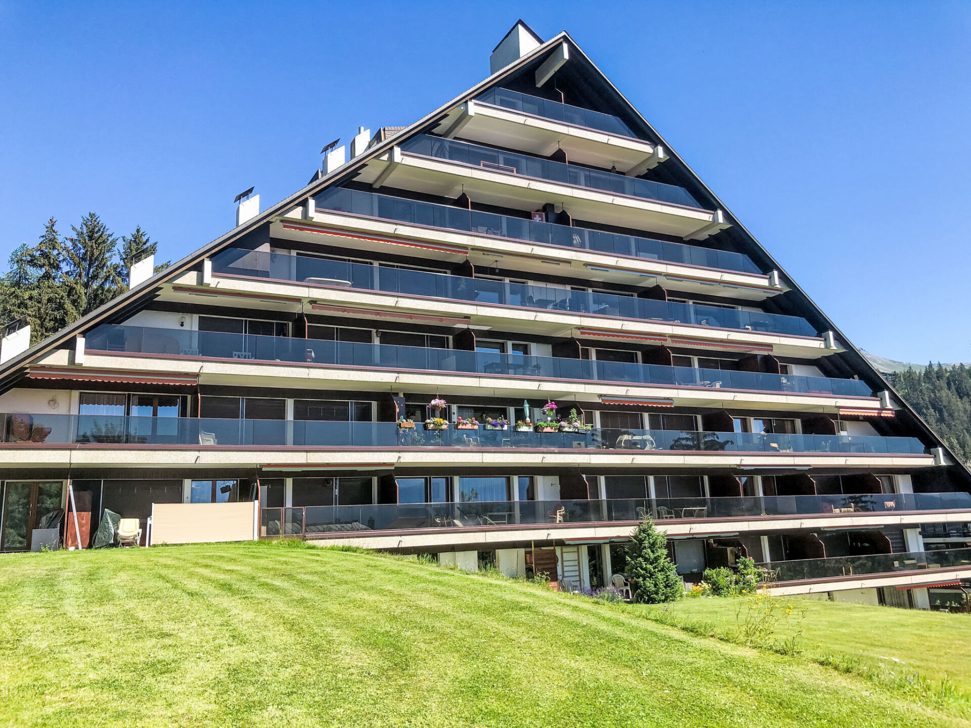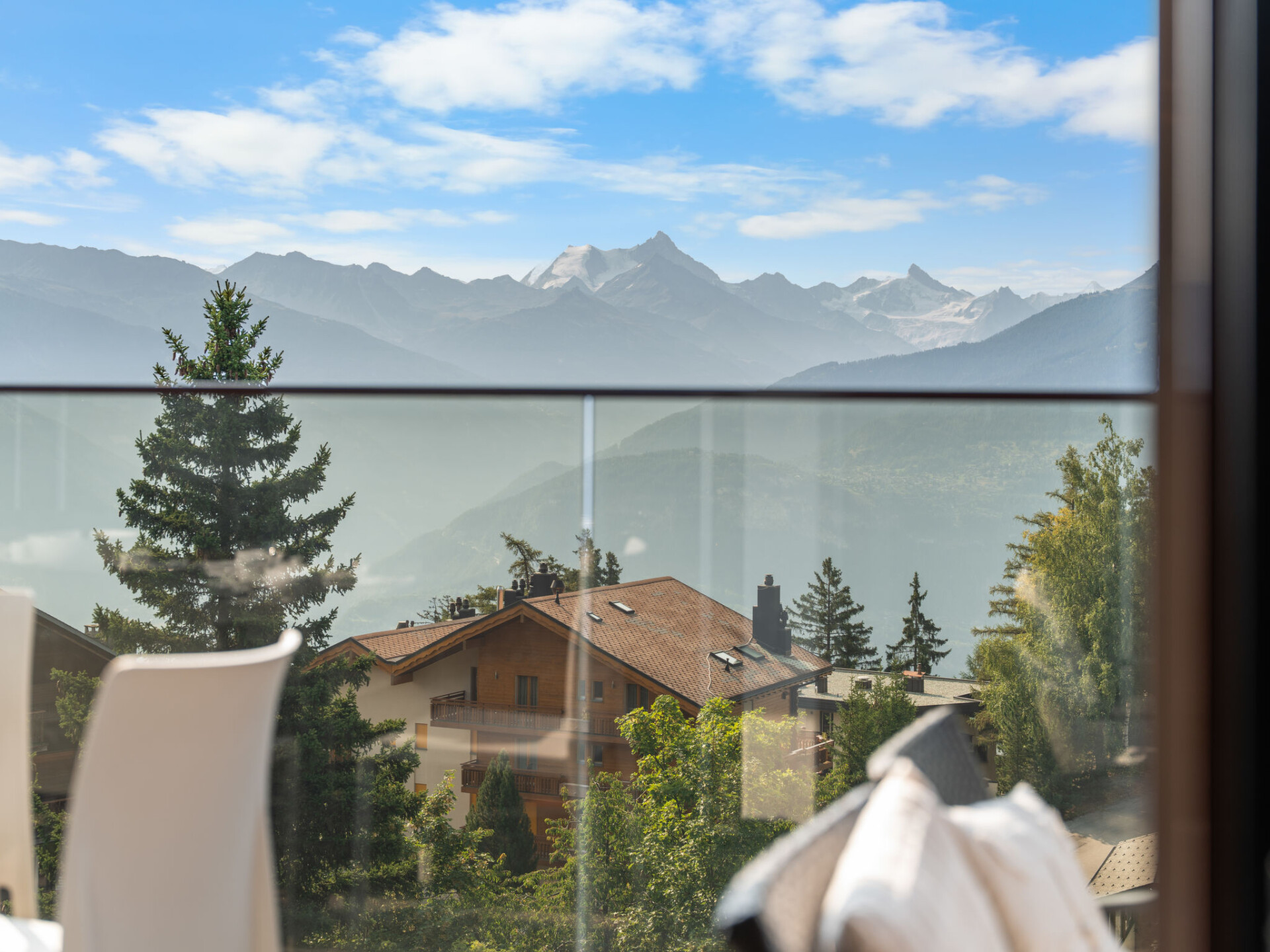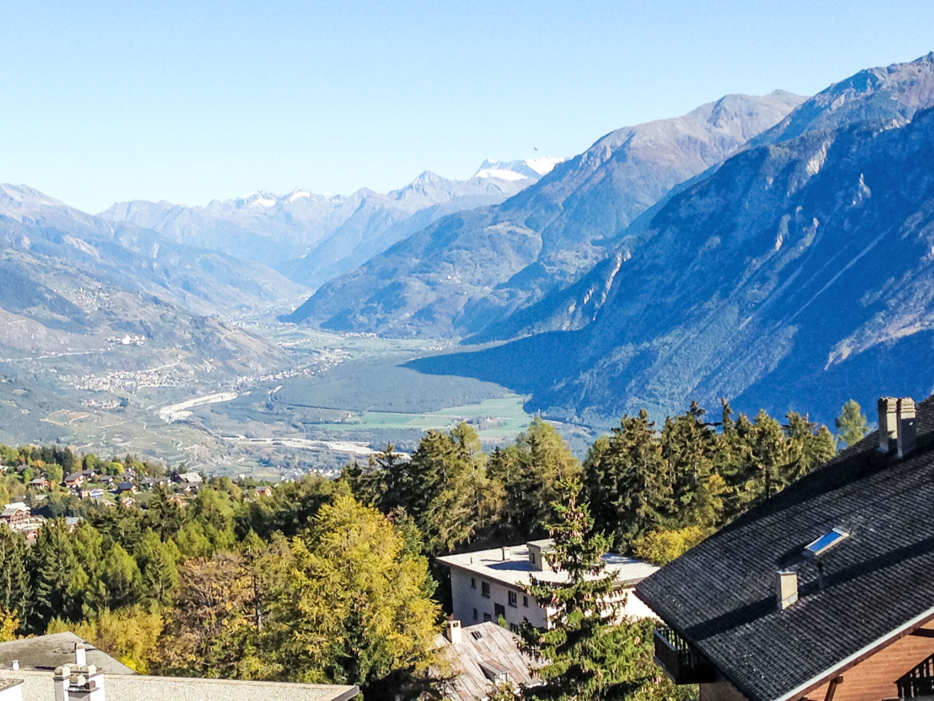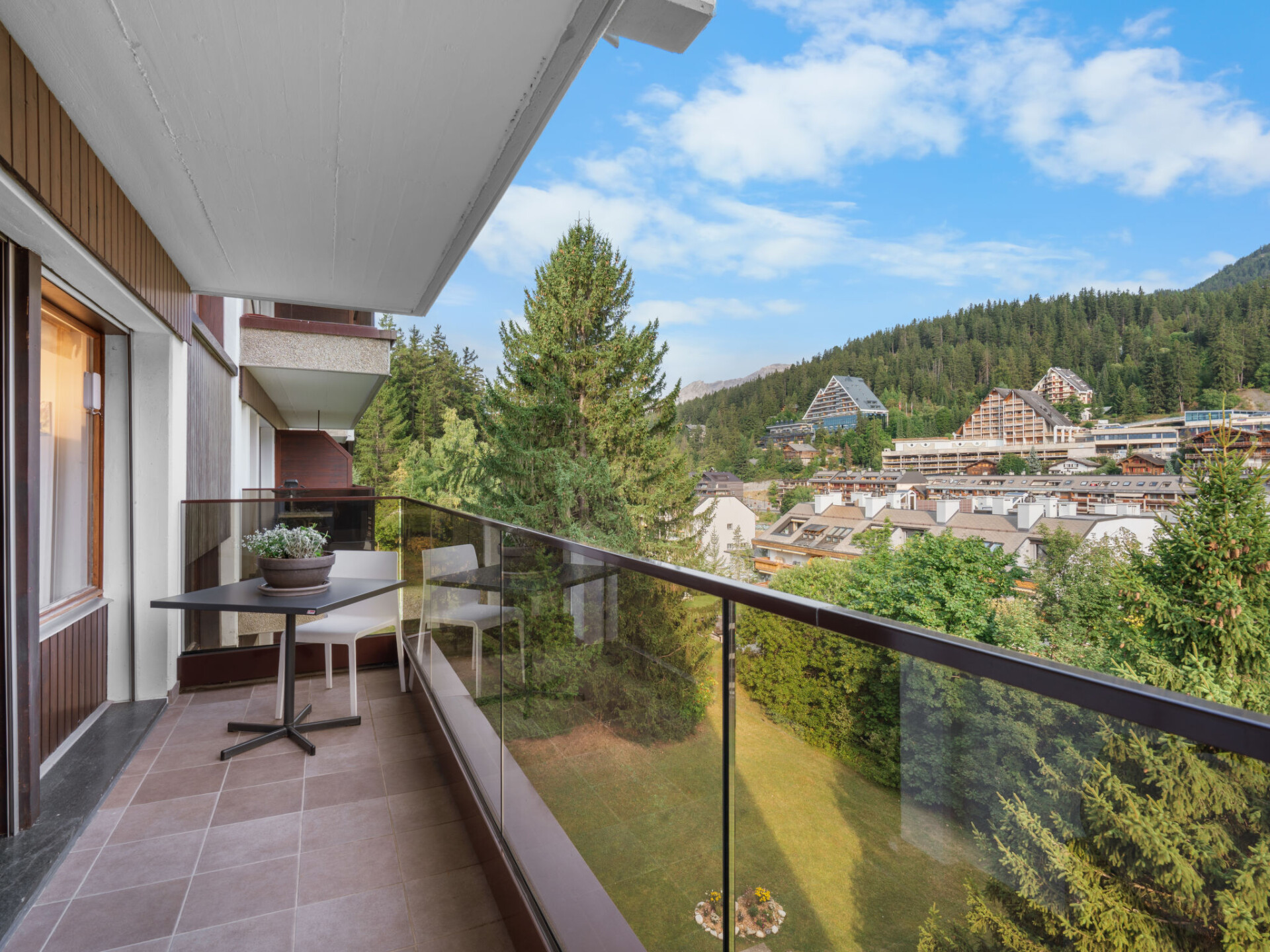 "Victoria A 20", appartement 4-kamers 100 m2 op de 4e verdieping. Ruim, volledig gerenoveerd in 2015, zeer modern en luxueus ingericht: woon-/eetkamer met zwedenkachel, DVD, homecinema en elektrische rolluiken. Uitgang naar het terras. 1 groot kamer met 1 2-pers bed (180 cm, lengte 200 cm), bad/WC, dubbele wastafels en Kabel-TV. Uitgang naar het terras. 1 kamer met schuifdeur met 1 2-pers bed (160 cm, lengte 200 cm). 1 kamer met schuifdeur met 1 2-pers opklapbed (140 cm, lengte 200 cm). Uitgang naar het balkon. Open keuken (oven, afwasmachine, 4 inductiekookplaten, broodrooster, waterkoker, elektrische koffiemachine, pads voor de koffiemachine (Nespresso) extra, raclette oven, combimagnetron, fondue Set (kaas)). Douche/WC. Balkon, op het noorden gelegen terras 18 m2, op het zuiden gelegen. Terrasmeubelen, balkonmeubilair, barbecue (verrijdbaar), zitgelegenheid. Mooi panoramazicht op de bergen, het dal, het landschap en de plaats. Ter beschikking: strijkijzer, kinderbed tot 2 jaar, haardroger. Internet (WiFi, gratis). Blu-Ray speler. Geschikt voor families. Niet rokers woning.
