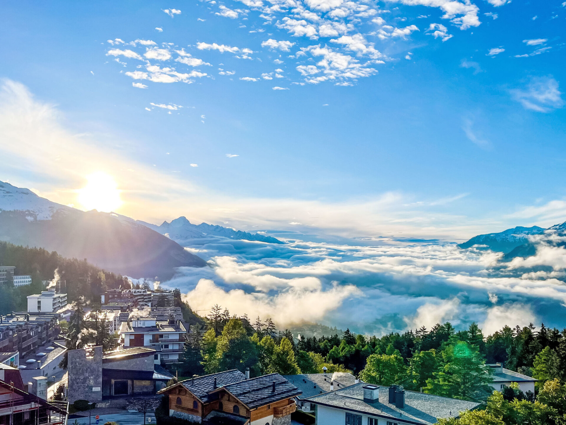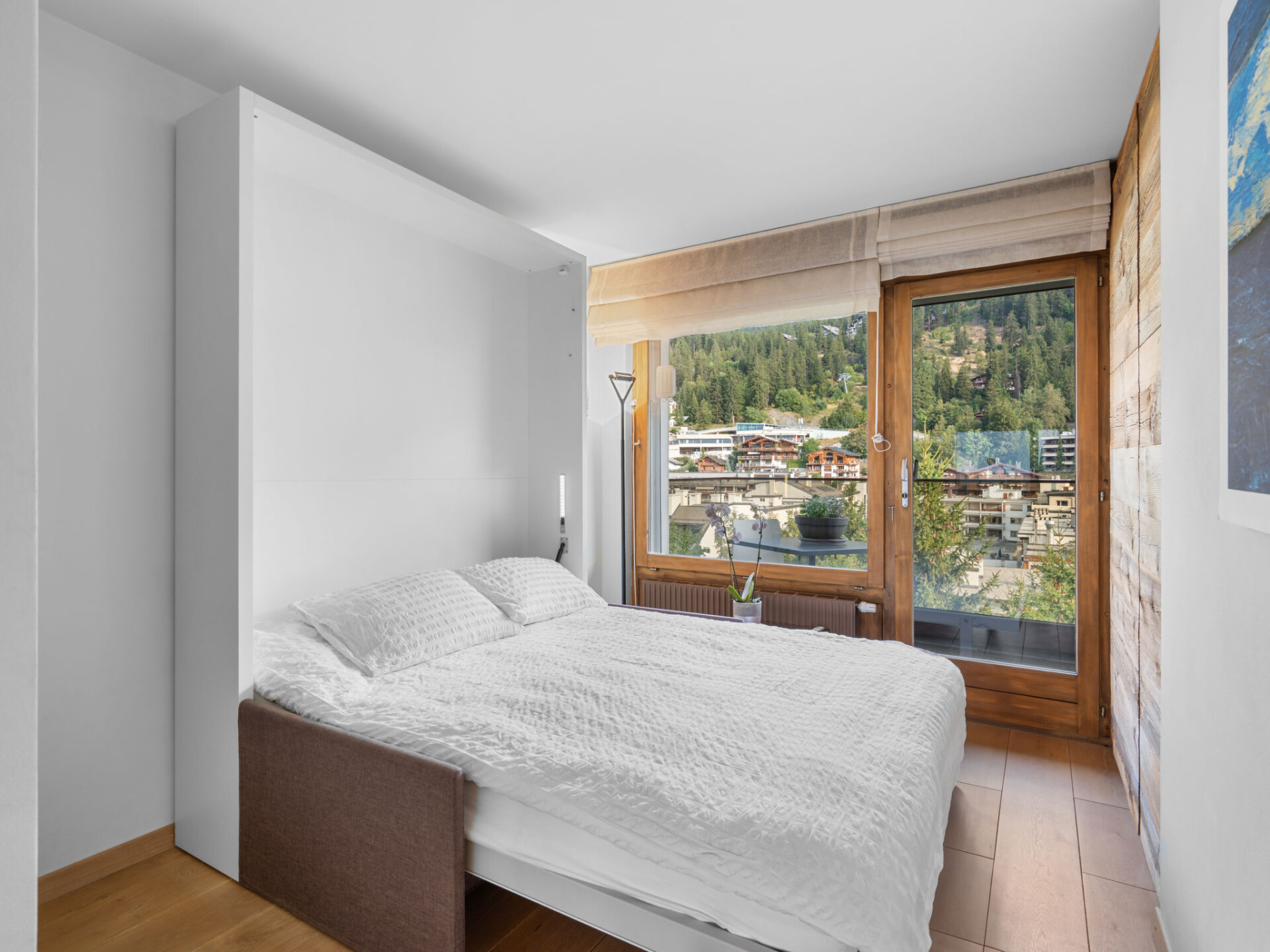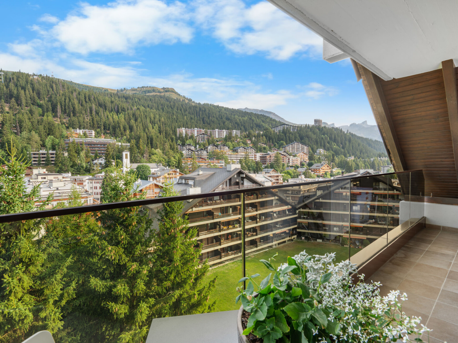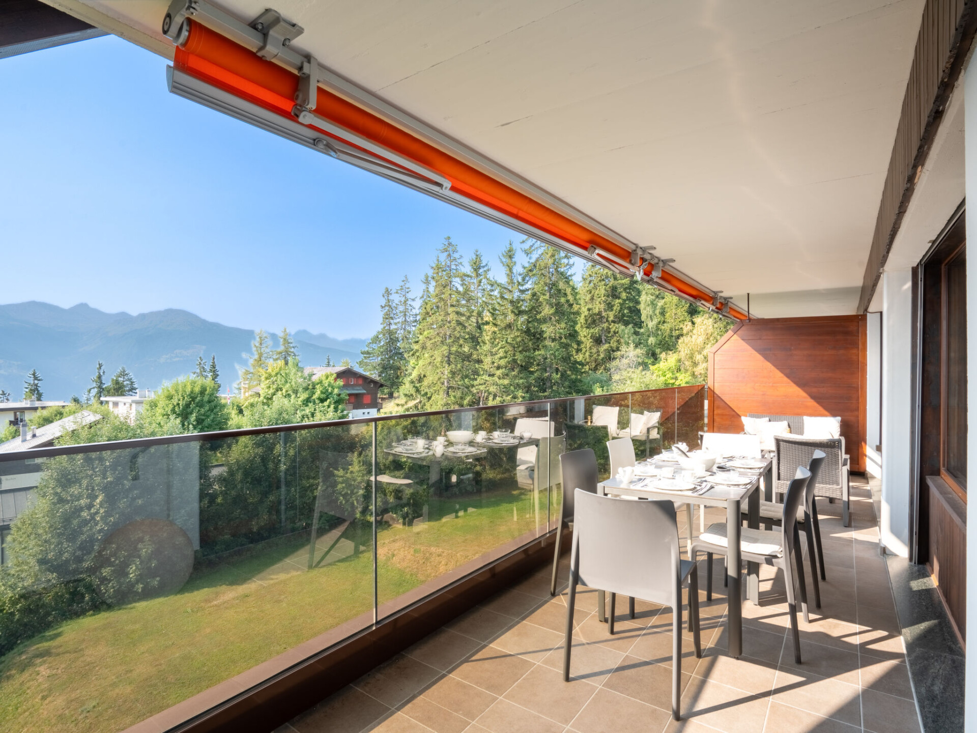"Victoria A 20", appartement 4-kamers 100 m2 op de 4e verdieping. Ruim, volledig gerenoveerd in 2015, zeer modern en luxueus ingericht: woon-/eetkamer met zwedenkachel, DVD, homecinema en elektrische rolluiken. Uitgang naar het terras. 1 groot kamer met 1 2-pers bed (180 cm, lengte 200 cm), bad/WC, dubbele wastafels en Kabel-TV. Uitgang naar het terras. 1 kamer met schuifdeur met 1 2-pers bed (160 cm, lengte 200 cm). 1 kamer met schuifdeur met 1 2-pers opklapbed (140 cm, lengte 200 cm). Uitgang naar het balkon. Open keuken (oven, afwasmachine, 4 inductiekookplaten, broodrooster, waterkoker, elektrische koffiemachine, pads voor de koffiemachine (Nespresso) extra, raclette oven, combimagnetron, fondue Set (kaas)). Douche/WC. Balkon, op het noorden gelegen terras 18 m2, op het zuiden gelegen. Terrasmeubelen, balkonmeubilair, barbecue (verrijdbaar), zitgelegenheid. Mooi panoramazicht op de bergen, het dal, het landschap en de plaats. Ter beschikking: strijkijzer, kinderbed tot 2 jaar, haardroger. Internet (WiFi, gratis). Blu-Ray speler. Geschikt voor families. Niet rokers woning.
