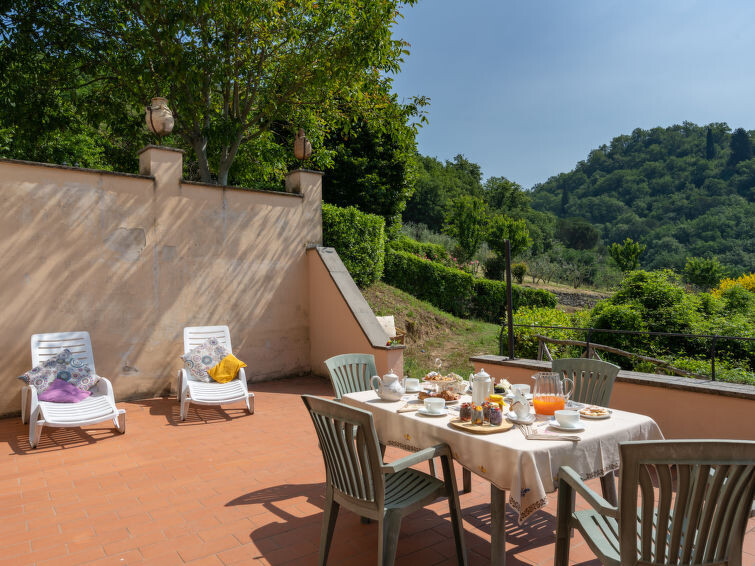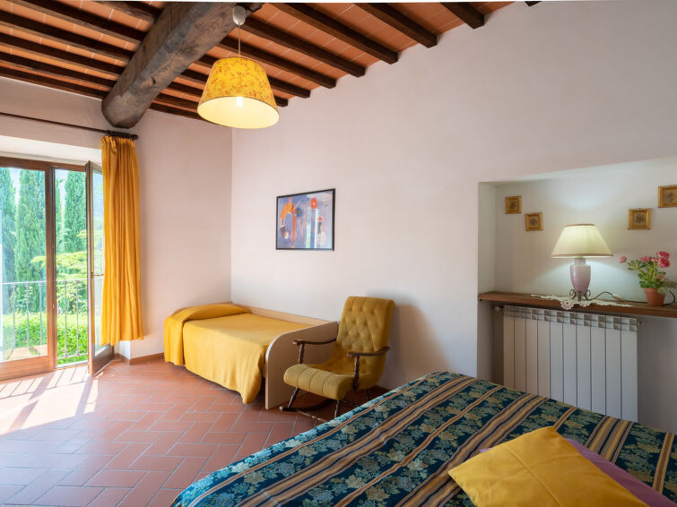 Rustieke op het wijngoed landbouwbedrijfje "Vigna La Corte", van 2 verdiepingen, vrijstaand uit de 16e eeuw, omgeven door bomen, weiden en velden. 3 huizen in de woning. 13 appartementen in de woning. 2 km van het centrum van Dicomano, 7.2 km van het centrum van Vicchio, 45 km van het centrum van Firenze, geïsoleerde, verhoogde ligging tegen een helling. Voor medegebruik: terrein 60 ha met planten en bomen, weide, openluchtzwembad (16 x 8 m, 140 cm diepte, seizoensgebonden beschikbaarheid: 01.Mei. - 01.Okt.). Buitendouche, tafeltennis, prieel, terras, tuinmeubelen, barbecue. In het complex: receptie, Internet (WiFi), tafelvoetbal, wasmachine (voor medegebruik), verwarming alleen beschikbaar van 15.Nov. - 15.Apr.. Toegangsweg (500 m onverharde weg). Overdekte parkeerplaats op het terrein. Supermarkt 2 km, restaurant 2 km, bushalte 900 m, treinstation "Dicomano" 2 km. Attracties in de buurt: Autodromo Internazionale del Mugello 25 km, Outlet Barberino del Mugello 35 km. Op het grondstuk dierhouderij. Lokale verkoop van streekproducten. Spoorweg 1 km van het huis.
