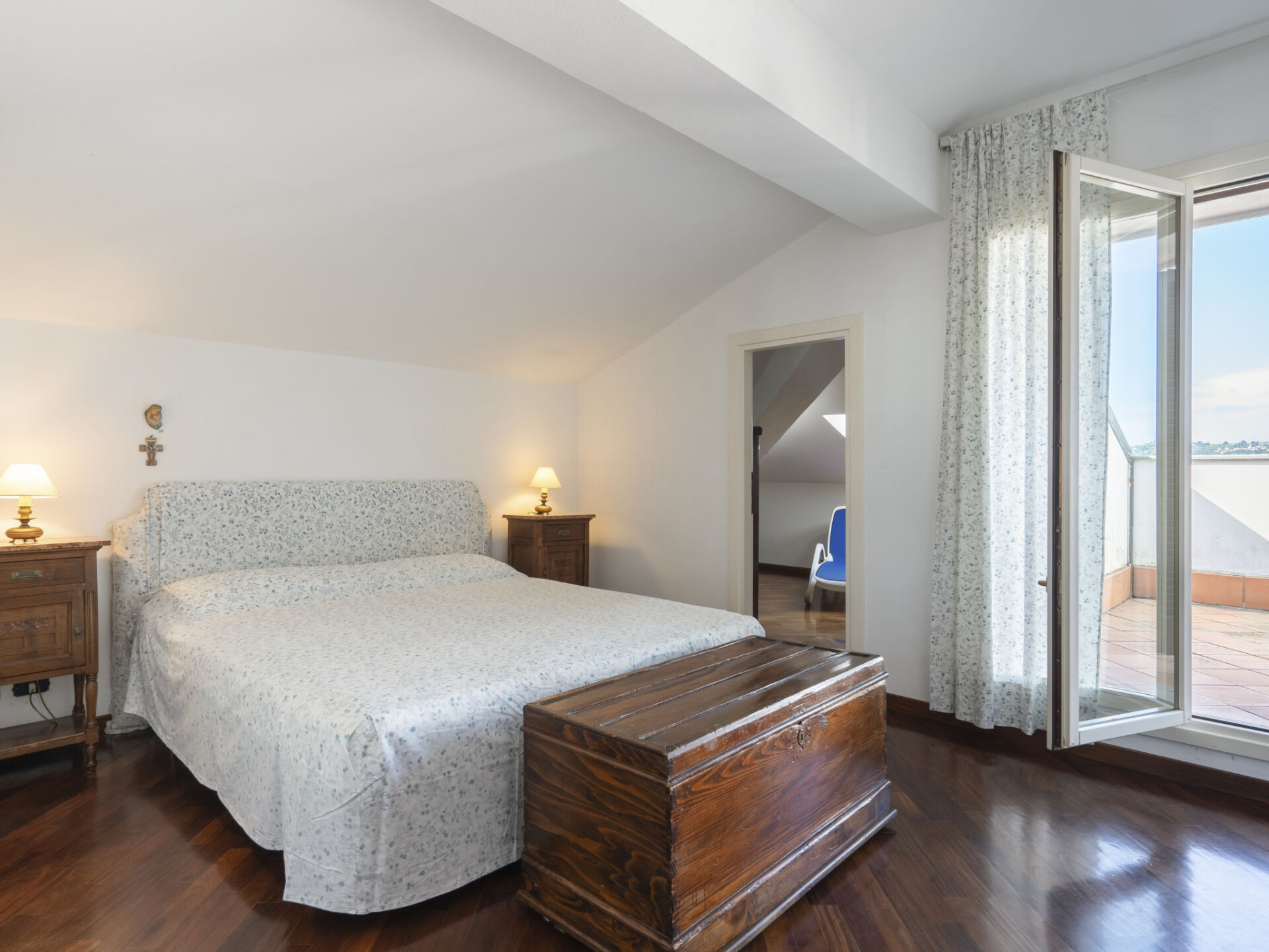 "Alberto A", appartement 5-kamers 150 m2 op 2 verdiepingen, op de bovenverdieping. Ruim, gedeeltelijk afgeschuinde daken, comfortabel en stijlvol ingericht: Bovenverdieping: groot salon met open haard en Sat-TV. Uitgang naar het terras. 1 kamer met 2 bedden (80 cm). Keuken (oven, afwasmachine, 5 kookpitten (vlammen), broodrooster, waterkoker, magnetron, diepvriezer, elektrische koffiemachine) met eettafel. Bad/bidet/WC. 2e Verdieping: 1 kamer met Kleedkamer met 1 2-pers bed en douche/WC. Uitgang naar het terras. 1 kamer met 1 2-pers bed. 1 kamer met 2 bedden. Bad/douche/bidet/WC. Elektrische verwarming. Verwarming alleen beschikbaar van 01.11. tot 08.04. Parketvloeren. Terras 40 m2 gedeeltelijk overdekt, zithoek in de tuin, tuin. Terrasmeubelen, ligstoelen (6). Zeer mooi uitzicht op het landschap, de oceaan en het dorp. Ter beschikking: wasmachine, strijkijzer, klamboe. Internet (WiFi, gratis). Parkeerplaats (3 Auto's). Oplaadstation. Rookvrij huis. Maximaal 1 huisdier/hond toegestaan. Privé ingang. Reizigers met busjes of bestelauto eerst ons kantoor aanschrijven. IT008026C267R5AAQC