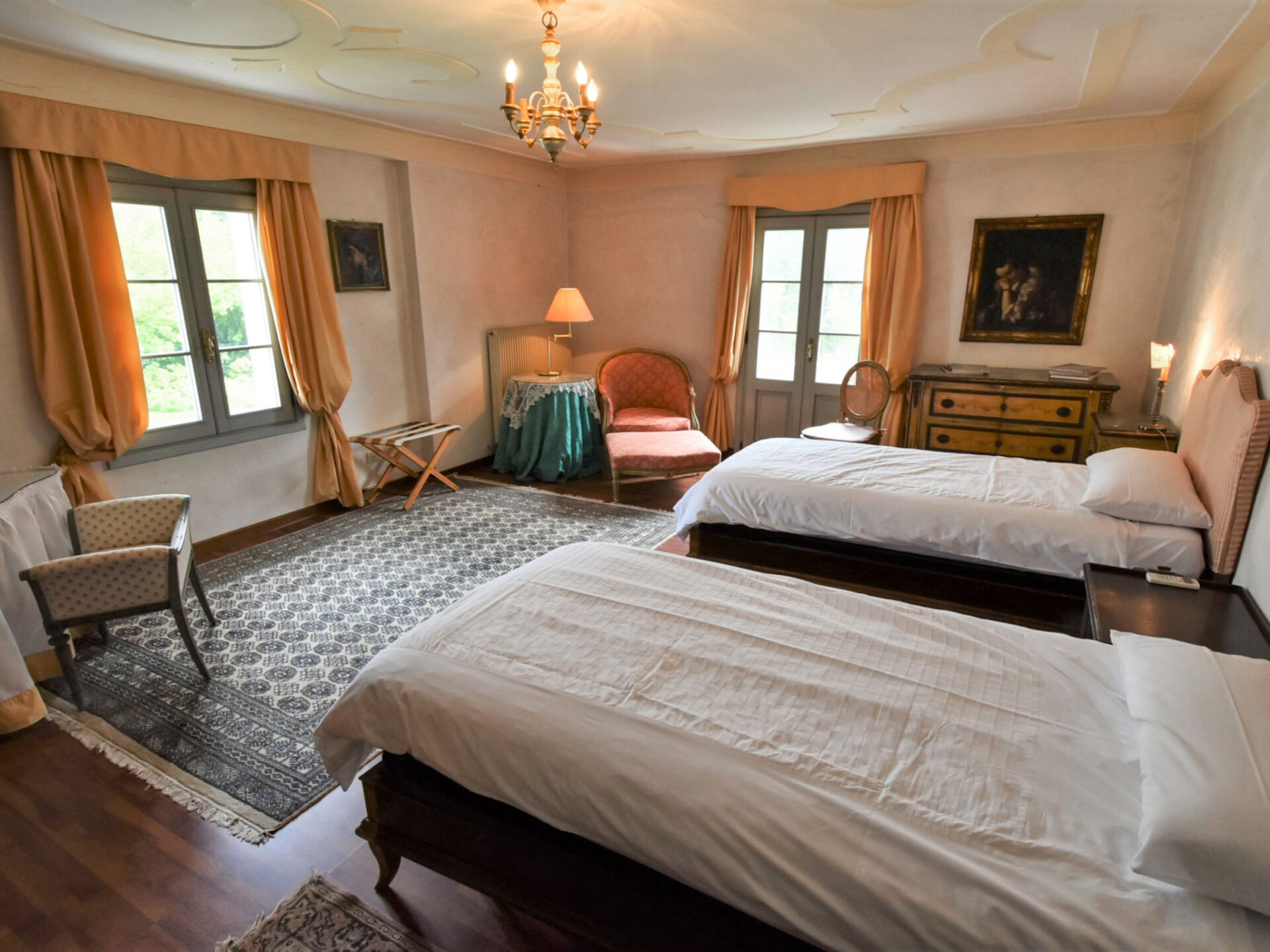 Mooi, historische villa "Cà Marcello", van 3 verdiepingen, eenzijdig aangebouwd, bouwjaar 1550, omgeven door velden en wijngaarden. Buiten de plaats Levada di Piombino Dese, rustige, zonnige ligging, te midden van groen. Voor medegebruik: park 6 ha (omheind) met gazon 2.000 m2, bloemen. Voor alleengebruik: tuin 500 m2 (omheind), openluchtzwembad geen inkijk (9 x 6 m, 160 - 160 cm diepte, seizoensgebonden beschikbaarheid: 01.Mei. - 01.Okt.). Poolhouse met koelkast, prieel, tuinmeubelen, barbecue, kinderspeelplaats. In het huis: Internet (WiFi), centrale verwarming, air-conditioning, wasmachine, droger, verwarming alleen beschikbaar van 15.Okt. - 15.Apr.. Wissel van linnengoed 1 maal per week. Wissel van handdoeken 1 maal per week. 1 maal per week schoonmaak (incl.). Kok op verzoek (extra). Parkeerplaats bij het huis. Winkel 2 km, levensmiddelenwinkel 500 m, supermarkt 8 km, restaurant 2 km, fietsverhuur 1.5 km, bushalte 650 m, treinstation 6 km. Golfterrein (18 holes) 15 km, tennis 10 km, fietspad 300 m. Attracties in de buurt: Treviso 16 km, Venezia 34 km, Padova 36 km, Verona 105 km. Geschikt voor evenementen. De eigenaar woont op hetzelfde terrein. Autobaan 15 km van het huis. Hoofdstraat 100 m van het huis. Spoorweg 6 km van het huis. Nachtclub/disco 2 km van het huis.