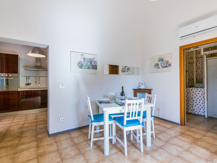 "Beach home", appartement 3-kamers 90 m2 op 2 verdiepingen op de 1e verdieping. Mooi en modern ingericht: woon-/slaapkamer met 1 2-pers divanbed, eettafel en TV. Uitgang naar het terras. Keuken (oven, afwasmachine, 3 inductiekookplaten, broodrooster, waterkoker, magnetron, elektrische koffiemachine). Uitgang naar het terras. Douche/bidet/WC. Elektrische verwarming, air-conditioning. Bovenverdieping: 1 kamer met 1 bed en 1 2-pers bed. 1 kamer met 2 bedden. Bad/bidet/WC. Groot terras gedeeltelijk. Terrasmeubelen, barbecue, ligstoelen. Mooi uitzicht op zee en de tuin. Ter beschikking: wasmachine, kinderstoel, kinderbed tot 2 jaar (extra), haardroger. Internet (WiFi, gratis). Parkeerplaats (2 Auto's). Maximaal 1 huisdier/hond toegestaan. Privé ingang. Bedindeling is flexibel. Er zijn meer slaapmogelijkheden beschikbaar dan het maximaal toegestane aantal personen dat echter niet mag worden overschreden. Bedlinnen, handdoeken, eindschoonmaak en alle energiekosten zijn inclusief. IT049017C273SRXGAA