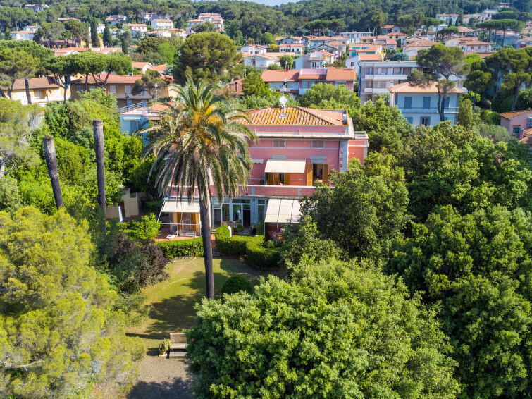Villa van 3 verdiepingen, uit de 19e eeuw. 8 appartementen in de woning. 700 m van het centrum van Castiglioncello, 13 km van het centrum van Cecina, 20 km van het centrum van Livorno, 100 m van zee, te midden van groen. Voor medegebruik: terrein 3.500 m2 (omheind), park, gazon en bomen. Terras, parkeerplaats op het terrein. Winkel 100 m, supermarkt 1.3 km, treinstation "Castiglioncello" 350 m, zandstrand 150 m kiezelstrand 100 m. Jachthaven 100 m.