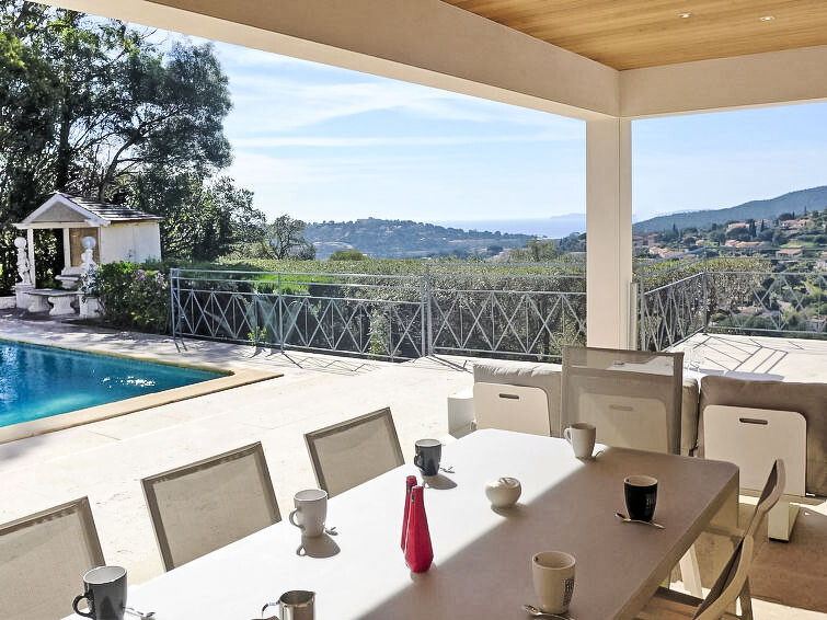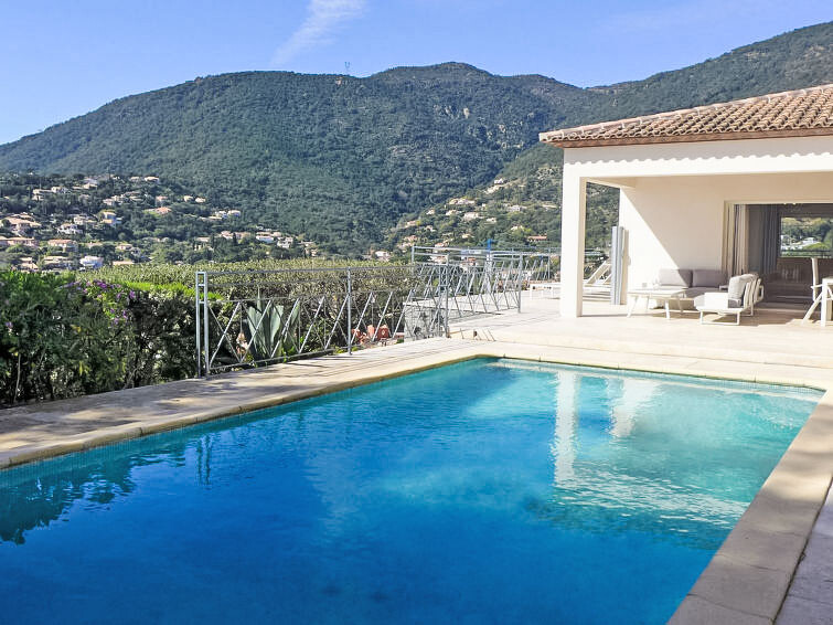 Villa "Belle Vue". Aan de rand van de plaats, 1.8 km van het centrum van Cavalaire sur Mer, rustige ligging op een heuvel, 2 km van zee. Voor alleengebruik: terrein, verzorgde tuin (omheind), openluchtzwembad hoekig (8 x 4 m, 60 - 200 cm diepte, seizoensgebonden beschikbaarheid: 08.Apr. - 07.Okt.) met alarminstallatie. Buitendouche, jeu de boules, aangelegde binnentuin. Toegangsweg tot aan het huis. Parkeerplaats (voor 4 auto's) op het terrein, eigen garage. Winkel 2 km, levensmiddelenwinkel 2 km, supermarkt 2.5 km, winkelcentrum 10 km, restaurant 2 km, bar 2 km, bakkerij 2 km, café 2 km, bushalte "place du parc" 280 m, zandstrand "Tamaris" 2 km, park "Aqualand" 26 m, duikschool 2 km. Jachthaven 2 km, zeilschool 2 km, midgetgolf 12 km. Attracties in de buurt: Azur Park, Paint-ball 12 km, Bowling à Port-Grimaud 13 km, St-Tropez 17 km, Ste-Maxime 24 km. Wandelgebied Sentier du Dattier 7.6 km, Sentier du littoral 8700 km, Toulon 60 km.