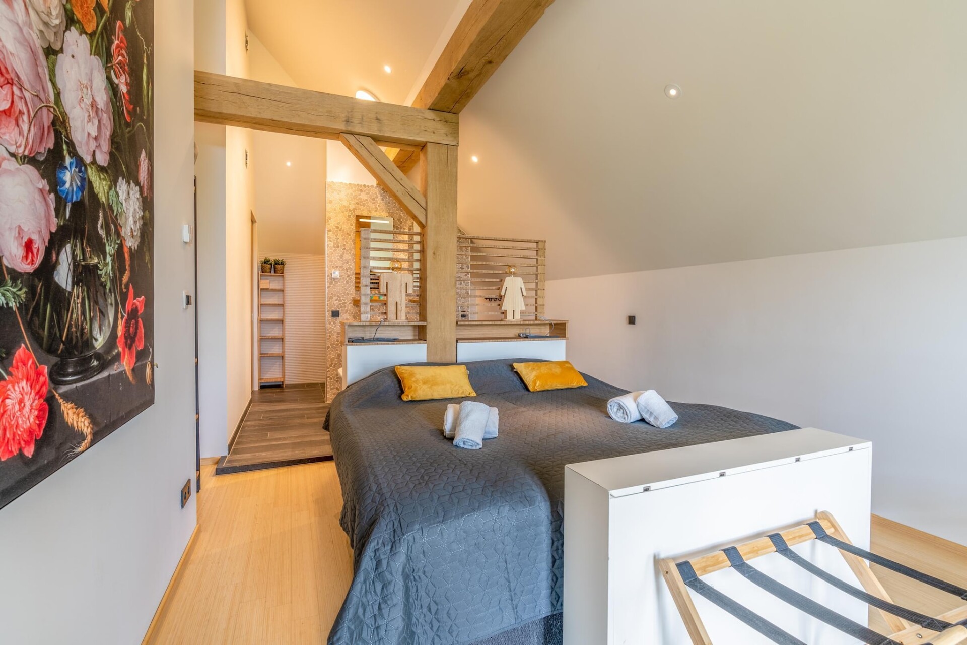 Er is 1 slaapkamer op de begane grond met eigen badkamer, voorzien van een inloopdouche met twee rainshowers en dubbele wastafel. Op de etage bevinden zich twee slaapkamers met een badkamer ensuite. Deze badkamers hebben een ruime inloopdouche en ligbad. Alle slaapkamers in het huis beschikken over comfortabele boxspringbedden en de slaapkamers op de eerste etage hebben een TV. De bedden zijn standaard opgemaakt en handdoeken liggen voor u klaar.