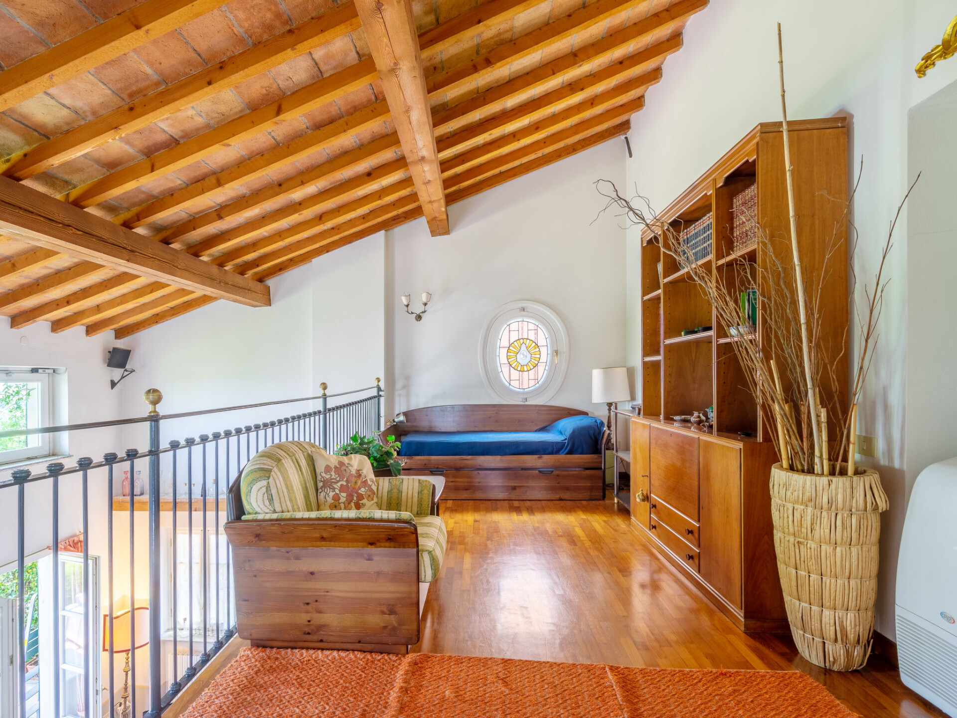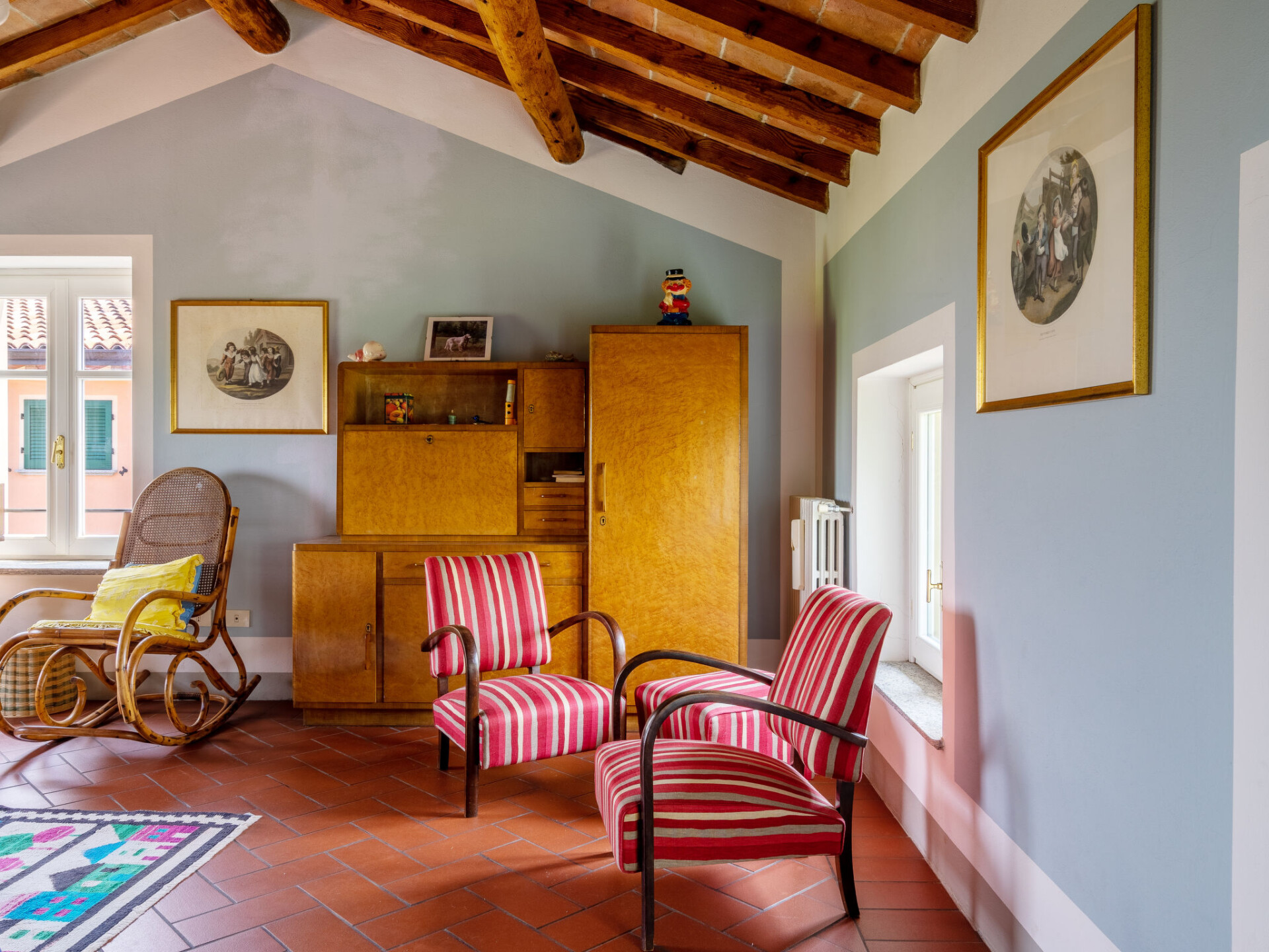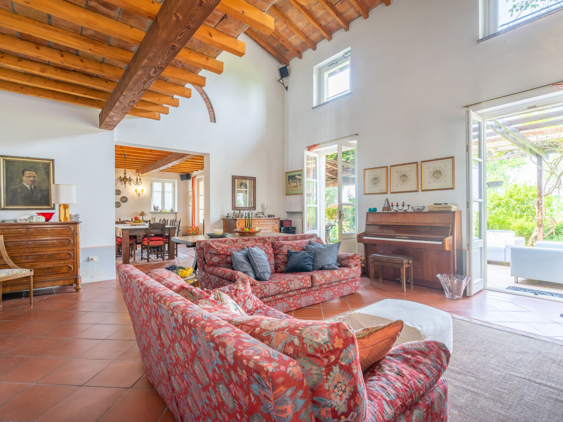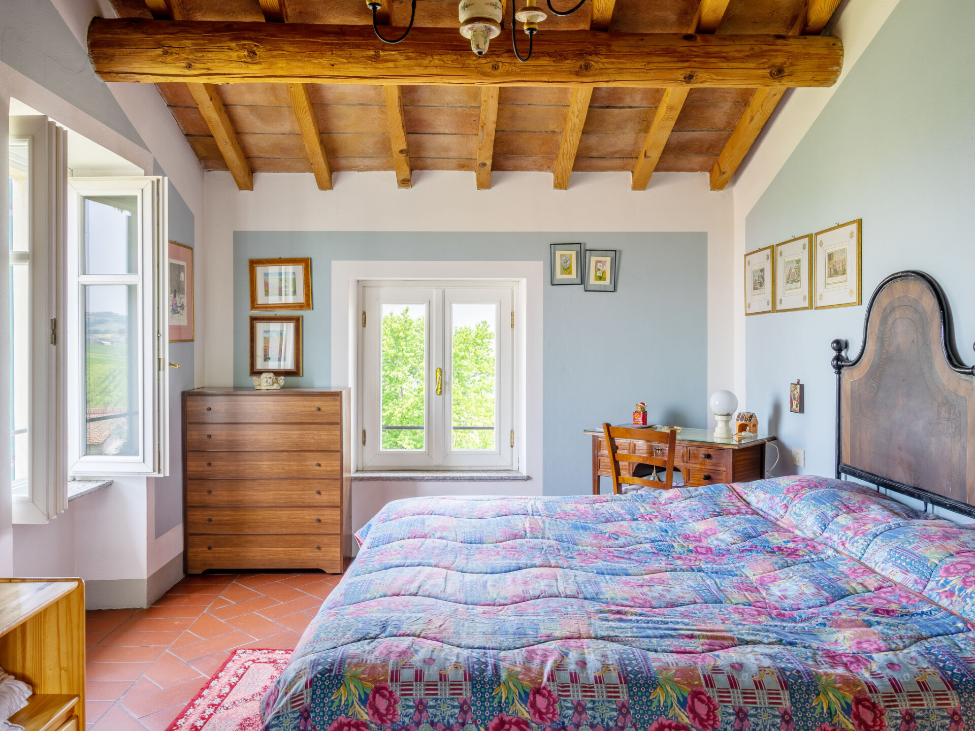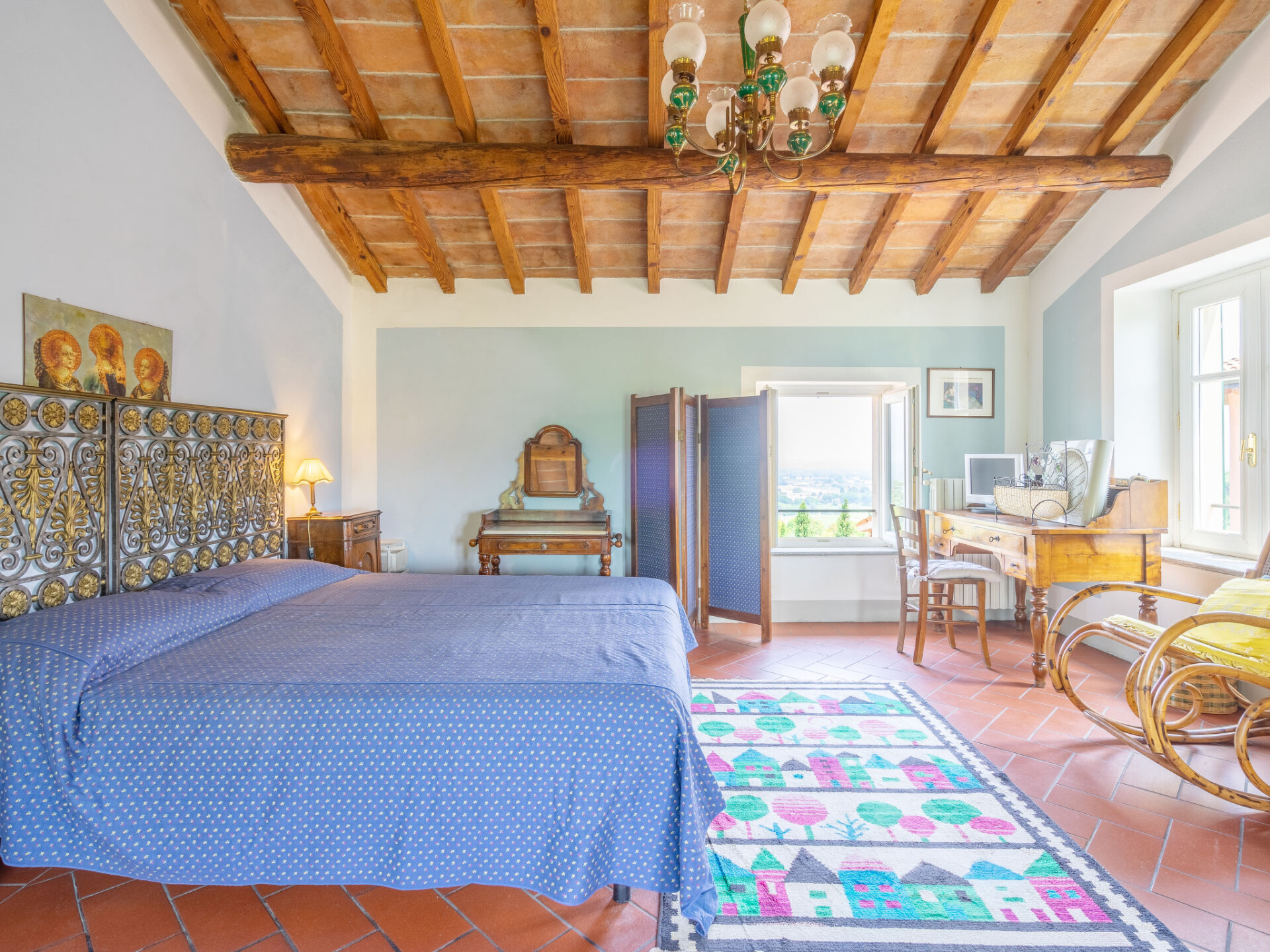 "Ca' del Vento", villa 7-kamers 450 m2 op 4 verdiepingen. Ruim, gedeeltelijk afgeschuinde daken, comfortabel en antiek ingericht: groot, open woon-/eetkamer met open haard, eettafel, Sat-TV, radio, CD-speler en stereo-installatie. Uitgang naar het terras, pergola. Groot keuken (oven, afwasmachine, 4 kookpitten (vlammen), broodrooster, waterkoker, diepvriezer, grill, elektrische koffiemachine, pizzaoven) met kleine eettafel. Uitgang naar de tuin. Aparte WC. Bovenverdieping: open galerij met 1 bed. 1 kamer met afgeschuinde daken met 1 bed en air-conditioning. 1 kamer met 2 bedden, douche/WC en air-conditioning. 2e Verdieping: 1 2-pers. kamer met 1 2-pers bed (160 cm), air-conditioning. Bad/bidet/WC. 3e Verdieping: 1 2-pers. kamer met afgeschuinde daken met 1 2-pers bed (160 cm), air-conditioning. 1 groot 2-pers. kamer met afgeschuinde daken met 1 2-pers bed en air-conditioning. Douche/WC. Gas-verwarming (extra). Parketvloeren, natuurstenen vloeren. Klein terras, groot terras gedeeltelijk overdekt. Terrasmeubelen, ligstoelen (10), loggia, zitgelegenheid. Mooi panoramazicht op het dal en het landschap. Ter beschikking: wasmachine, strijkijzer, kinderstoel, kinderbed tot 2 jaar, haardroger. Internet (WiFi, gratis). Rookvrij huis. Maximaal 2 huisdieren/honden toegestaan. Privé ingang. IT018187C2XIO5BEKE