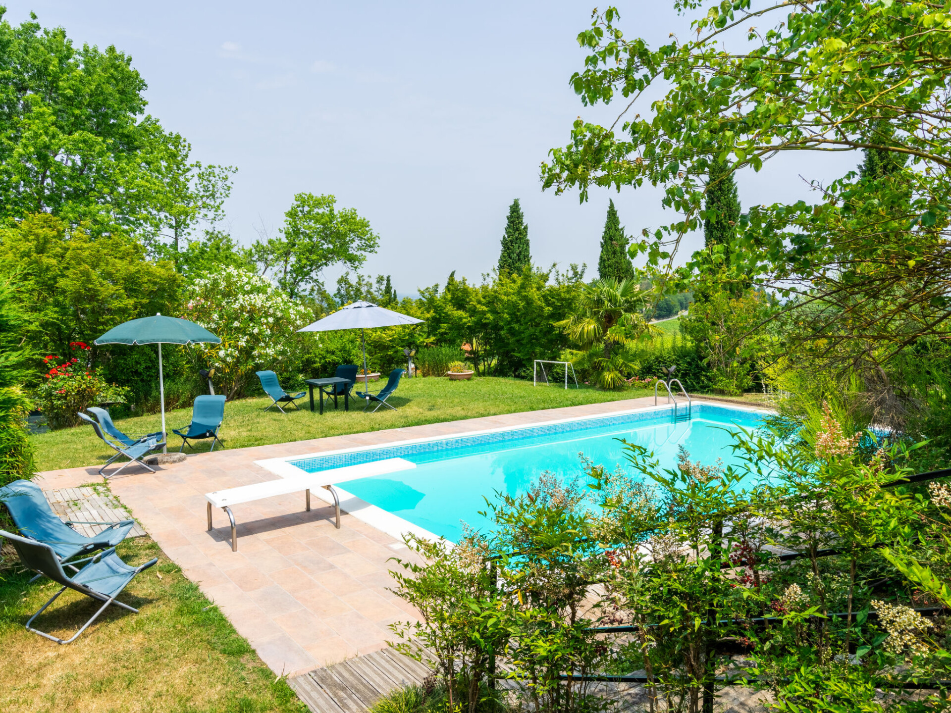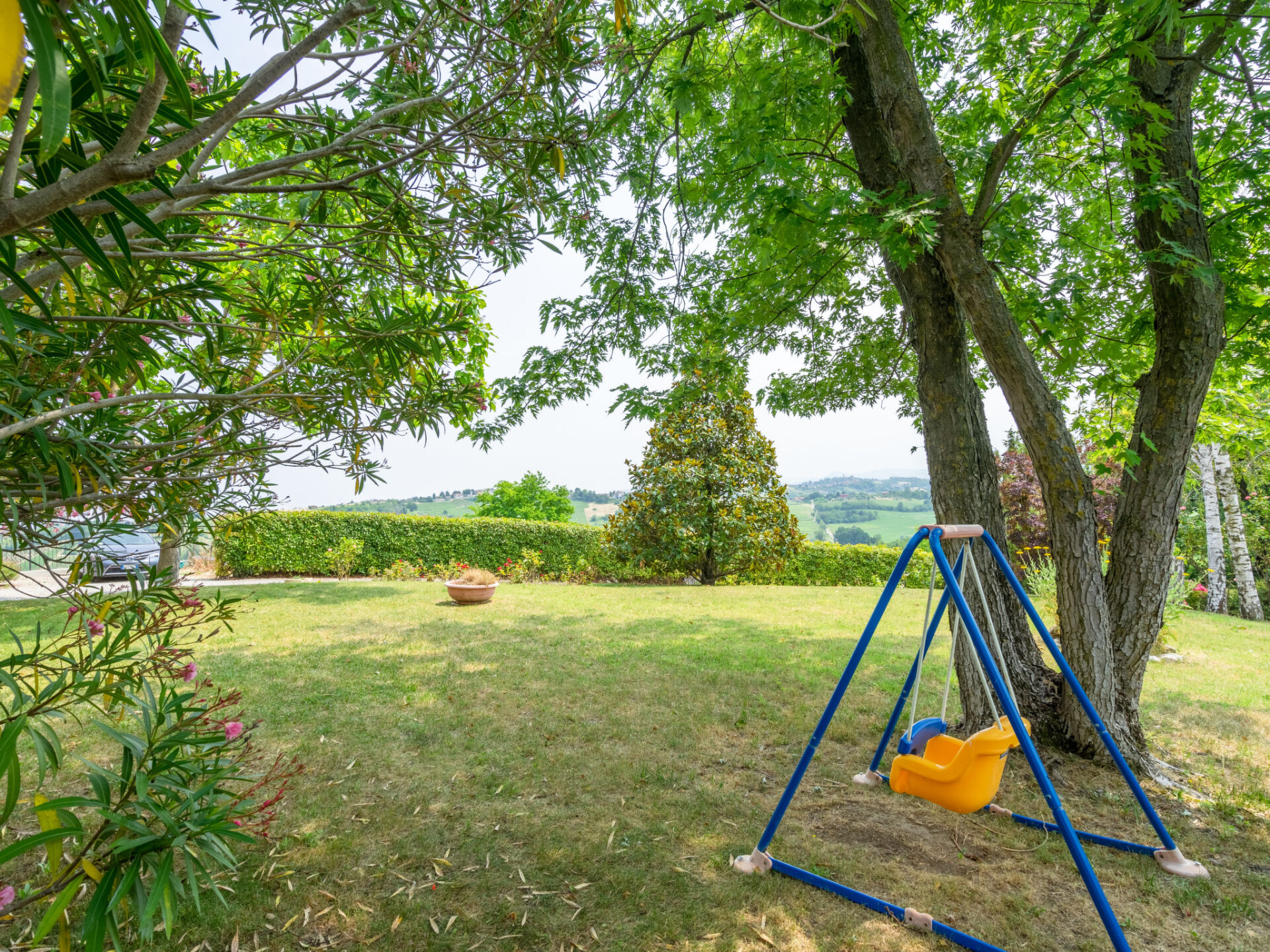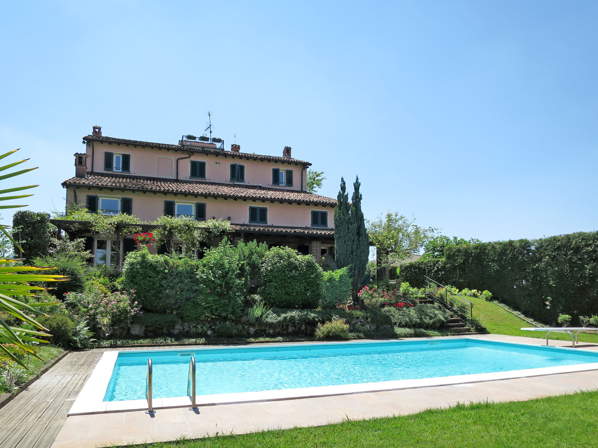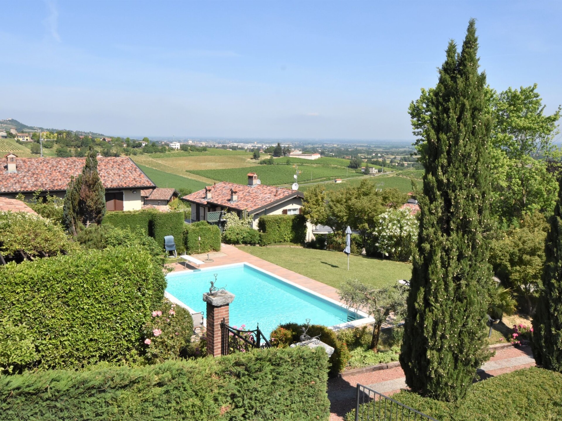 Groot, mooi villa "Ca' del Vento", 300 m boven zeeniveau, vrijstaand uit de 19e eeuw, gerenoveerd, omgeven door velden en wijngaarden. In het gehucht Orzola, 1 km van het centrum van Zenevredo, 24 km van het centrum van Pavia, 70 km van het centrum van Milano, zonnige ligging op een heuvel, villa wijk, 120 km van zee, te midden van groen. Voor alleengebruik: terrein 2.000 m2, tuin op verschillende niveaus (niet omheind) met gazon en bomen, ligweide, openluchtzwembad geen inkijk (11 x 5 m, 150 - 300 cm diepte, seizoensgebonden beschikbaarheid: 16.Mei. - 15.Okt.). Buitendouche, prieel, tuinmeubelen, barbecue, onderhoud zwembad door de eigenaar/tuinman. 50 m lange toegangsweg (onverharde weg). Parkeerplaats (voor 4 auto's) bij het huis. Supermarkt 7 km, restaurant 1.8 km, bar 1.2 km, bushalte 1.7 km, treinstation "Stradella" 3 km, thermaalbad "Salice Terme" 42 km. Golfterrein (18 holes) 27 km. Geschikt voor families. De eigenaar accepteert geen jeugdgroepen.