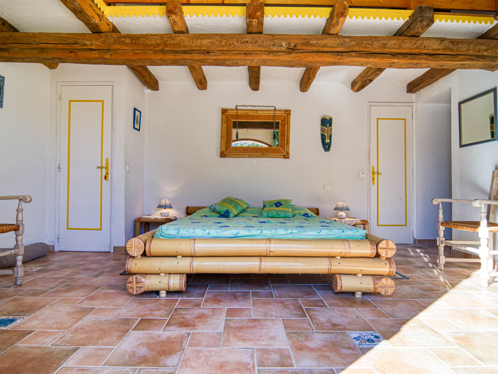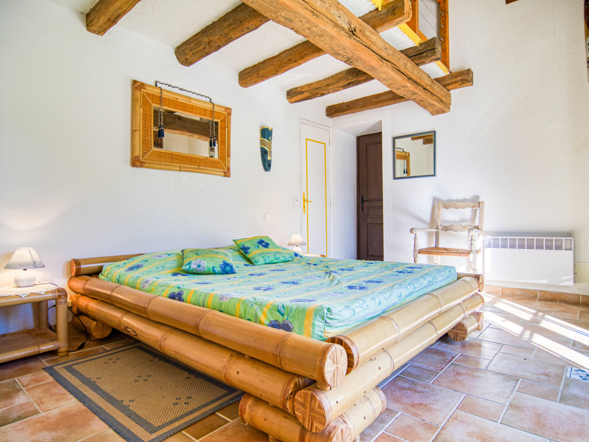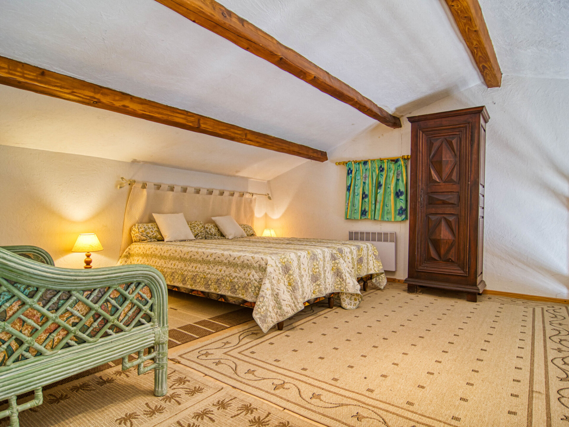 "VIlla Camille", villa 5-kamers 200 m2. Doelmatig ingericht: woon-/eetkamer met open haard, eettafel en TV (Flatscreen TV). Uitgang naar het terras. 2 kamers, elke kamer heeft 1 2-pers bed (140 cm, lengte 190 cm). 1 kamer met 2 bedden (90 cm, lengte 190 cm). 1 kamer met 1 2-pers bed (160 cm, lengte 200 cm). Kleine, open keuken (oven, afwasmachine, 4 keramische glas kookplaten, broodrooster, waterkoker, magnetron, elektrische koffiemachine). Uitgang naar het terras. Bad/douche, douche, aparte WC. Bovenverdieping: (steile trap), 1 open kleine kamer met afgeschuinde daken met 2 bedden (90 cm, lengte 190 cm). Elektrische verwarming. Terrasmeubelen, barbecue, ligstoelen (6). Ter beschikking: wasmachine, strijkijzer. Rookmelders. Aanbod door een particulier volgens art. 155, IV van CGI.