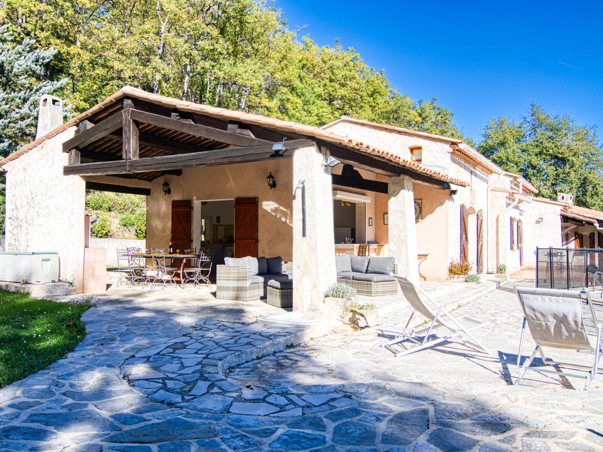 Eengezinswoning. Domaine de la Chesnaie, 8 km van het centrum van Mons, 9 km van het centrum van Fayence, 18 km van het centrum van Saint-Cezaire sur Siagne, in een woonwijk. Voor alleengebruik: terrein 7.500 m2, tuin op verschillende niveaus, openluchtzwembad omheind (13 x 5 m, 120 - 240 cm diepte, seizoensgebonden beschikbaarheid: 29.Mrt. - 25.Okt.). Buitendouche, poolhouse met koelkast, WC en fornuis, parkeerplaats op het terrein. Levensmiddelenwinkel 8 km, supermarkt 11 km, restaurant 8 km, bakkerij 8 km, café 8 km, bushalte 8 km, meer de Saint Cassien 18 km. Golfterrein (18 holes) 16 km, manege 8 km. Attracties in de buurt: Saint Raphael 44 km, Cannes 48 km, Villages Perchés du Var, Castellane, Grotte de la Foux, Gorges du Verdon. Bekende meren kunnen gemakkelijk worden bereikt: Saint Cassien 18 km, Lac de Castillon 54 km, Lac de Sainte Croix 82 km. Auto noodzakelijk. De eigenaar accepteert geen jeugdgroepen.