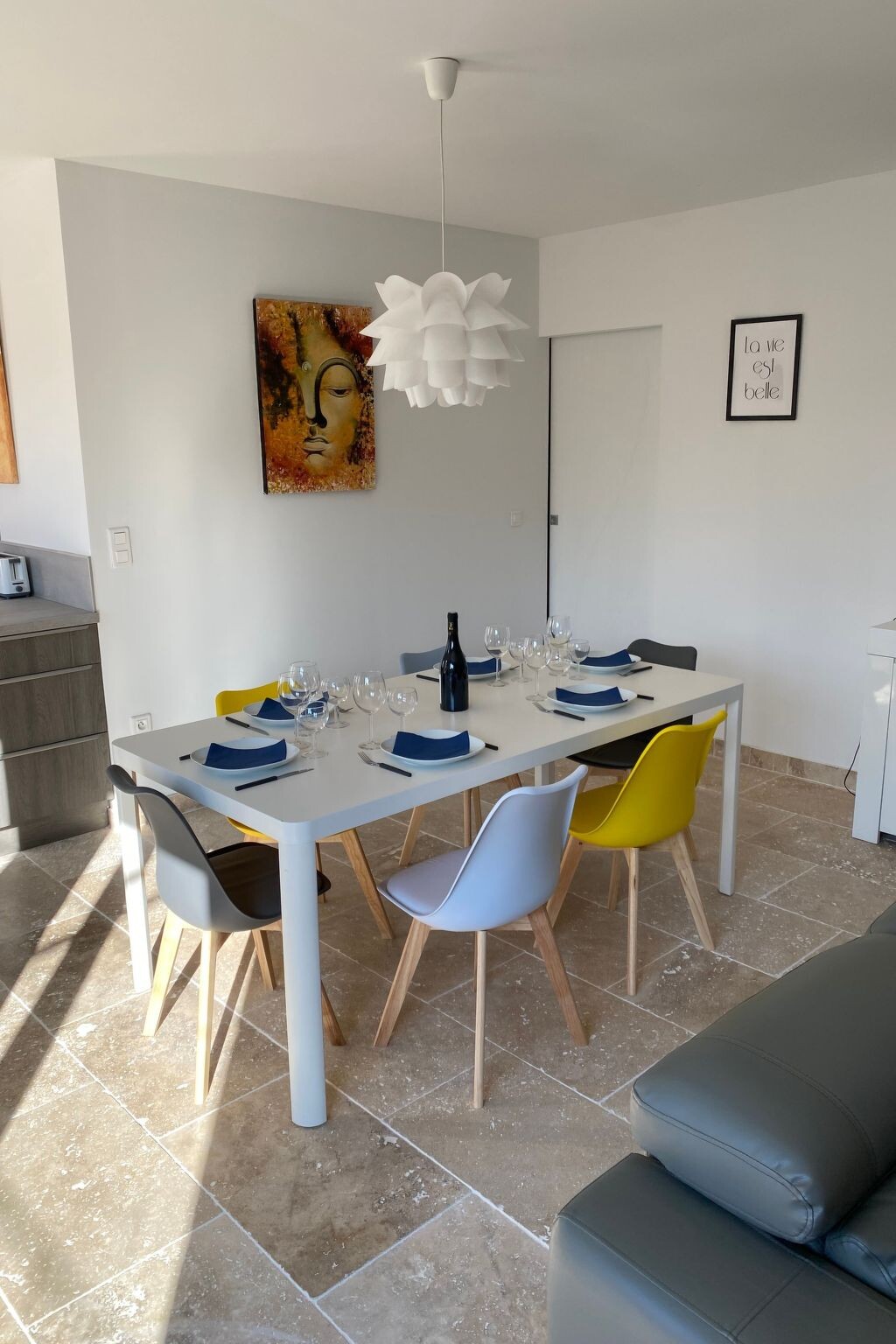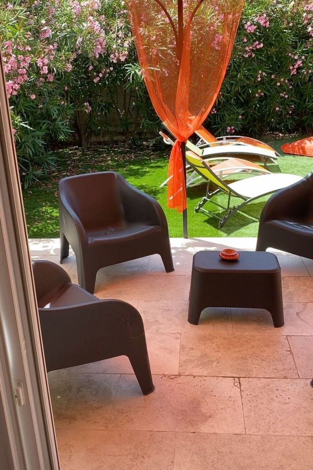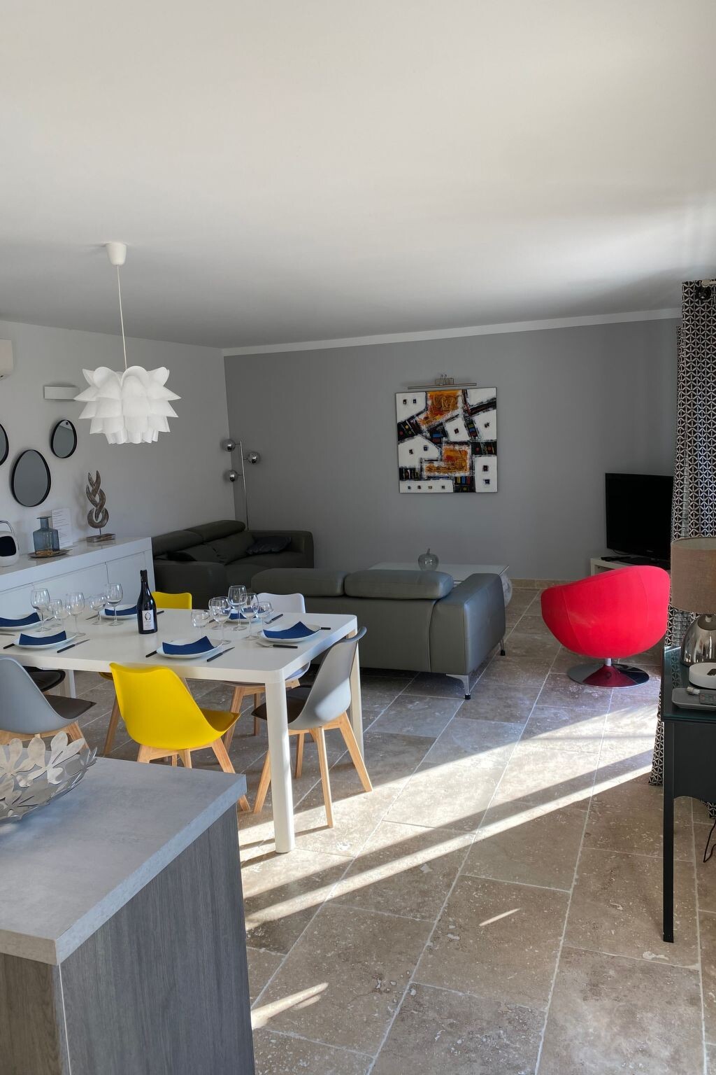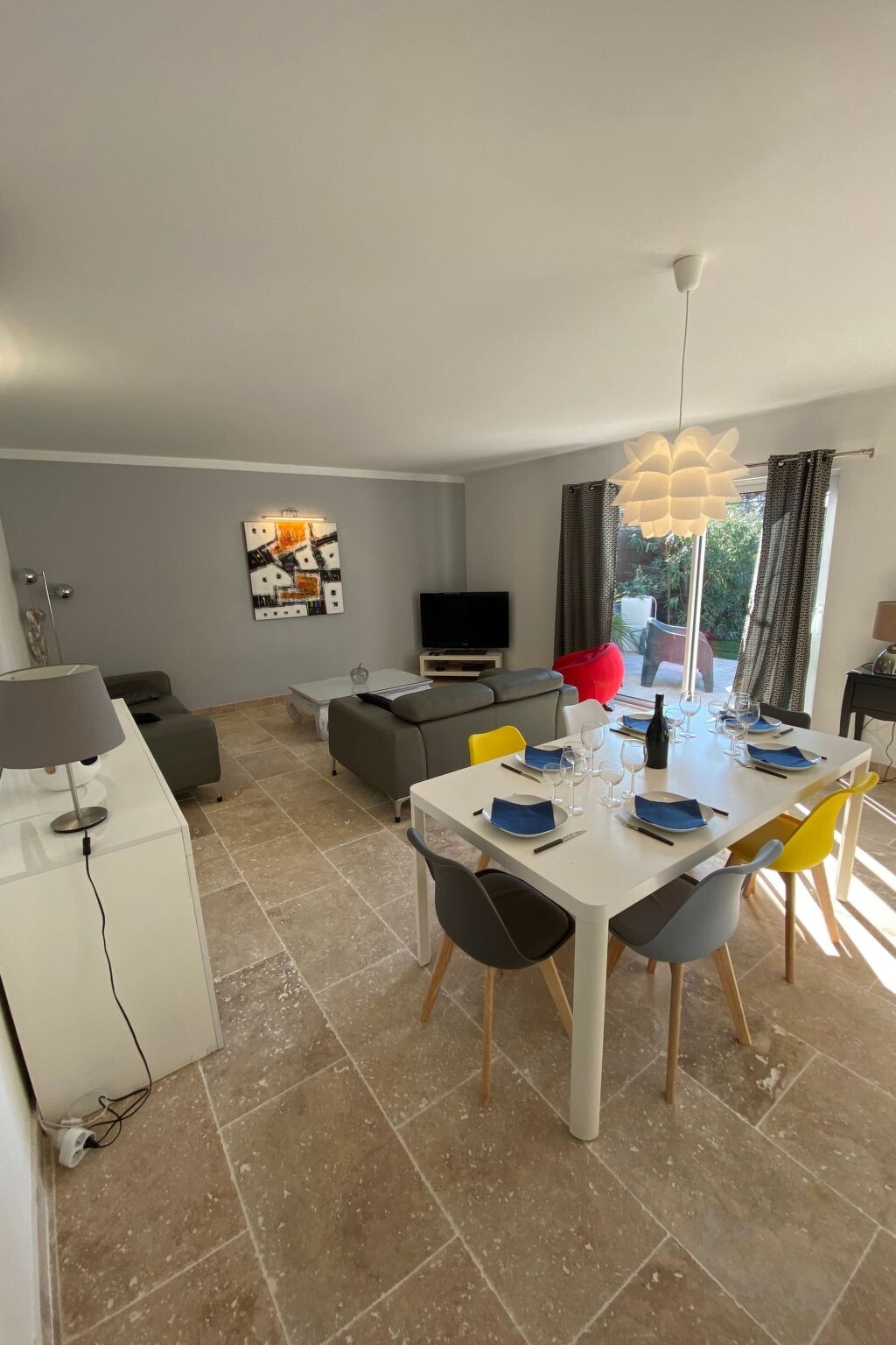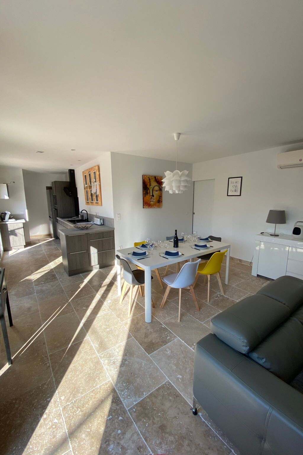 Bright, modern villa with heated pool in Provence, 10 km from Avignon Located in Tavel, a small Gard village renowned for its rosé wine in the heart of the Tavel, Lirac and Châteauneuf du Pape vineyards. Just 10 km from Avignon, the Pont du Gard and Orange. It's the ideal base for exploring Provence (Les Baux de Provence, Saint Rémy de Provence, Le Lubéron) and the many other tourist attractions in the region: Drôme provençale, Uzès, Vallée de la Cèze, la Camargue, les Calanques de Cassis .... The villa is in a quiet, pleasant residential area, at the end of a cul-de-sac. It is a 5-minute walk from the village centre and a few minutes from footpaths and cycle paths. Dogs are allowed and the garden is fully fenced.New 100 m2 ground-floor villa for 6 people: open-plan kitchen, dining/living room opening onto covered terrace and swimming pool, 1 master suite with shower and washbasin (160 cm double bed), 1 bedroom (160 cm double bed), 1 bedroom with 160 cm double bed, bathroom, air-conditioned villa in the day area (kitchen, dining room and living room).Fully fenced property planted with oleanders. Large shaded terrace with dining table, barbecue and garden furniture (4 armchairs) and 4 deckchairs 2 fatboys Heated swimming pool (April to October), secured with a 3*6 m cover and 1.20 metre deep.Household linen (sheets and towels) Beds are made on arrival and the pool is serviced once a week by the owner. The house is equipped with a cot and high chair.Ideal location for enjoying the villa and swimming pool and discovering the many tourist attractions in the region at your own pace. 2770977