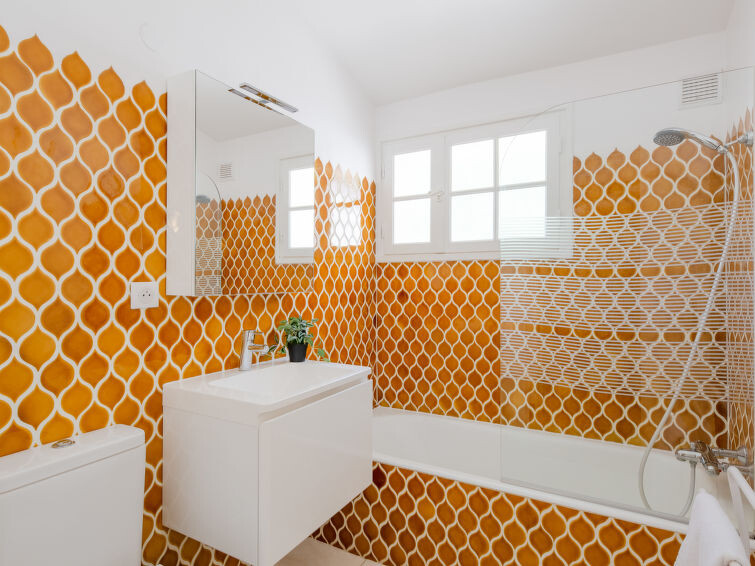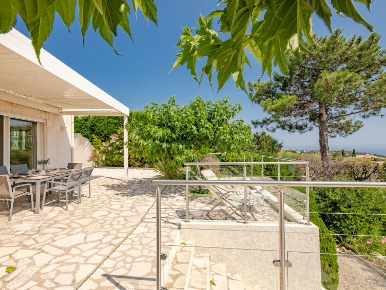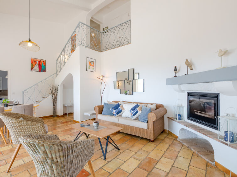Villa 4-kamers 110 m2 op 2 verdiepingen. Comfortabel en mooi ingericht: hal. 1 kamer met 1 2-pers bed (160 cm, lengte 200 cm), bad/WC en air-conditioning. 1 kamer met 2 bedden (90 cm, lengte 190 cm), douche/WC. Souterrain: woon-/eetkamer met panoramavenster met open haard (alleen decoratie), TV (Flatscreen TV), air-conditioning. Uitgang naar het terras. 1 kamer met 1 2-pers bed (160 cm, lengte 200 cm), douche/WC en air-conditioning. Uitgang naar de tuin. Keuken (oven, afwasmachine, 3 inductiekookplaten, broodrooster, waterkoker, magnetron, elektrische koffiemachine) met eettafel. Elektrische verwarming. Terras 220 m2, op het zuiden gelegen en op het westen gelegen. Terrasmeubelen, ligstoelen (6). Zeer mooi uitzicht op zee. Ter beschikking: wasmachine, kinderbed tot 2 jaar. Internet (Internet (WiFi), gratis). Niet rokers woning. Maximaal 1 huisdier/hond toegestaan. Rookmelders. Op de begane grond, toegang tot de kamer via de wasruimte. 83107000673JO