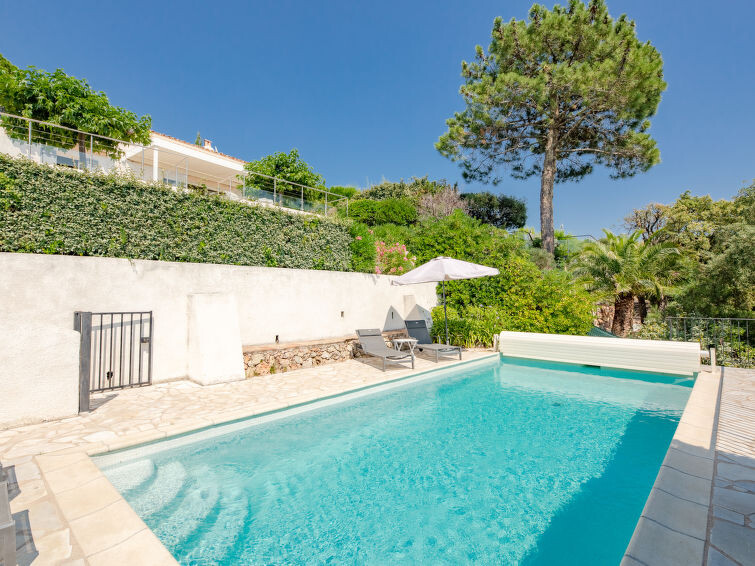Villa "Clos Romain", van 2 verdiepingen. Buiten de plaats, 3.5 km van het centrum van Les Issambres, rustige ligging op een heuvel, 3.5 km van zee, 3.5 km van het strand. Voor alleengebruik: terrein 1.100 m2 (omheind) met planten en bomen, openluchtzwembad (4 x 9 m, 120 - 180 cm diepte, seizoensgebonden beschikbaarheid: 01.Mei. - 30.Sep.) met trap en oprolbaar afdekscherm. Buitendouche. Toegangsweg tot aan het huis. Parkeerplaats. Winkel 3 km, supermarkt 3 km, winkelcentrum 8 km, restaurant 3 km, bushalte 3 km, treinstation "Saint-Raphael TGV" 16 km, zandstrand 3.5 km, thermaalbad "Thalasso Les Issambres" 3.5 km. Jachthaven 4 km, golfterrein (18 holes) 10 km, tennis 3 km. Attracties in de buurt: Navette/Shuttle Boat St Tropez 20min 3.5 km, Aqualand waterpark 12 km, Saint-Tropez/Ramatuelle 23 km, Port-Grimaud 18 km, Sainte-Maxime 10 km, Gorges du Verdon 95 km. Wandelgebied Massif des Maures 15 km, Massif de l'Esterel 30 km. Auto noodzakelijk. De sleuteloverdracht vindt plaats bij het agentschap Interhome in Sainte-Maxime. Vliegveld 70 km van het huis. Het zwembad is beveiligd door een elektrisch gordijn van harde kunststof.