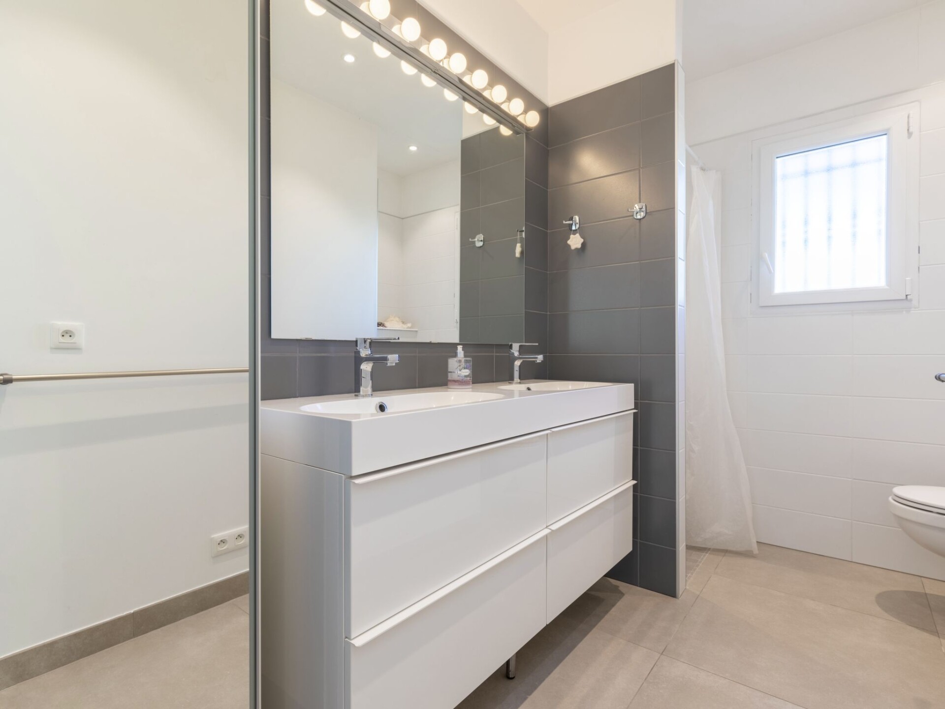 Villa 4-kamers 140 m2. Woon-/eetkamer met open haard (alleen decoratie), TV (Flatscreen TV). Uitgang naar het terras. 1 kamer met Kleedkamer met 1 2-pers bed (160 cm, lengte 190 cm), douche/WC. Uitgang naar het terras. 1 kamer met 1 2-pers bed (140 cm, lengte 190 cm). Uitgang naar de tuin, naar het terras. 1 kamer met 1 2-pers bed (160 cm, lengte 190 cm). Uitgang naar het terras. Open keuken (oven, afwasmachine, 4 kookpitten (vlammen), broodrooster, waterkoker, elektrische koffiemachine) met kleine eettafel. Douche/WC, aparte WC, dubbele wastafels. Elektrische verwarming. Terrasmeubelen, ligstoelen (4). Ter beschikking: wasmachine, strijkijzer. Internet (Internet (WiFi), gratis). Rookvrij huis. Rookmelders. Aanbod door een particulier volgens art. 155, IV van CGI.