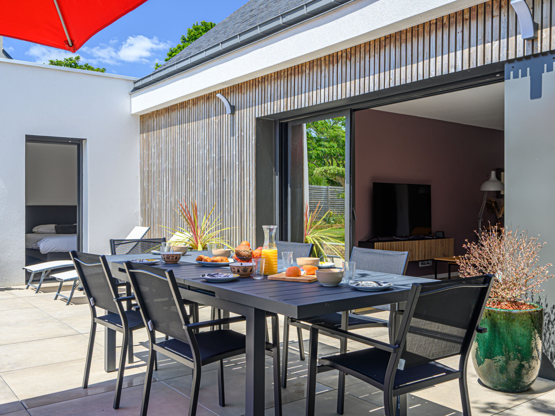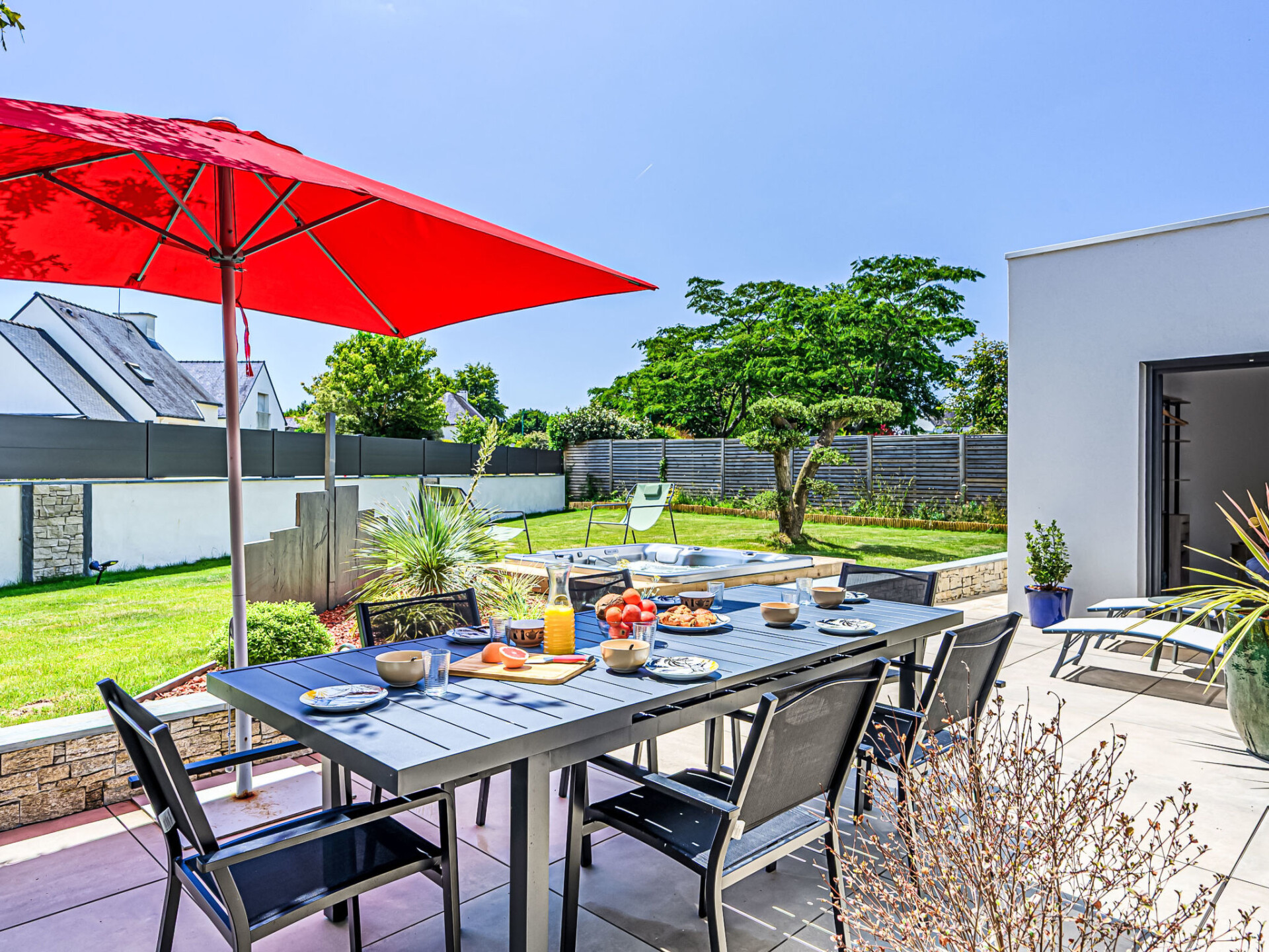 Crac'h 9 km van Carnac: Mooi huis "Villa du Fort Espagnol", bouwjaar 2024. In het centrum van Crac'h, 3 km van zee, 6 km van het strand. Voor alleengebruik: hot tub, parkeerplaats. Supermarkt 4 km, restaurant 500 m, bar 300 m, bakkerij 500 m, café 300 m, bushalte "Centre de Crac'h" 400 m, zandstrand "Plage de Saint-Phillibert" 6 km, openluchtzwembad 10 km. Tennis 6 km. Attracties in de buurt: Grande plage de Carnac 10 km, La Trinité sur Mer 6 km, Auray et le Port de St Goustan 10 km, Quiberon 28 km, Belle Ile en Mer, Les iles du Golfe du Morbihan.