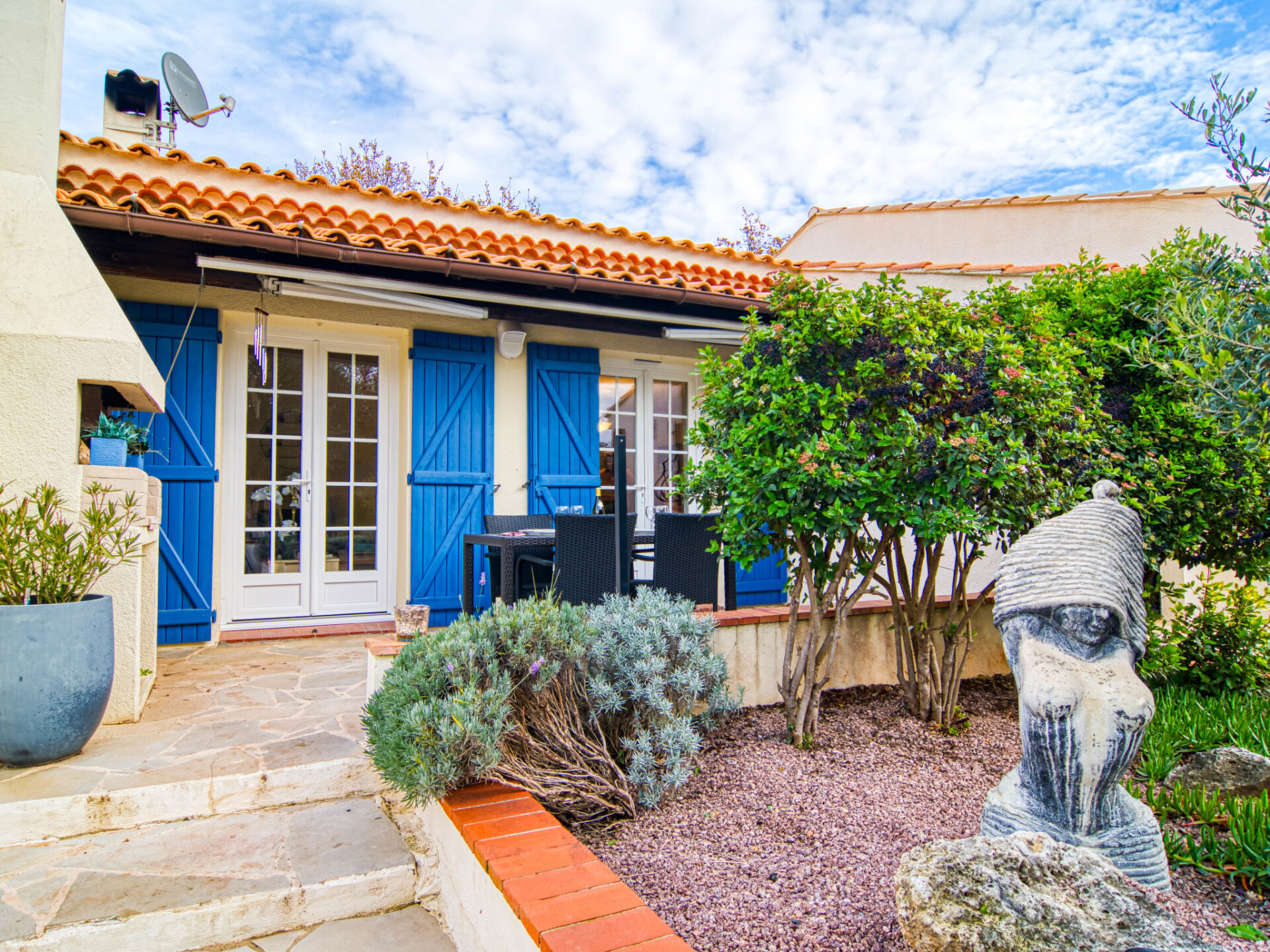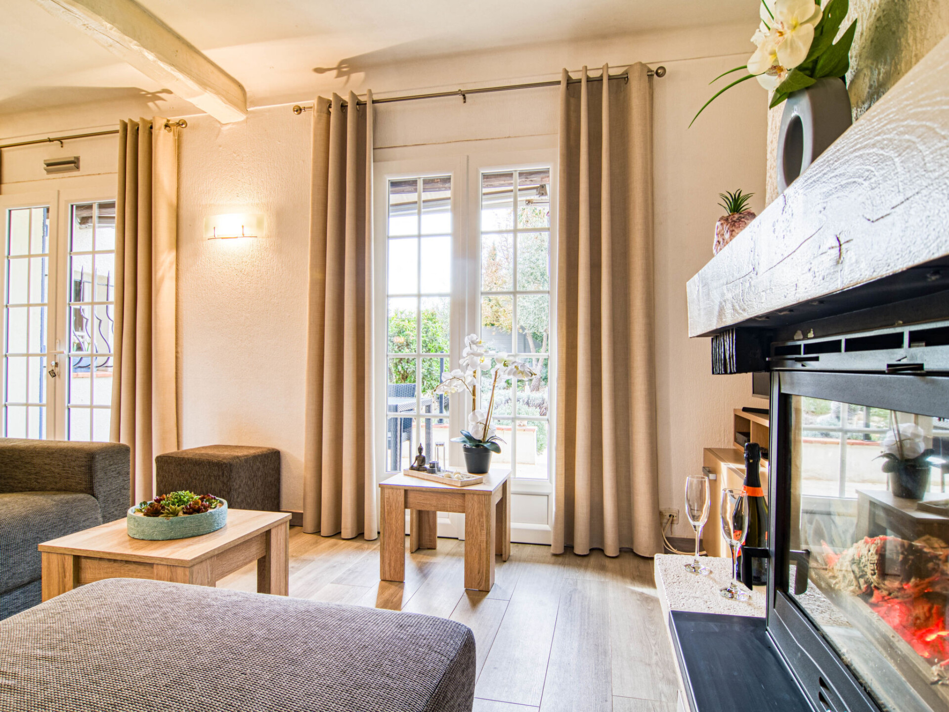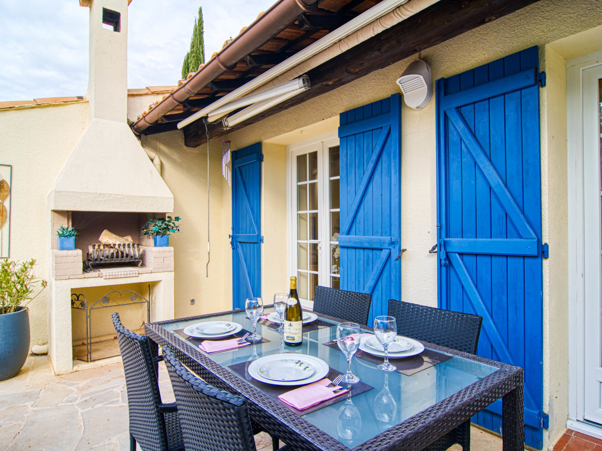 "Villa Esterel", villa 4-kamers 130 m2. Comfortabel en mooi ingericht: woon-/eetkamer met open haard (alleen decoratie), eettafel en TV (Flatscreen TV). Uitgang naar het terras. 1 kamer met 1 2-pers bed (180 cm, lengte 200 cm), ventilator. 2 kamers, elke kamer heeft 2 2-pers bedden (140 cm, lengte 190 cm), ventilator. Open keuken (oven, afwasmachine, 4 keramische glas kookplaten, broodrooster, waterkoker, magnetron, elektrische koffiemachine) met eethoek. Aparte WC, bad/douche/WC. Elektrische verwarming. Groot terras overdekt. Terrasmeubelen, elektrische barbecue, ligstoelen (4). Ter beschikking: wasmachine, droger, strijkijzer, klamboe, haardroger. Internet (WiFi, gratis). Rookvrij huis. Rookmelders. Het zwembad genoemd in de beschrijving is voor privé gebruik. Aanbod door een particulier volgens art. 155, IV van CGI.