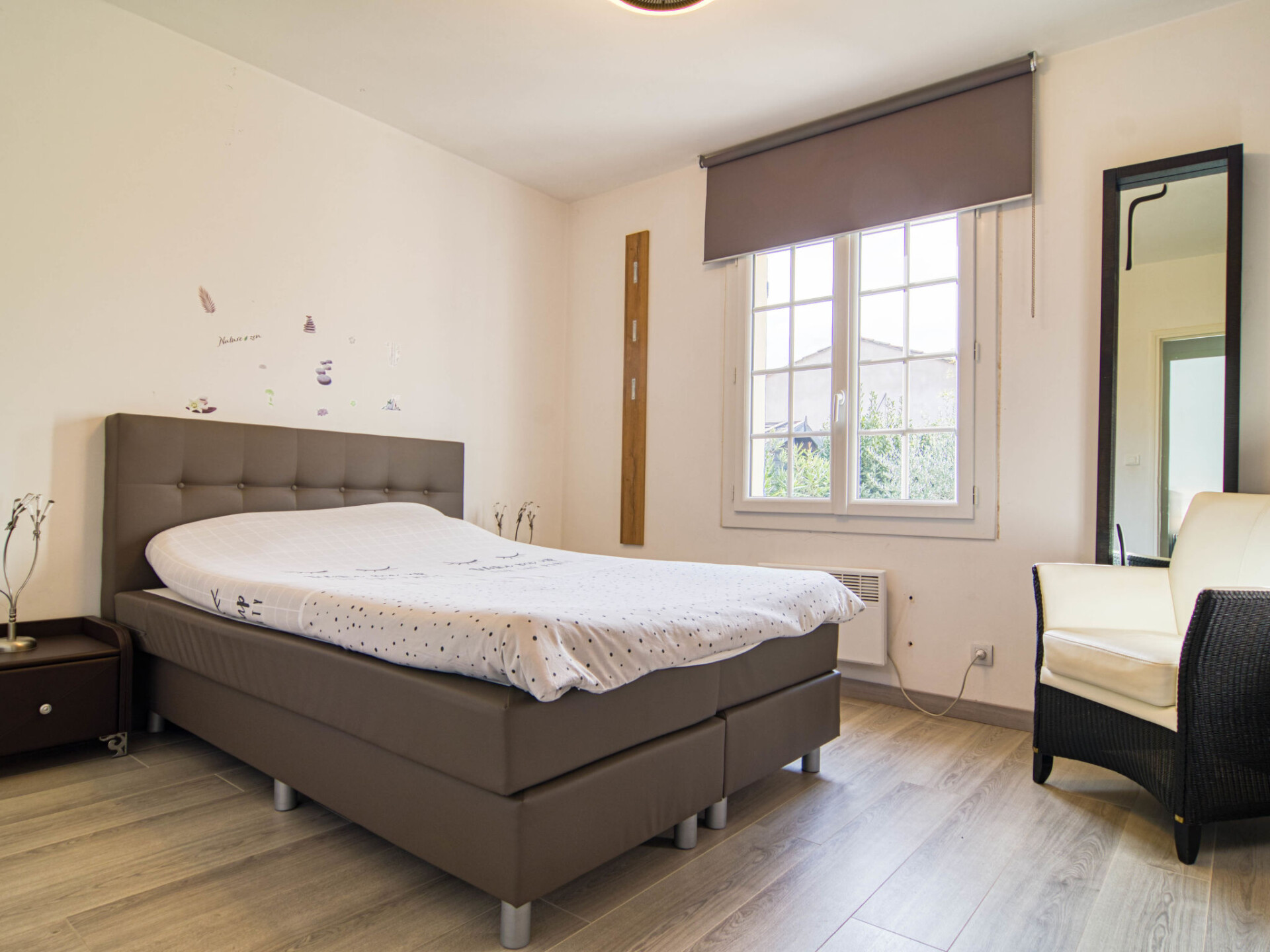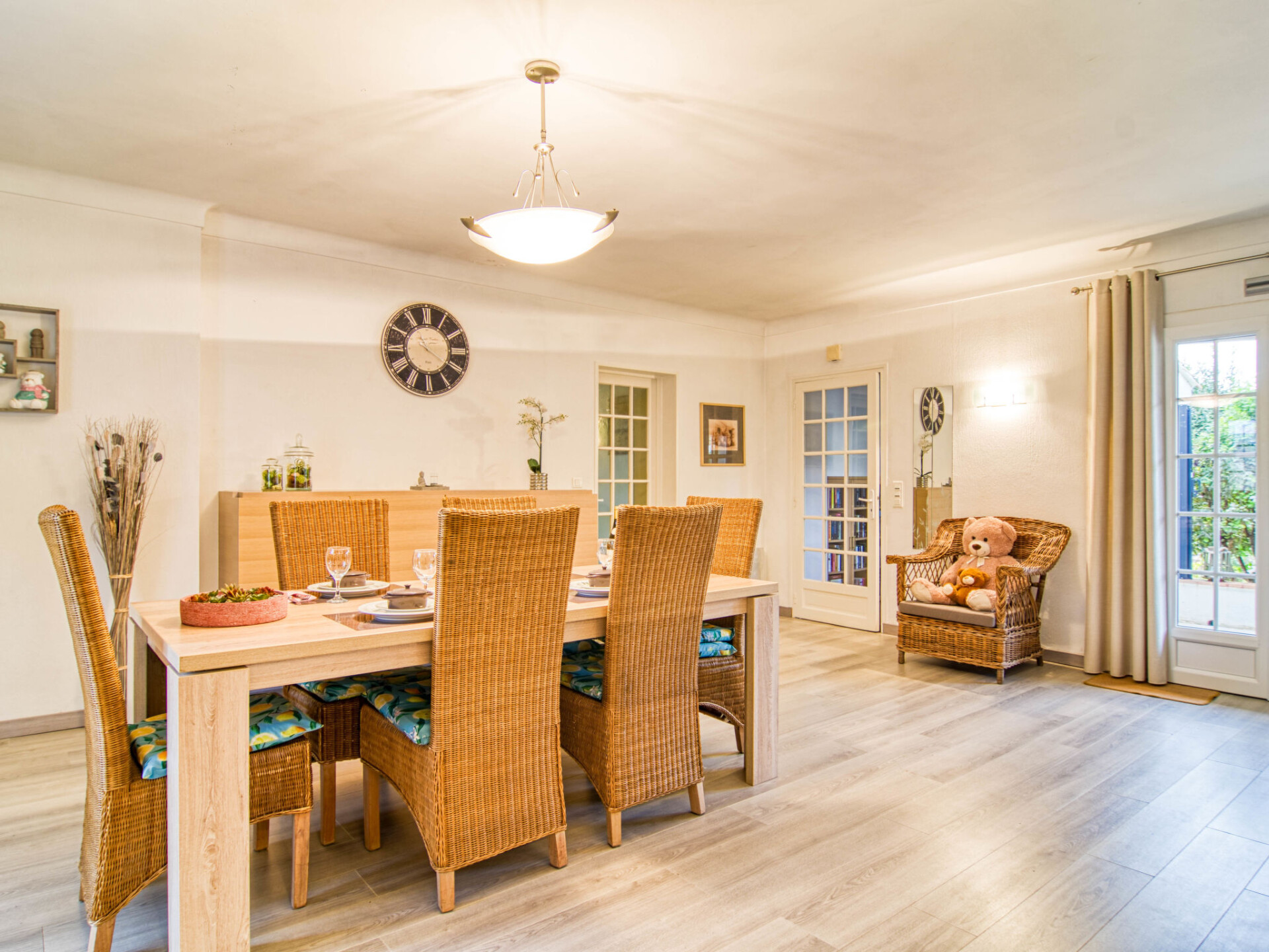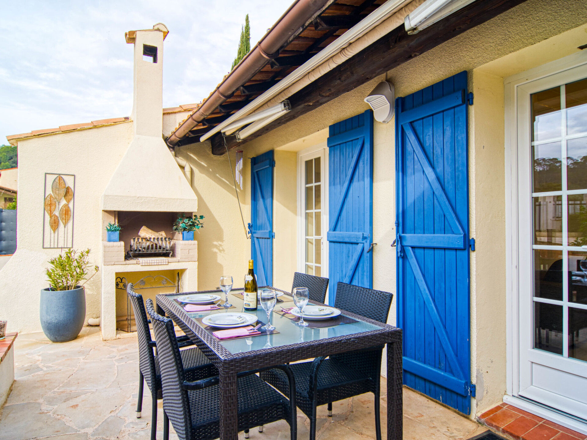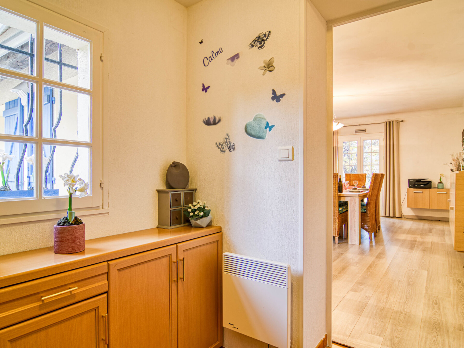 "Villa Esterel", villa 4-kamers 130 m2. Comfortabel en mooi ingericht: woon-/eetkamer met open haard (alleen decoratie), eettafel en TV (Flatscreen TV). Uitgang naar het terras. 1 kamer met 1 2-pers bed (180 cm, lengte 200 cm), ventilator. 2 kamers, elke kamer heeft 2 2-pers bedden (140 cm, lengte 190 cm), ventilator. Open keuken (oven, afwasmachine, 4 keramische glas kookplaten, broodrooster, waterkoker, magnetron, elektrische koffiemachine) met eethoek. Aparte WC, bad/douche/WC. Elektrische verwarming. Groot terras overdekt. Terrasmeubelen, elektrische barbecue, ligstoelen (4). Ter beschikking: wasmachine, droger, strijkijzer, klamboe, haardroger. Internet (WiFi, gratis). Rookvrij huis. Rookmelders. Het zwembad genoemd in de beschrijving is voor privé gebruik. Aanbod door een particulier volgens art. 155, IV van CGI.