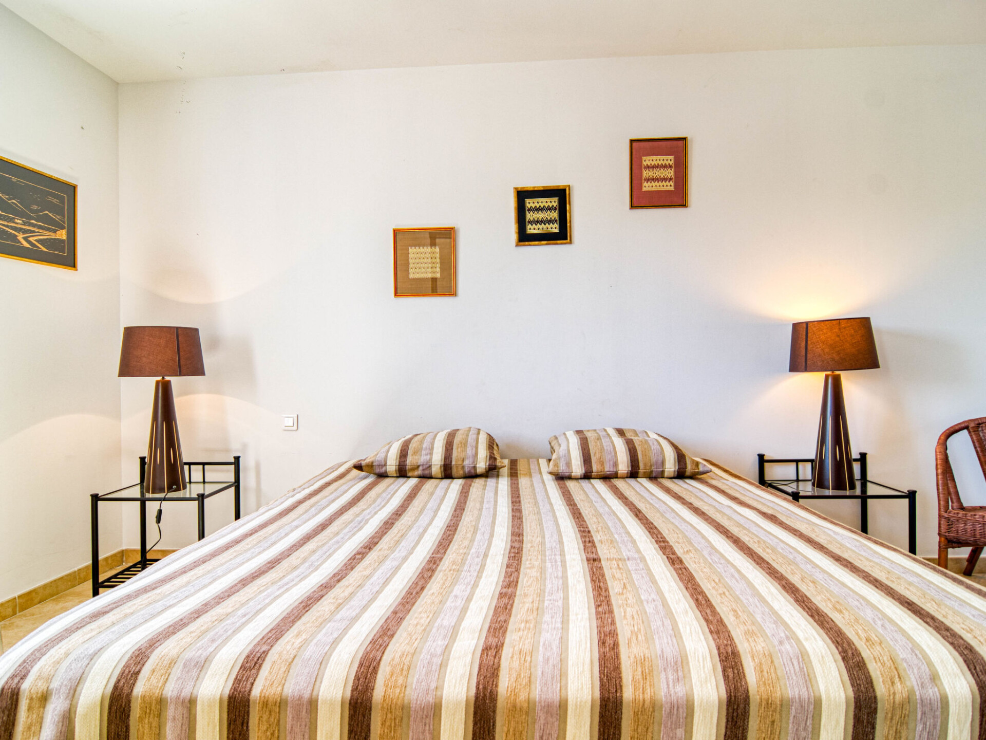 "Villa Faro", huis 5-kamers 200 m2 op 2 verdiepingen. Ruim en licht, comfortabel en smaakvol ingericht: groot woonkamer met schuifdeur met open haard (alleen decoratie), eettafel, Sat-TV, stereo-installatie en DVD. Uitgang naar het terras. 1 kamer met Kleedkamer met 1 2-pers bed (180 cm, lengte 200 cm). Uitgang naar het terras. Open keuken (oven, afwasmachine, 3 inductiekookplaten, broodrooster, waterkoker, magnetron, diepvriezer, elektrische koffiemachine). Uitgang naar het terras. Douche/WC, aparte WC, dubbele wastafels. Bovenverdieping: 1 kamer met 2 bedden (90 cm, lengte 190 cm), douche. 1 kamer met 1 2-pers bed (180 cm, lengte 200 cm). 1 kamer met Kleedkamer met 2 bedden (90 cm, lengte 190 cm). Aparte WC, bad/douche/WC, dubbele wastafels. Elektrische verwarming, air-conditioning. Terras overdekt. Terrasmeubelen, barbecue. Uitzicht op de tuin. Ter beschikking: wasmachine, droger, strijkijzer, kinderbed. Internet (Internet (WiFi), gratis). Rookvrij huis. Rookmelders. Als er minder dan het maximale aantal gasten in de accommodatie verblijft, zijn niet alle slaapkamers beschikbaar voor gebruik. 83083000010DB