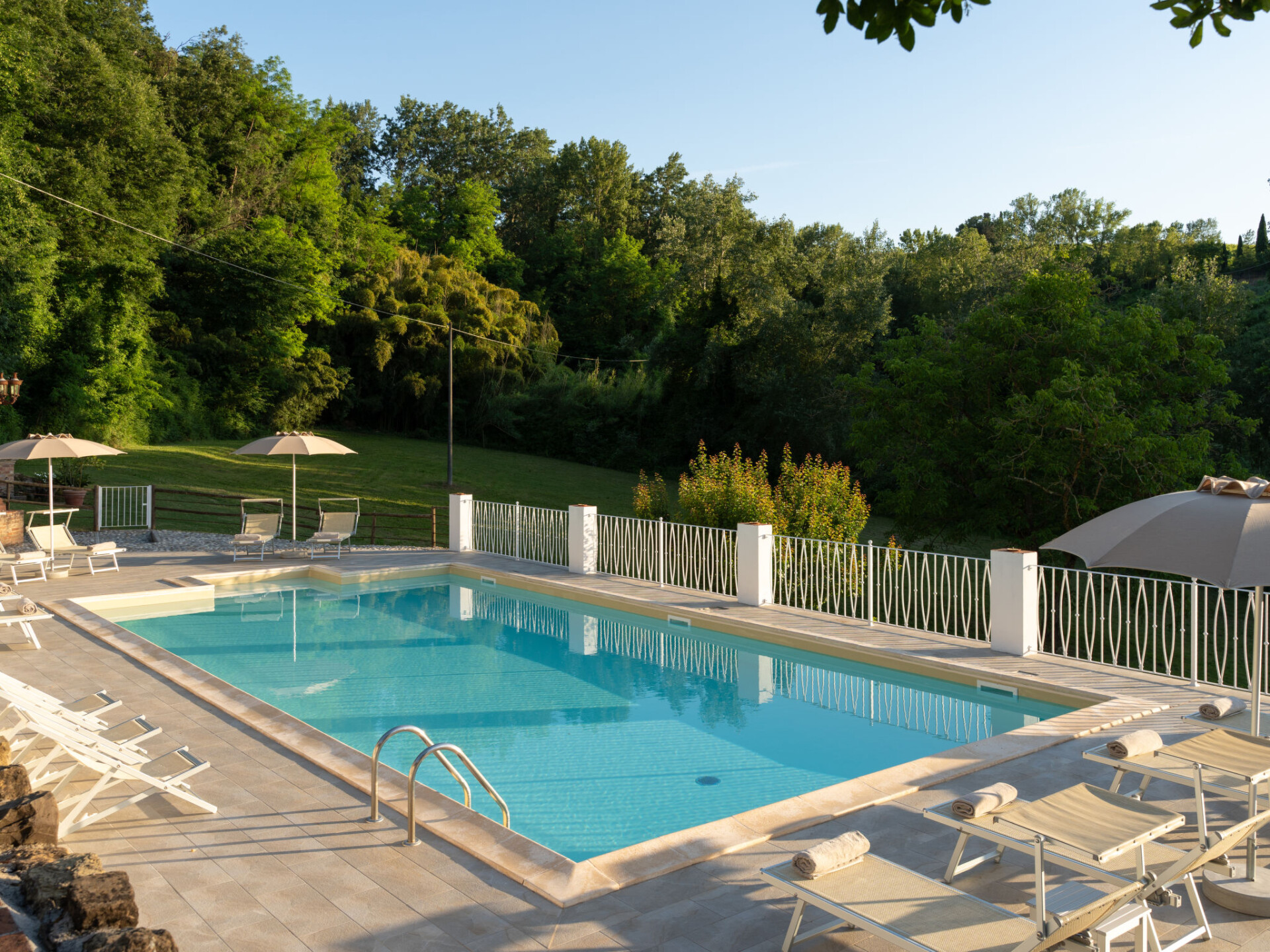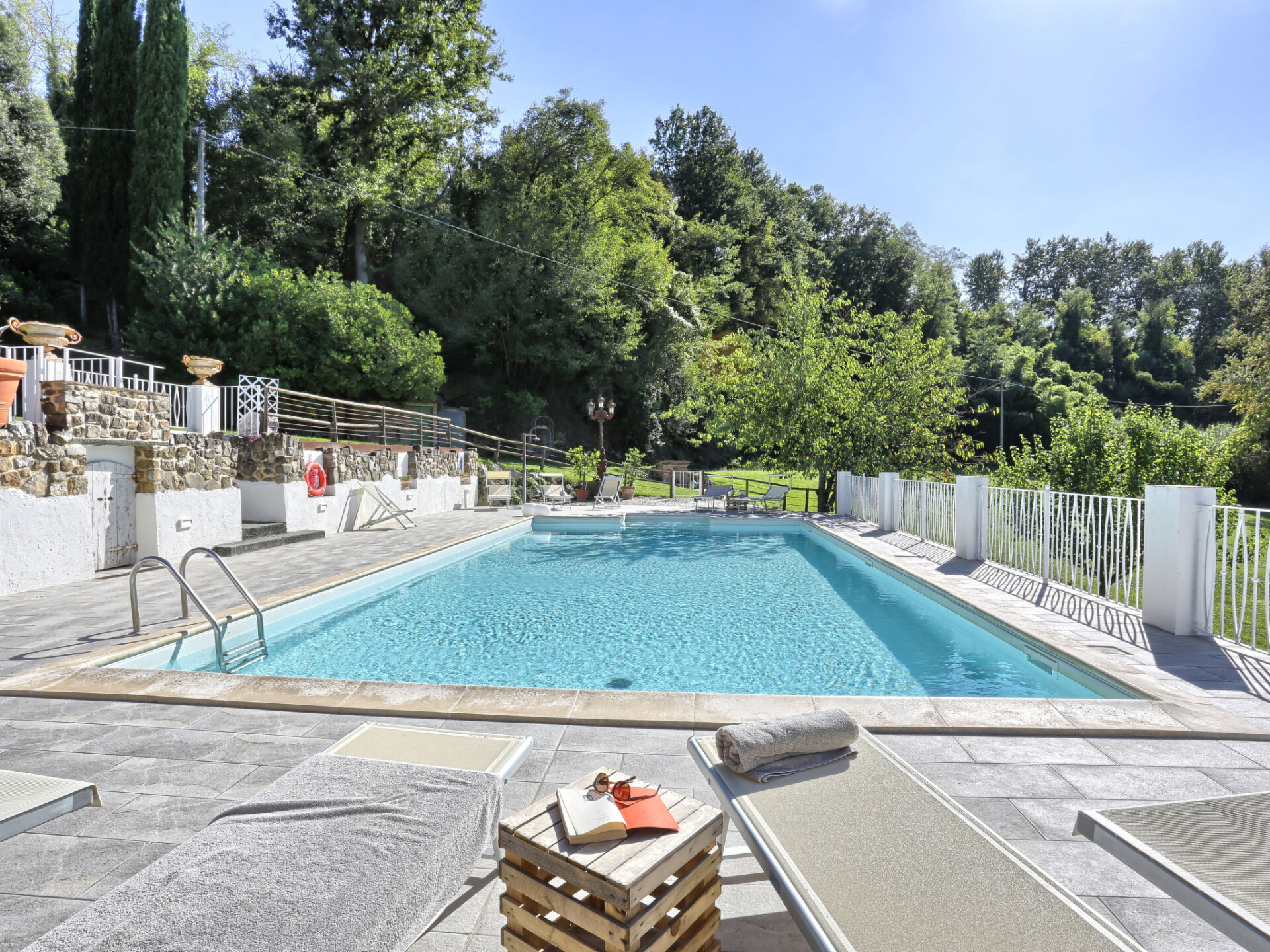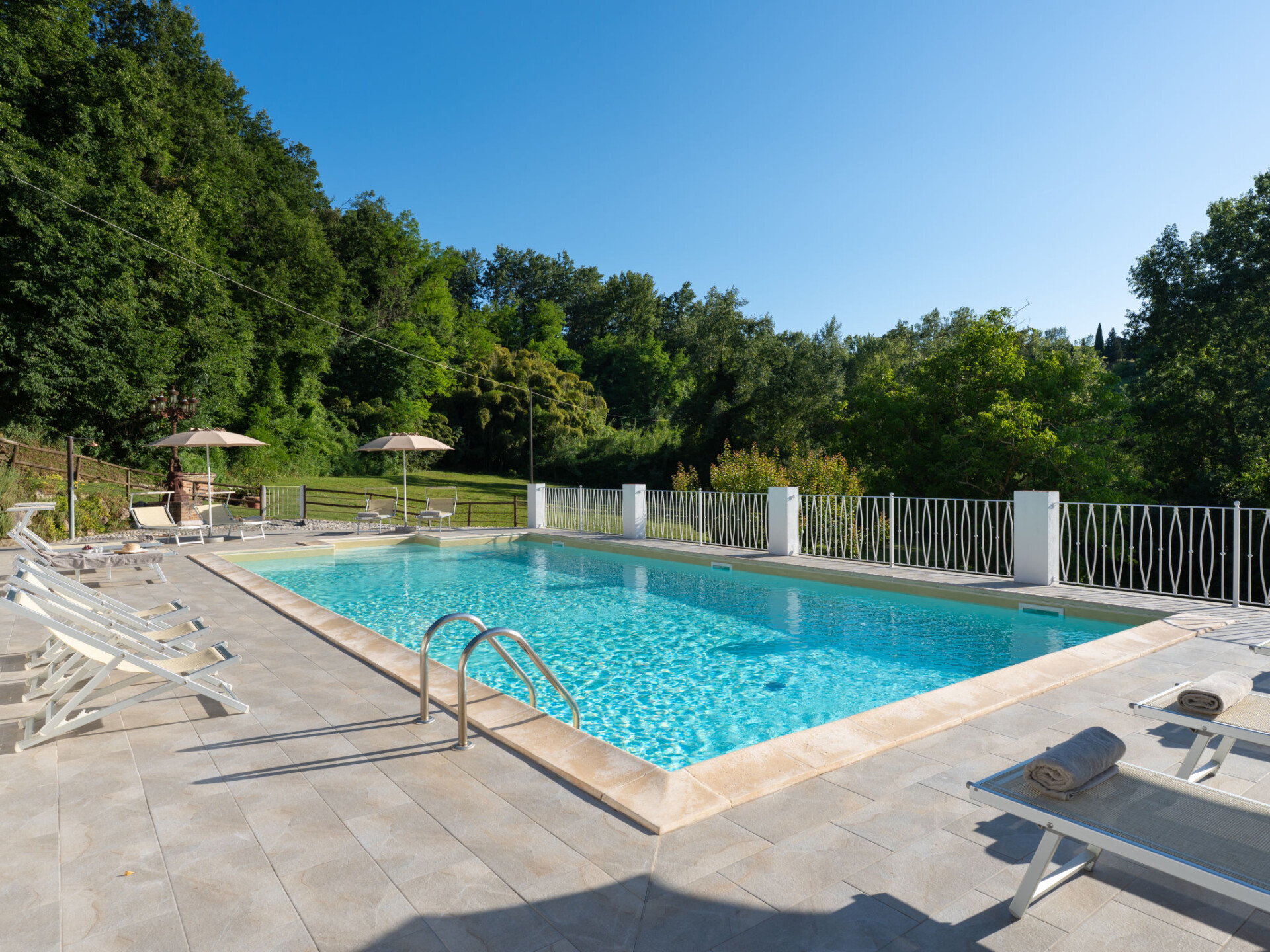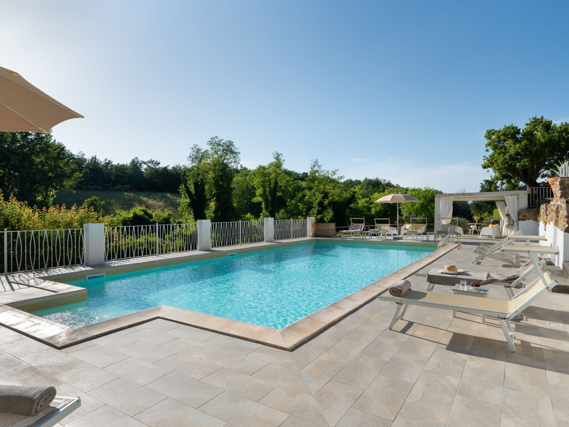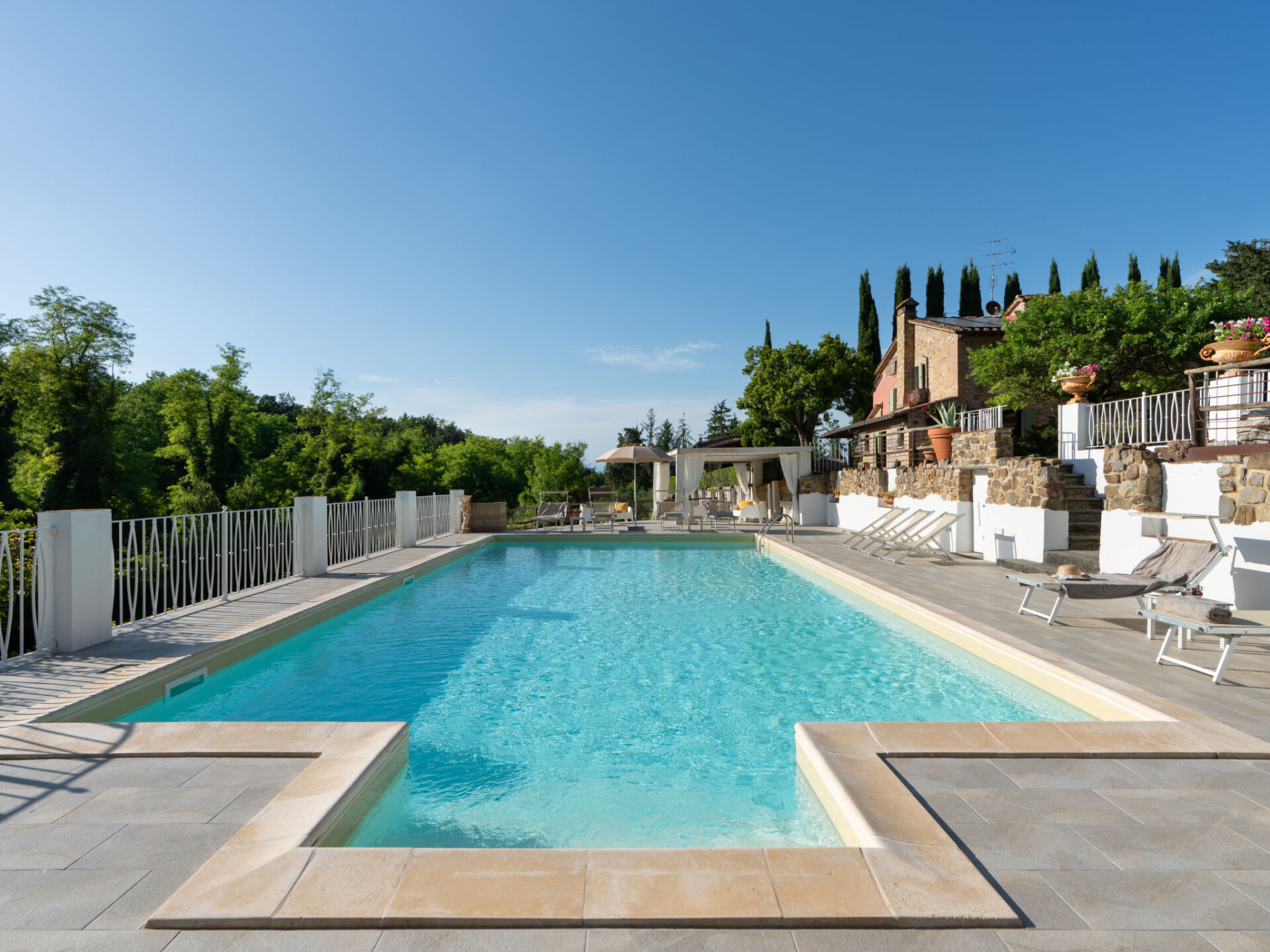 Zeer mooi, comfortabele villa "Fonte di Pillo", omgeven door velden en wijngaarden. Huurobject bestaande uit hoofd-/ bijgebouw, 4 km van het centrum van Gambassi Terme, 4 km van het centrum van Castelfiorentino, 20 km van het centrum van San Gimignano, rustige ligging. Voor alleengebruik: terrein 60.000 m2, verzorgde tuin (niet omheind) met gazon en bomen, openluchtzwembad (12 x 6 m, 150 cm diepte, seizoensgebonden beschikbaarheid: 01.Mei. - 18.Okt.). Buitendouche, terras, tuinmeubelen, barbecue, onderhoud zwembad door de eigenaar/tuinman. In het huis: air-conditioning, alarmsysteem. 200 m lange toegangsweg (onverharde weg). Overdekte parkeerplaats op het terrein. Oplaadstation. Supermarkt 4 km, bushalte 300 m, treinstation "Castelfiorentino" 6 km. Golfterrein (18 holes) 15 km. Attracties in de buurt: Volterra 30 km, Firenze 40 km, Pisa 60 km, Livorno 70 km. Baby uitrusting (incl.). Groepen jongeren uitsluitend op aanvraag.
