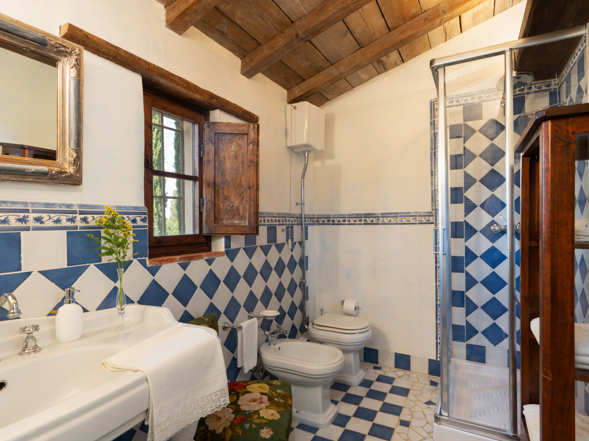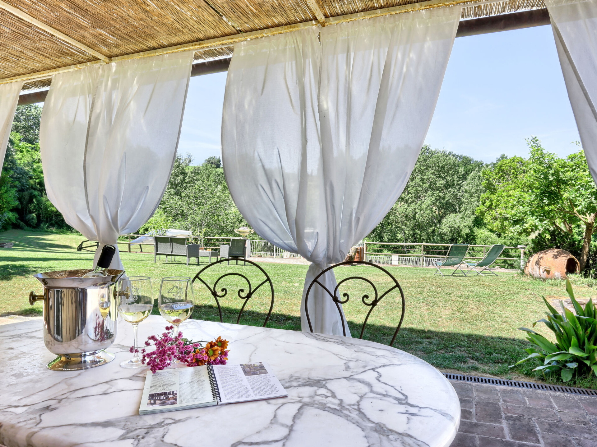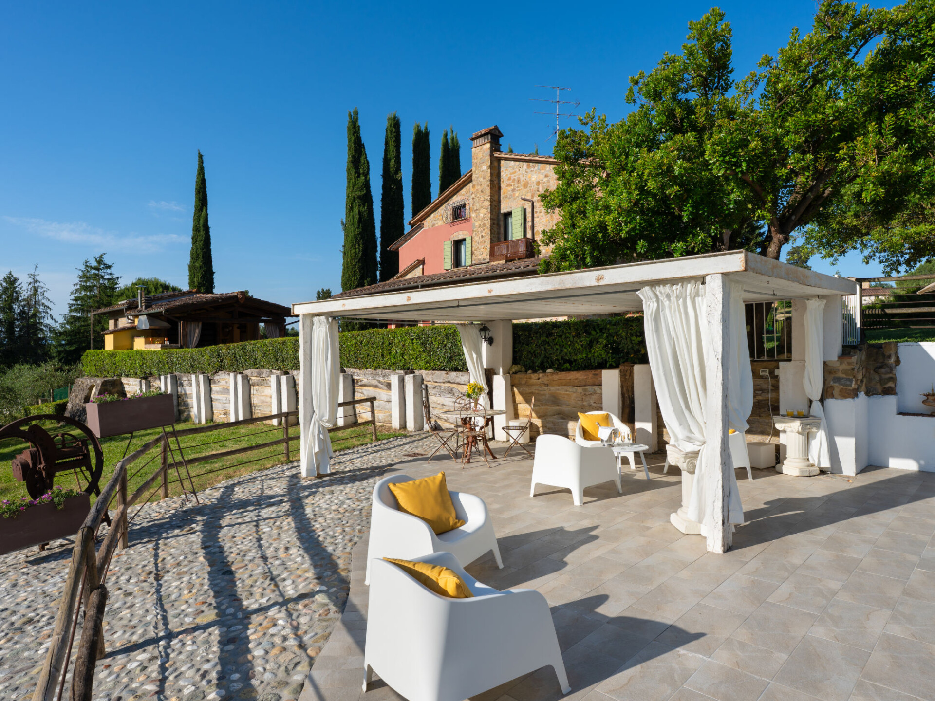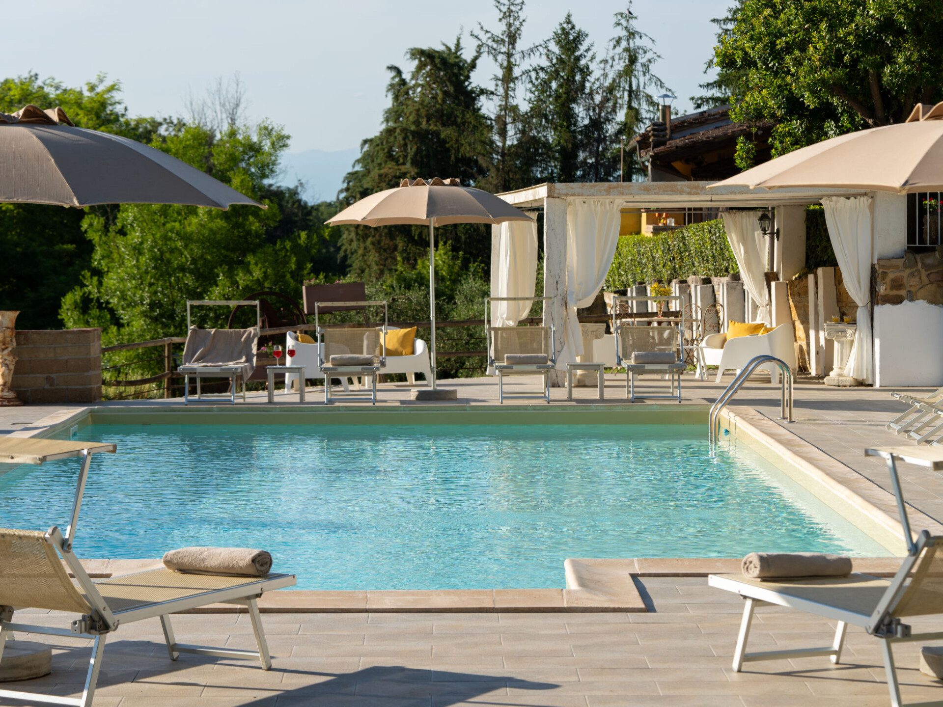 Zeer mooi, comfortabele villa "Fonte di Pillo", omgeven door velden en wijngaarden. Huurobject bestaande uit hoofd-/ bijgebouw, 4 km van het centrum van Gambassi Terme, 4 km van het centrum van Castelfiorentino, 20 km van het centrum van San Gimignano, rustige ligging. Voor alleengebruik: terrein 60.000 m2, verzorgde tuin (niet omheind) met gazon en bomen, openluchtzwembad (12 x 6 m, 150 cm diepte, seizoensgebonden beschikbaarheid: 01.Mei. - 18.Okt.). Buitendouche, terras, tuinmeubelen, barbecue, onderhoud zwembad door de eigenaar/tuinman. In het huis: air-conditioning, alarmsysteem. 200 m lange toegangsweg (onverharde weg). Overdekte parkeerplaats op het terrein. Oplaadstation. Supermarkt 4 km, bushalte 300 m, treinstation "Castelfiorentino" 6 km. Golfterrein (18 holes) 15 km. Attracties in de buurt: Volterra 30 km, Firenze 40 km, Pisa 60 km, Livorno 70 km. Baby uitrusting (incl.). Groepen jongeren uitsluitend op aanvraag.