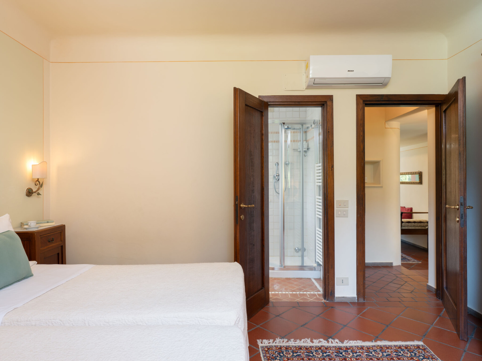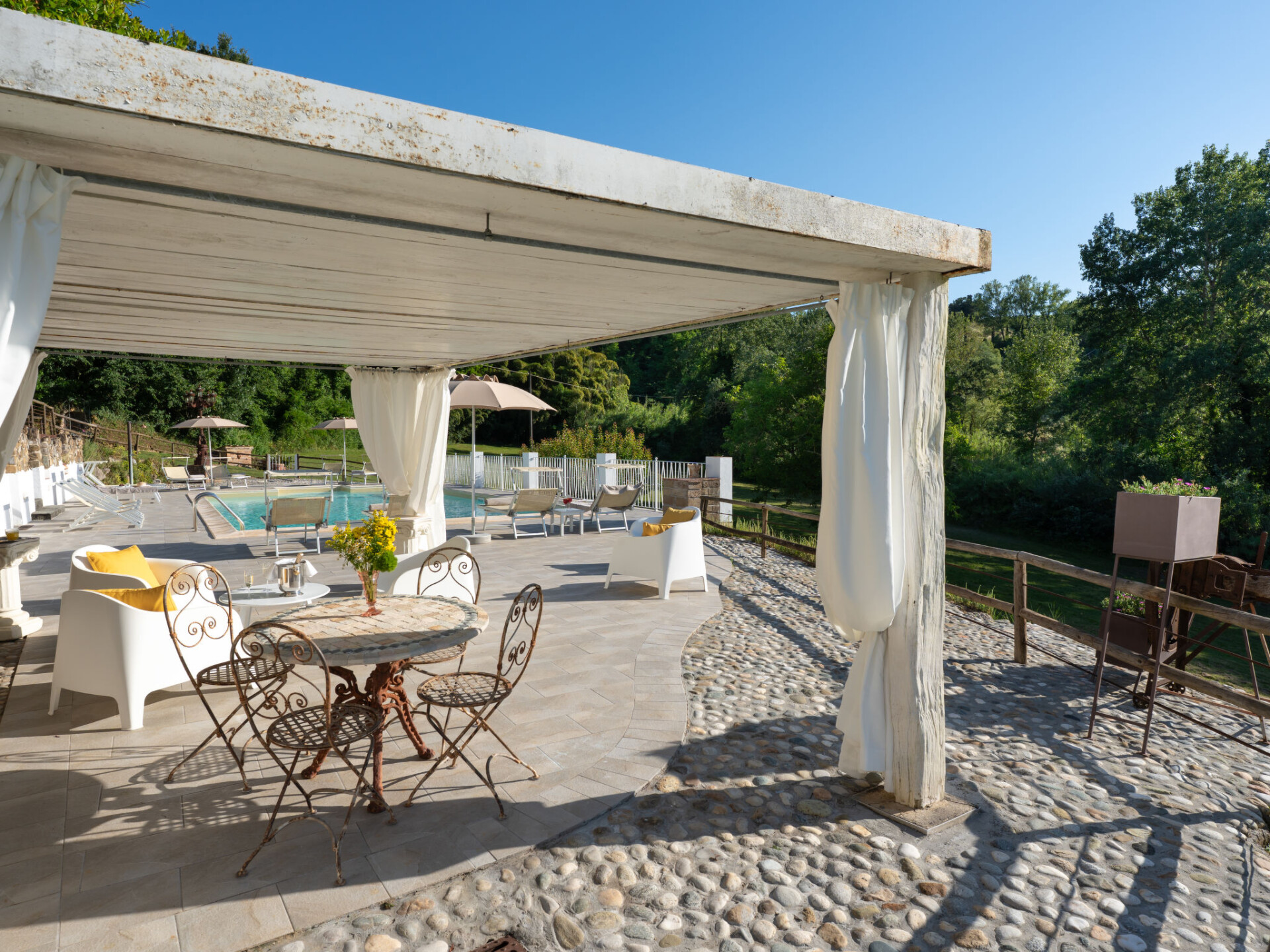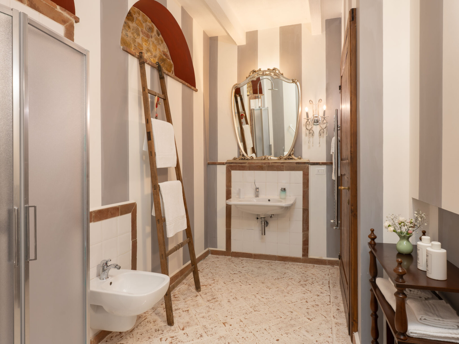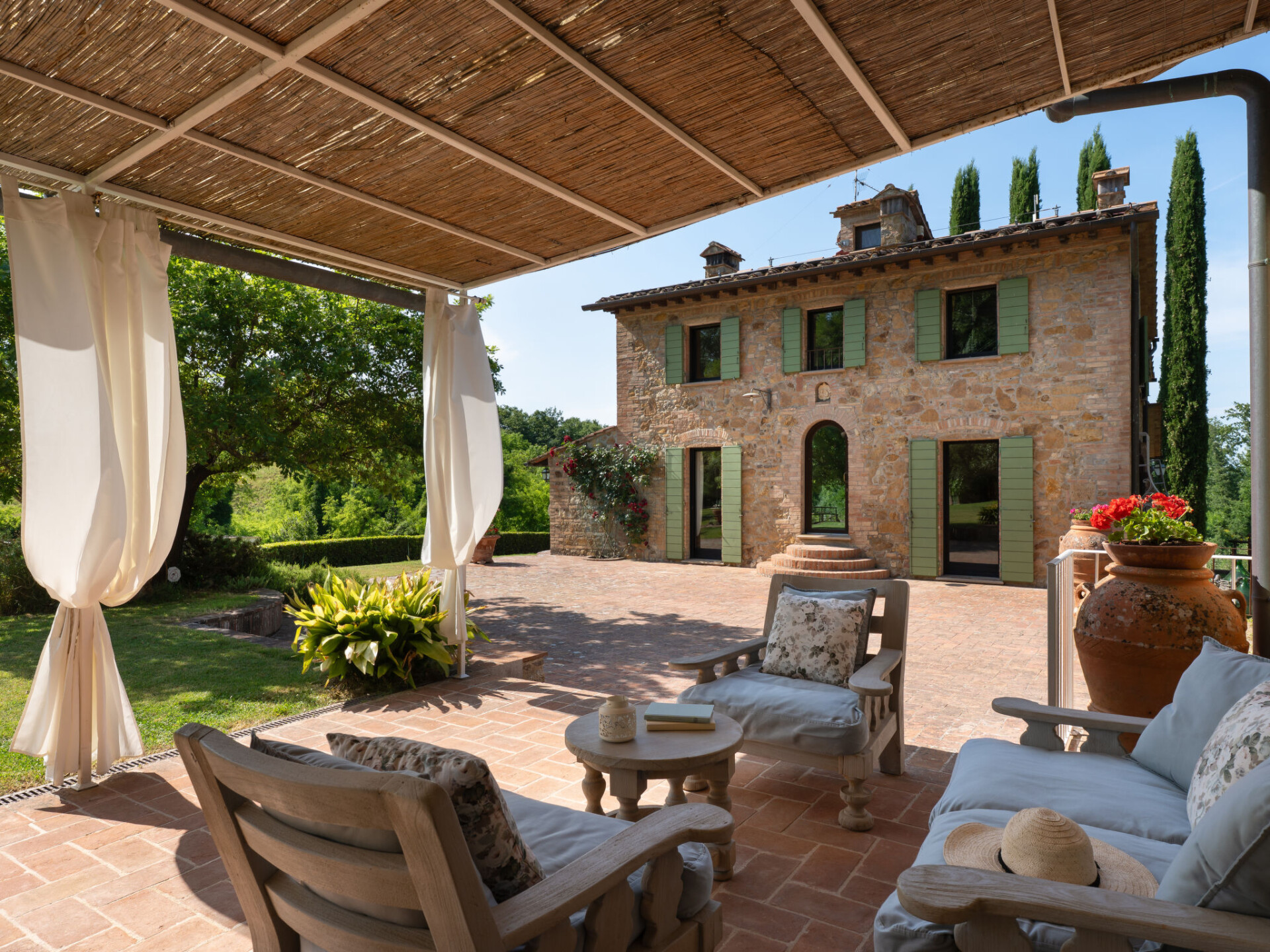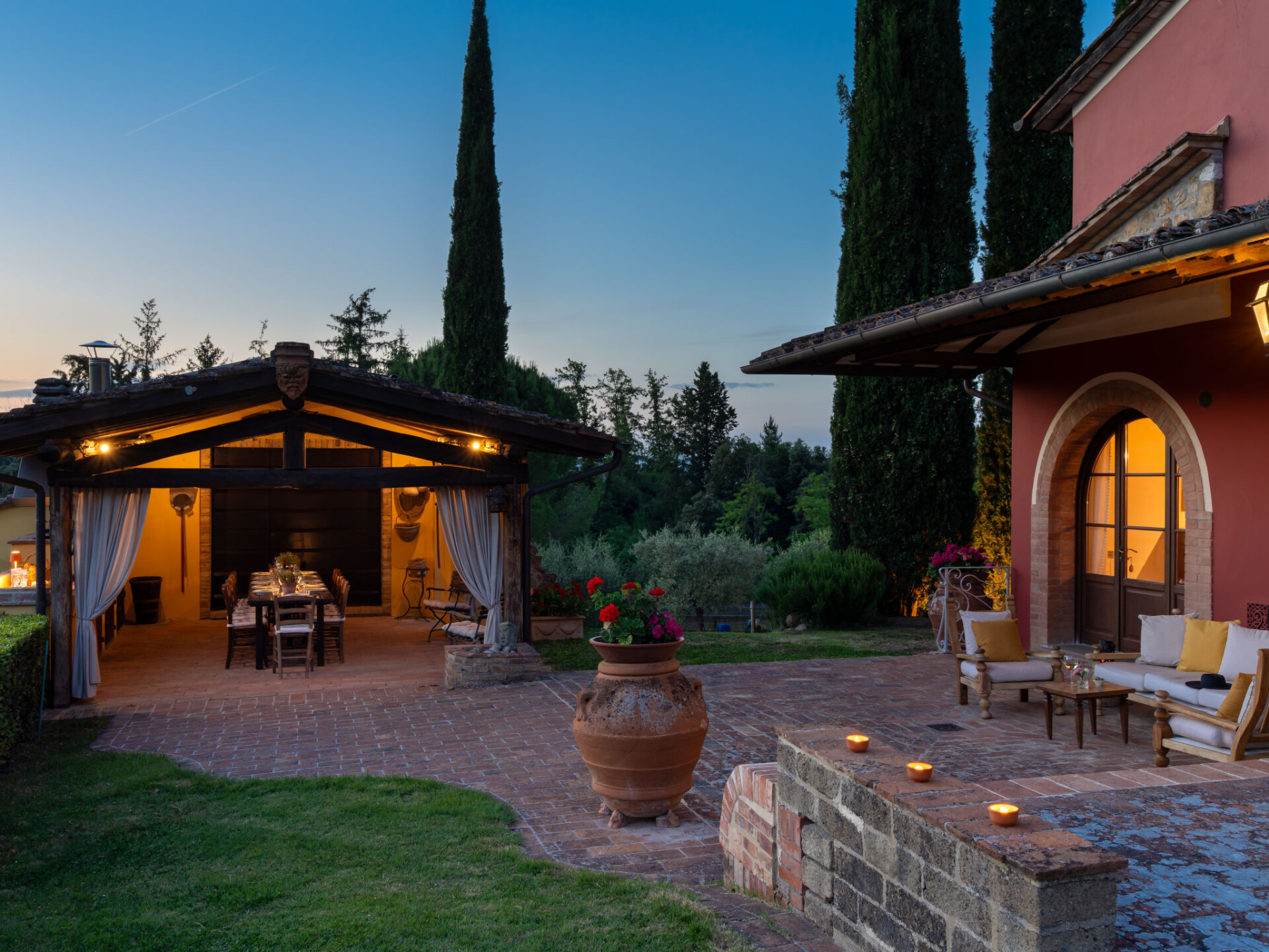Zeer mooi, comfortabele villa "Fonte di Pillo", omgeven door velden en wijngaarden. Huurobject bestaande uit hoofd-/ bijgebouw, 4 km van het centrum van Gambassi Terme, 4 km van het centrum van Castelfiorentino, 20 km van het centrum van San Gimignano, rustige ligging. Voor alleengebruik: terrein 60.000 m2, verzorgde tuin (niet omheind) met gazon en bomen, openluchtzwembad (12 x 6 m, 150 cm diepte, seizoensgebonden beschikbaarheid: 01.Mei. - 18.Okt.). Buitendouche, terras, tuinmeubelen, barbecue, onderhoud zwembad door de eigenaar/tuinman. In het huis: air-conditioning, alarmsysteem. 200 m lange toegangsweg (onverharde weg). Overdekte parkeerplaats op het terrein. Oplaadstation. Supermarkt 4 km, bushalte 300 m, treinstation "Castelfiorentino" 6 km. Golfterrein (18 holes) 15 km. Attracties in de buurt: Volterra 30 km, Firenze 40 km, Pisa 60 km, Livorno 70 km. Baby uitrusting (incl.). Groepen jongeren uitsluitend op aanvraag.