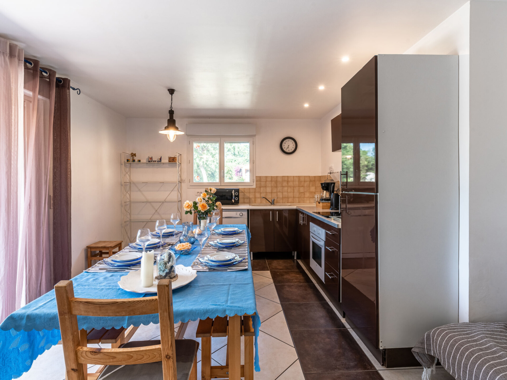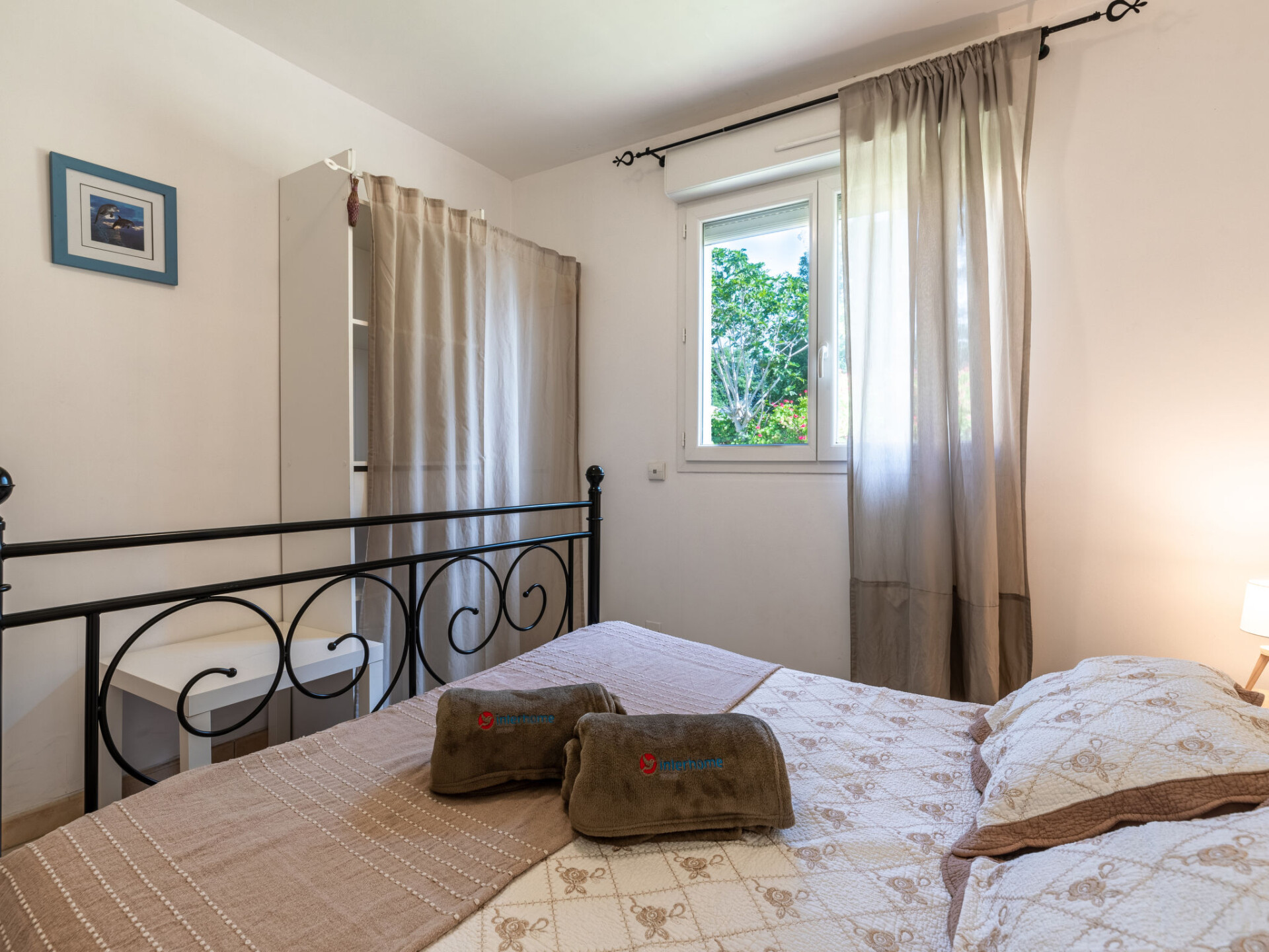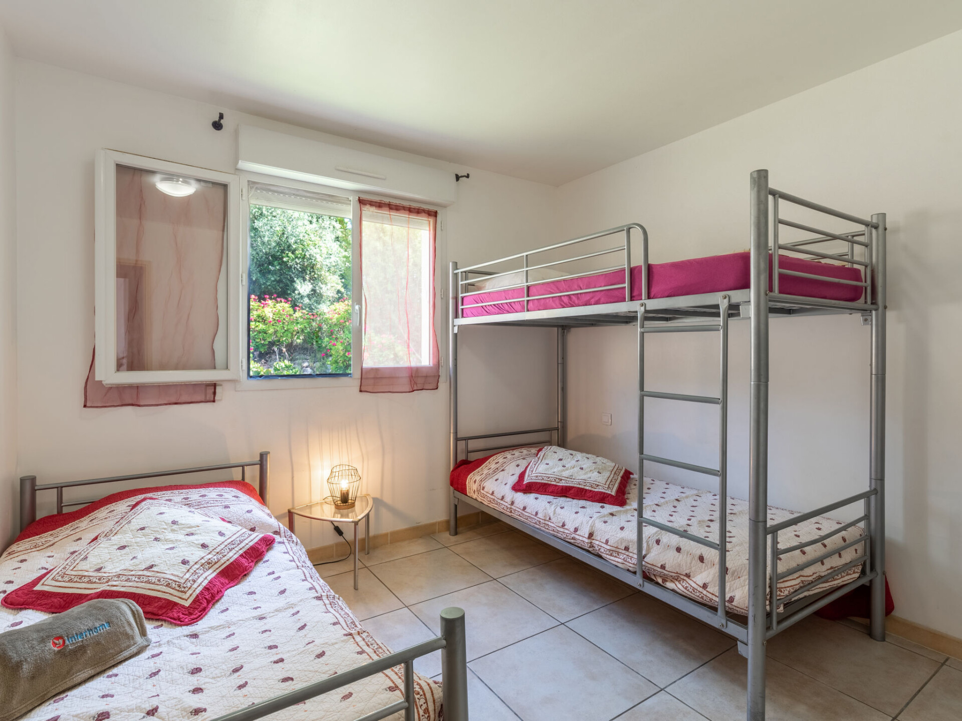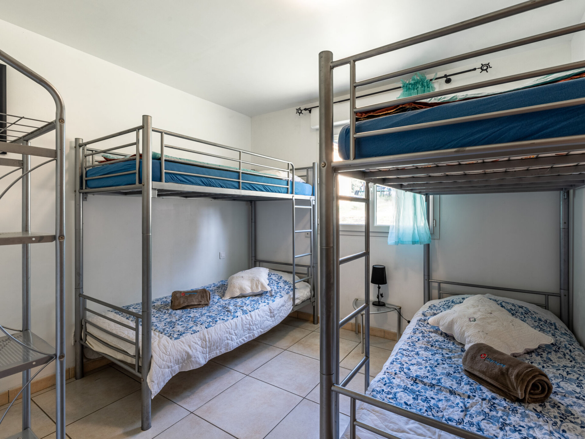 "Gelormini", huis in een rij 4-kamers 100 m2. Doelmatig en mooi ingericht: woon-/eetkamer met eettafel en Sat-TV. Uitgang naar het terras. 1 kamer met 1 2-pers bed (160 cm), douche. 1 kamer met 1 2-pers bed. 1 kamer met 1 x 2 stapelbedden, 1 slaapplaats. Open keuken (4-pits kookplaat, oven, afwasmachine, broodrooster, waterkoker, magnetron, elektrische koffiemachine). Bad/WC, aparte WC. Elektrische verwarming, air-conditioning. Terras overdekt. Terrasmeubelen, barbecue. Uitzicht op het zwembad en de tuin. Ter beschikking: wasmachine, kinderstoel. Internet (Internet (WiFi), gratis). Niet rokers woning.