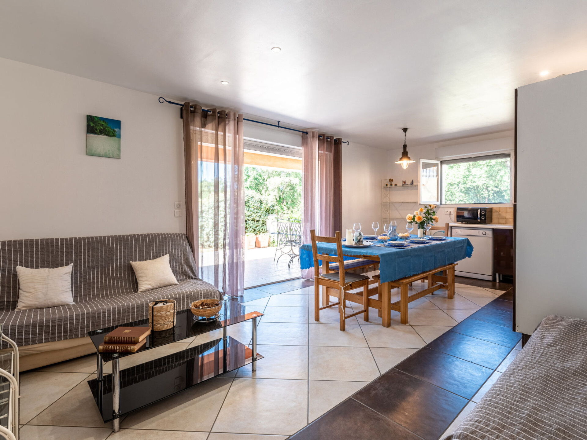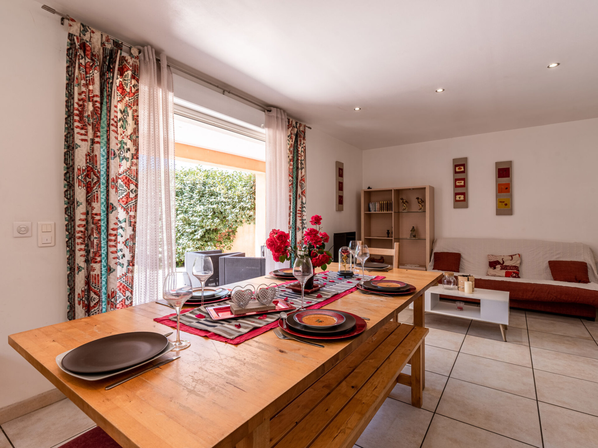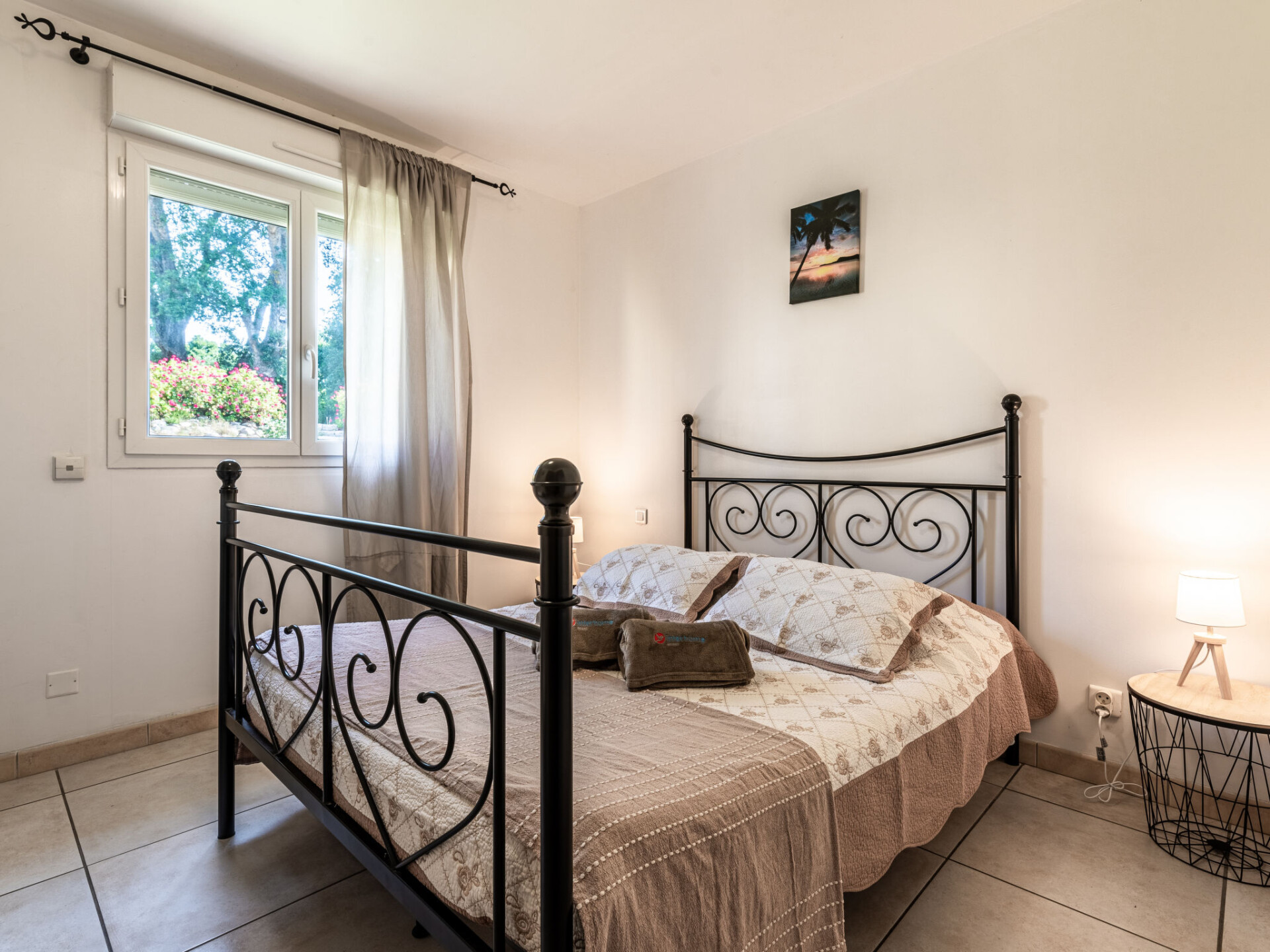 "Gelormini", huis in een rij 4-kamers 100 m2. Doelmatig en mooi ingericht: woon-/eetkamer met eettafel en Sat-TV. Uitgang naar het terras. 1 kamer met 1 2-pers bed (160 cm), douche. 1 kamer met 1 2-pers bed. 1 kamer met 1 x 2 stapelbedden, 1 slaapplaats. Open keuken (4-pits kookplaat, oven, afwasmachine, broodrooster, waterkoker, magnetron, elektrische koffiemachine). Bad/WC, aparte WC. Elektrische verwarming, air-conditioning. Terras overdekt. Terrasmeubelen, barbecue. Uitzicht op het zwembad en de tuin. Ter beschikking: wasmachine, kinderstoel. Internet (Internet (WiFi), gratis). Niet rokers woning.
