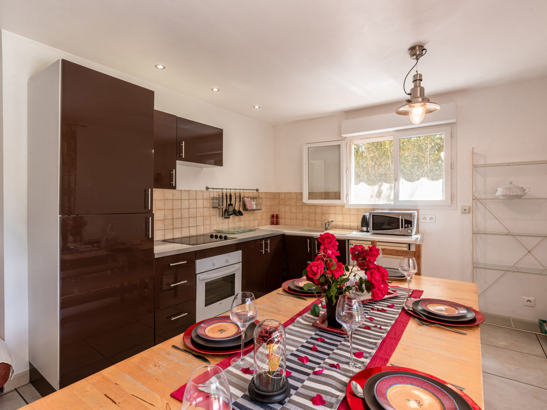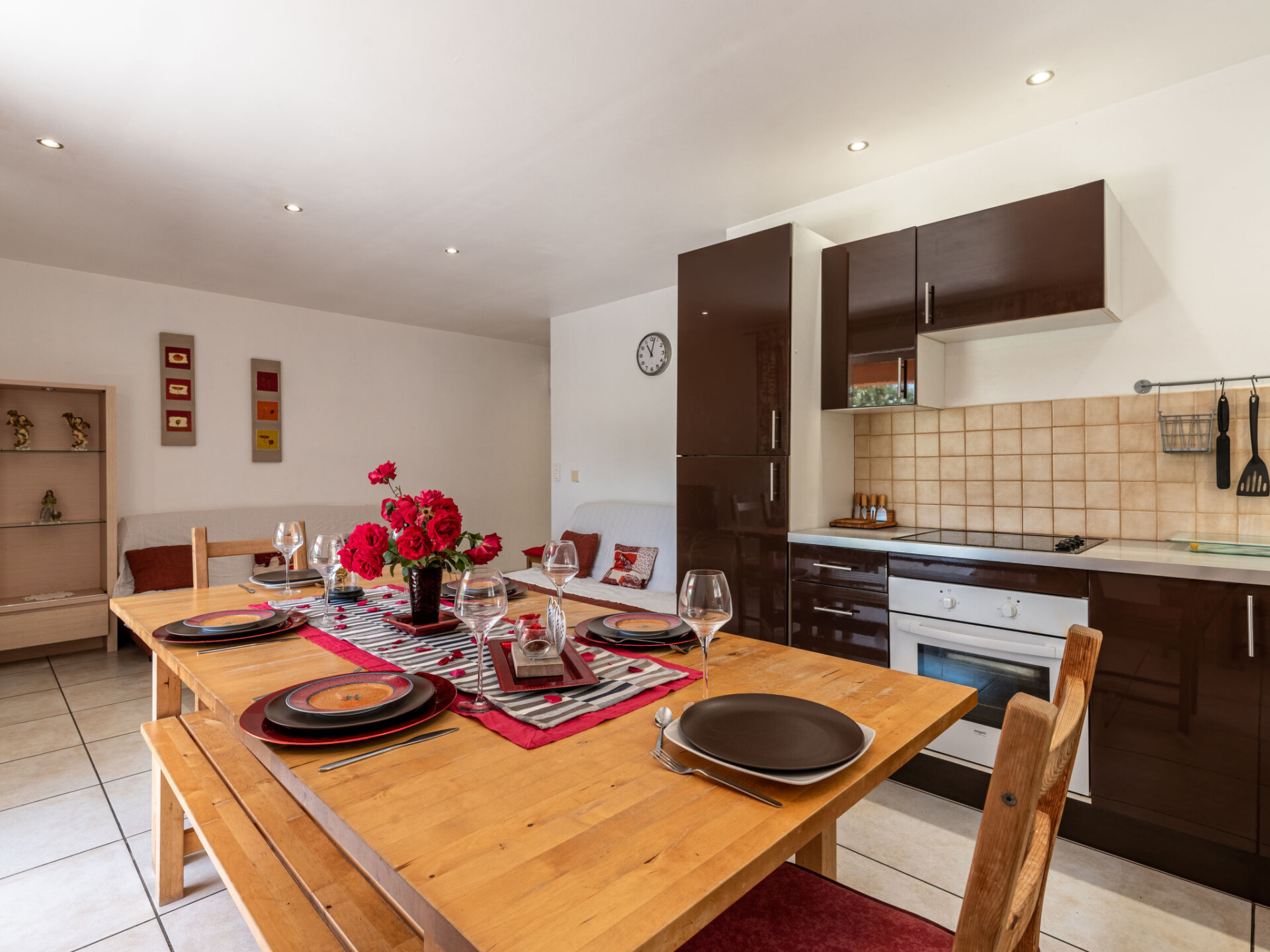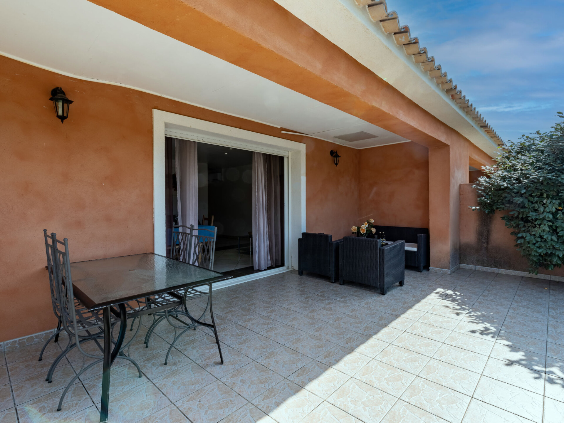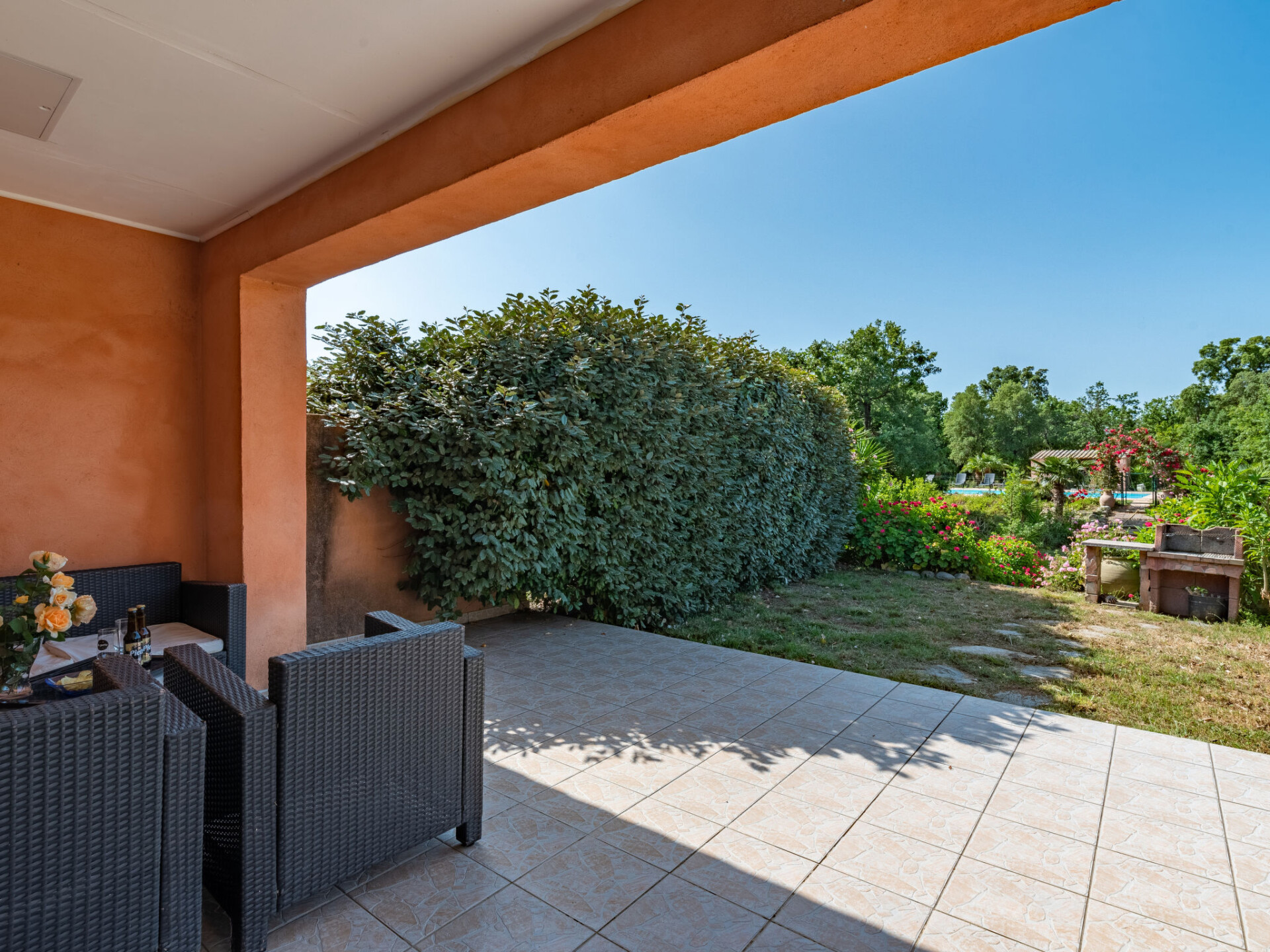 "Gelormini", huis in een rij 4-kamers 100 m2. Doelmatig en mooi ingericht: woon-/eetkamer met eettafel en Sat-TV. Uitgang naar het terras. 1 kamer met 1 2-pers bed (160 cm), douche. 1 kamer met 1 2-pers bed. 1 kamer met 1 x 2 stapelbedden, 1 slaapplaats. Open keuken (4-pits kookplaat, oven, afwasmachine, broodrooster, waterkoker, magnetron, elektrische koffiemachine). Bad/WC, aparte WC. Elektrische verwarming, air-conditioning. Terras overdekt. Terrasmeubelen, barbecue. Uitzicht op het zwembad en de tuin. Ter beschikking: wasmachine, kinderstoel. Internet (Internet (WiFi), gratis). Niet rokers woning.