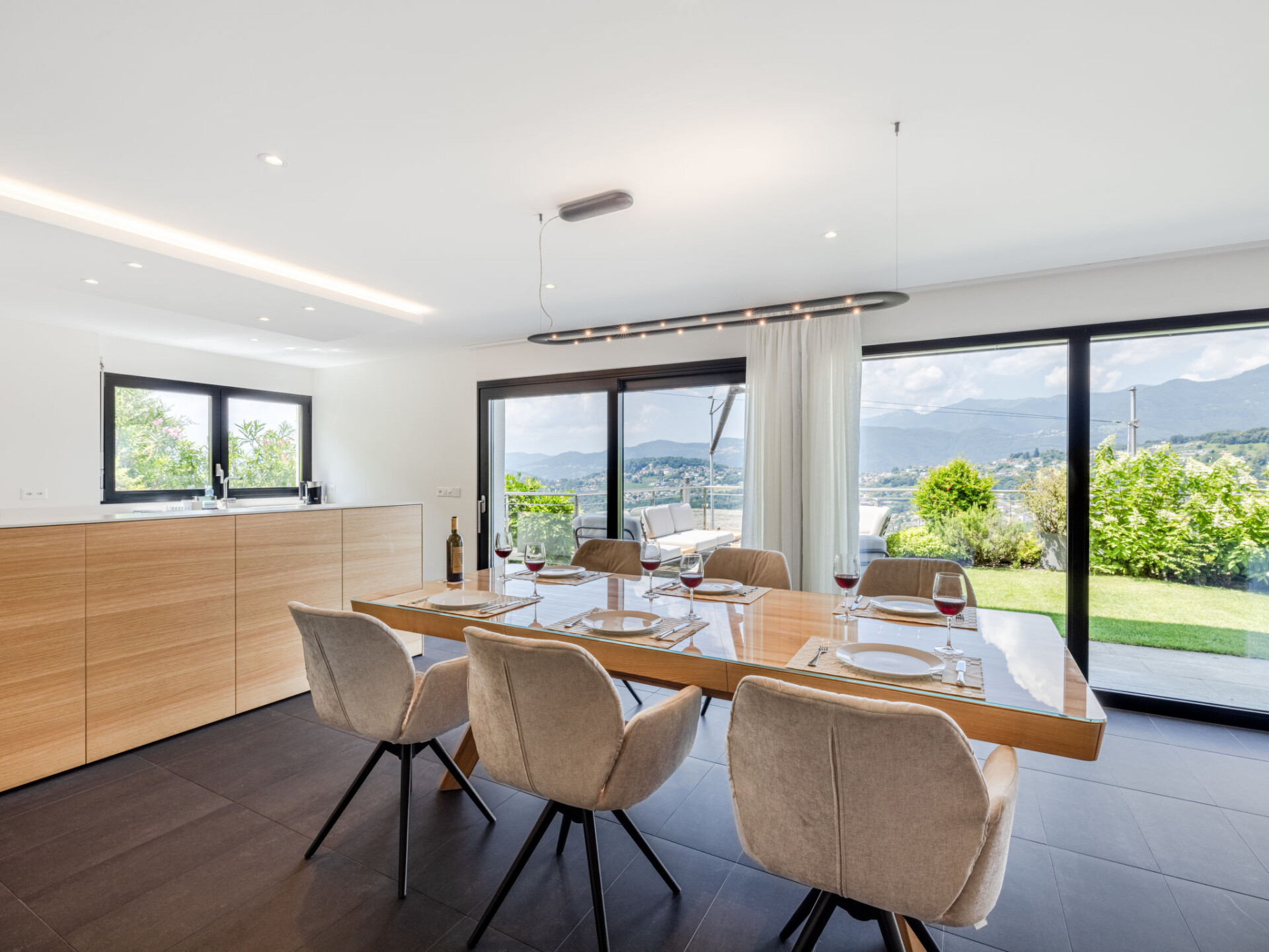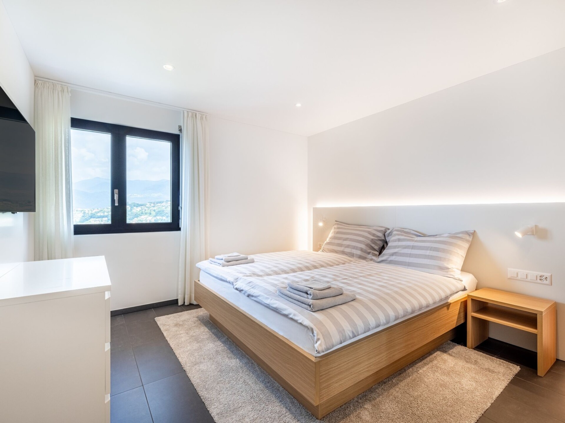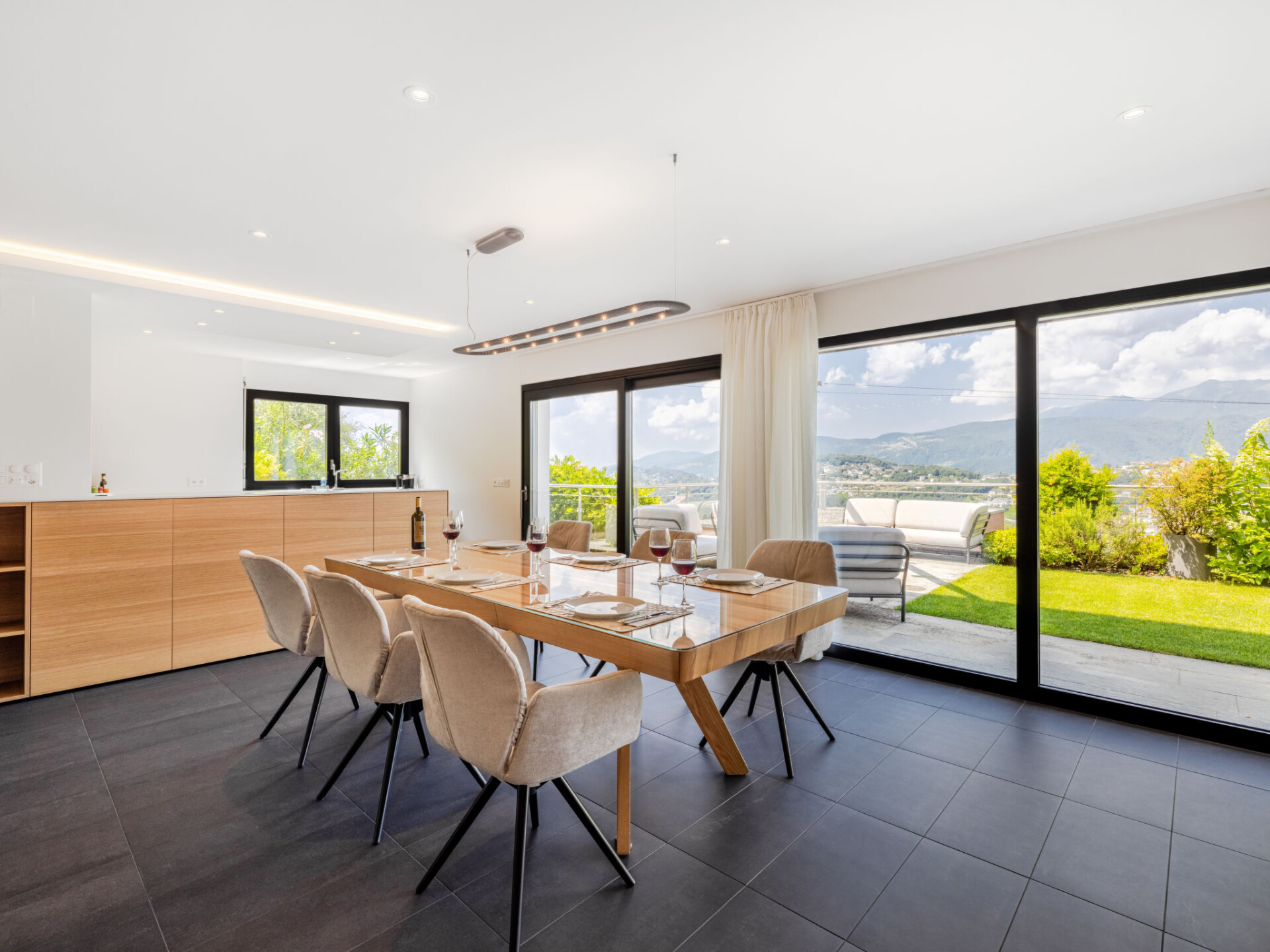 Villa 4-kamers op 2 verdiepingen, op het zuidwesten gelegen. Ruim en licht, gedeeltelijk gerenoveerd in 2022, comfortabel en modern ingericht: groot woon-/eetkamer met eettafel, Kabel-TV, internationale TV-zenders, Flatscreen TV, radio en stereo-installatie. Uitgang naar het terras, naar de zitplaats in de tuin. Open keuken (oven, afwasmachine, 5 inductiekookplaten, broodrooster, waterkoker, magnetron, elektrische koffiemachine, pads voor de koffiemachine (Nespresso) extra, steamer). Aparte WC. Vloerverwarming. Bovenverdieping: 1 2-pers. kamer met 1 2-pers bed (2 x 90 cm, lengte 200 cm), douche/WC. 1 2-pers. kamer met 1 2-pers bed (2 x 90 cm, lengte 200 cm). 1 2-pers. kamer met 1 2-pers bed (2 x 90 cm, lengte 200 cm), Kabel-TV en internationale TV-zenders (Flatscreen TV). Douche/WC. Groot terras. Terrasmeubelen, ligstoelen (4), zitgelegenheid. Mooi panoramazicht op de bergen, het landschap en de plaats. Ter beschikking: kinderstoel, kinderbed tot 2 jaar, haardroger. Rookvrij huis. Brandblusser. NL-00007199