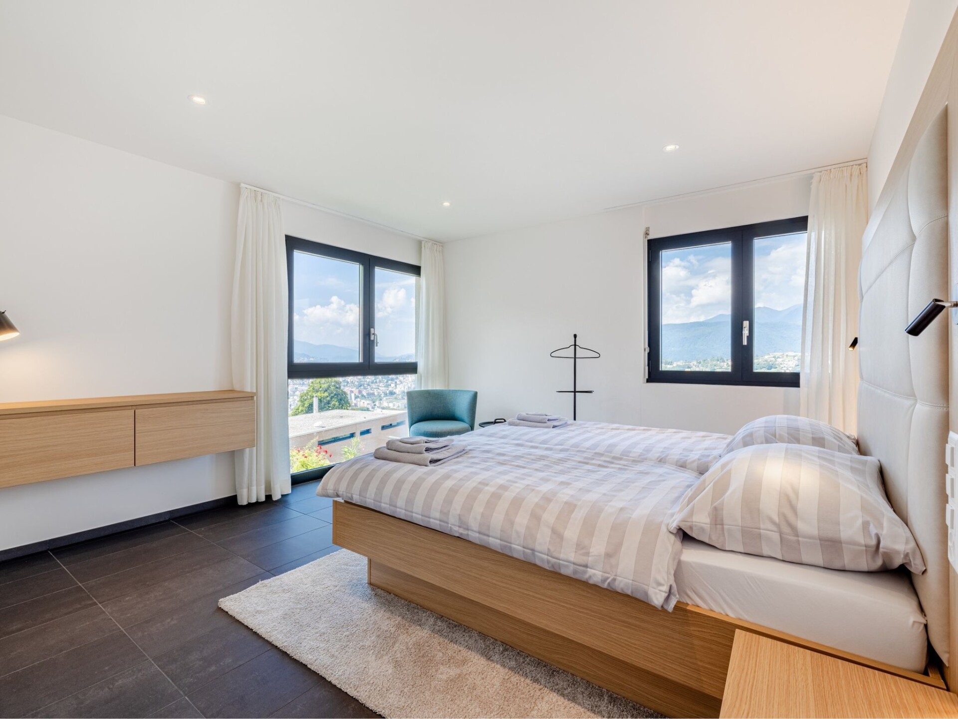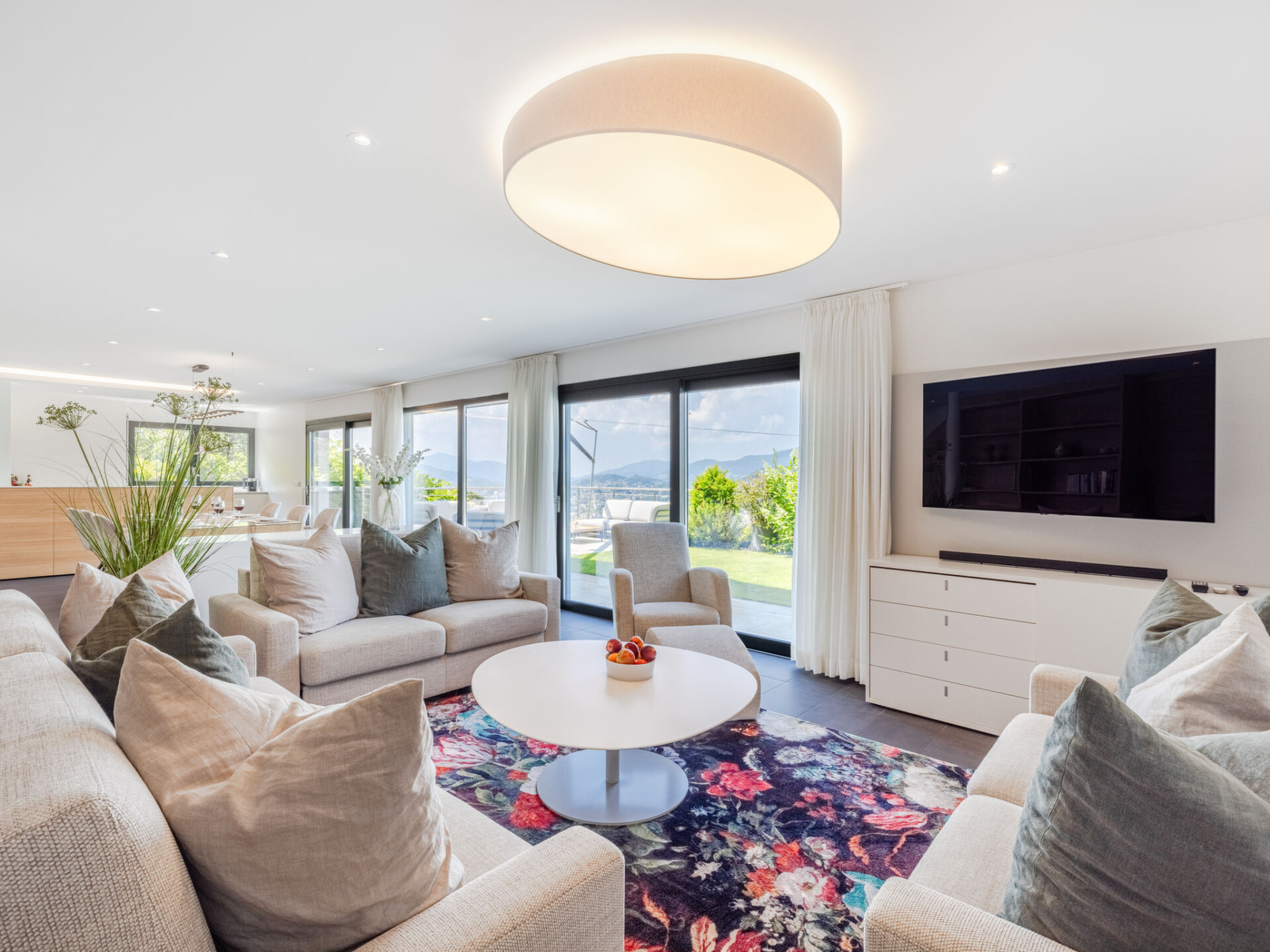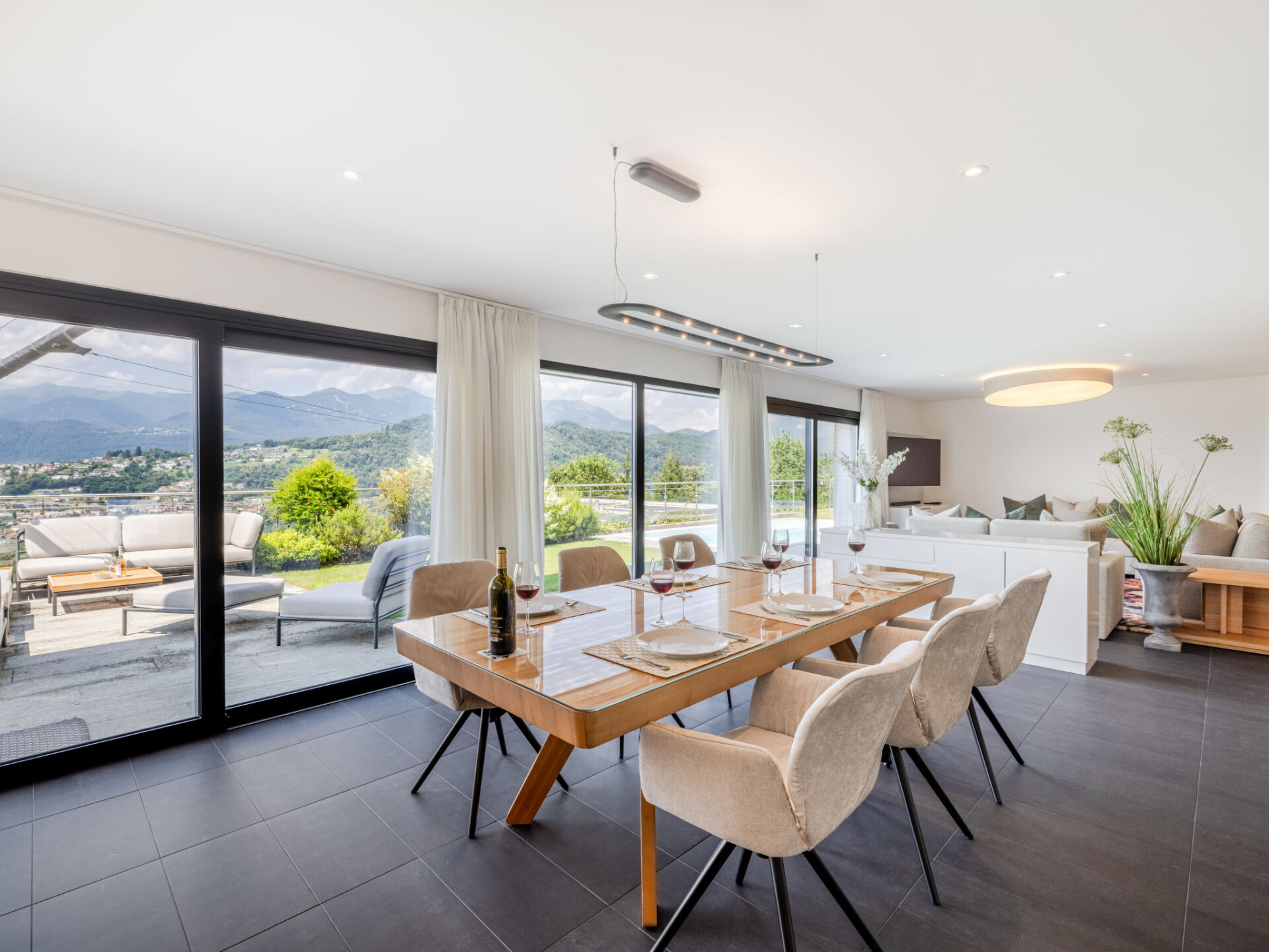 Villa 4-kamers op 2 verdiepingen, op het zuidwesten gelegen. Ruim en licht, gedeeltelijk gerenoveerd in 2022, comfortabel en modern ingericht: groot woon-/eetkamer met eettafel, Kabel-TV, internationale TV-zenders, Flatscreen TV, radio en stereo-installatie. Uitgang naar het terras, naar de zitplaats in de tuin. Open keuken (oven, afwasmachine, 5 inductiekookplaten, broodrooster, waterkoker, magnetron, elektrische koffiemachine, pads voor de koffiemachine (Nespresso) extra, steamer). Aparte WC. Vloerverwarming. Bovenverdieping: 1 2-pers. kamer met 1 2-pers bed (2 x 90 cm, lengte 200 cm), douche/WC. 1 2-pers. kamer met 1 2-pers bed (2 x 90 cm, lengte 200 cm). 1 2-pers. kamer met 1 2-pers bed (2 x 90 cm, lengte 200 cm), Kabel-TV en internationale TV-zenders (Flatscreen TV). Douche/WC. Groot terras. Terrasmeubelen, ligstoelen (4), zitgelegenheid. Mooi panoramazicht op de bergen, het landschap en de plaats. Ter beschikking: kinderstoel, kinderbed tot 2 jaar, haardroger. Rookvrij huis. Brandblusser. NL-00007199