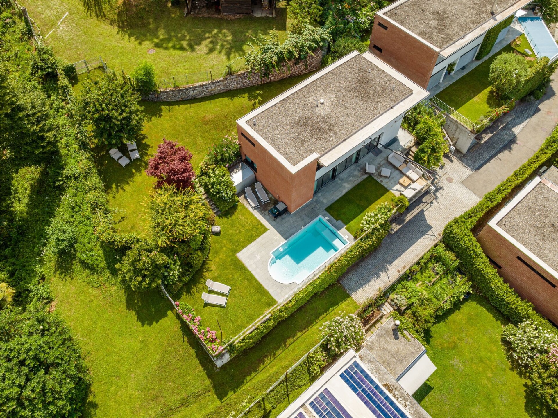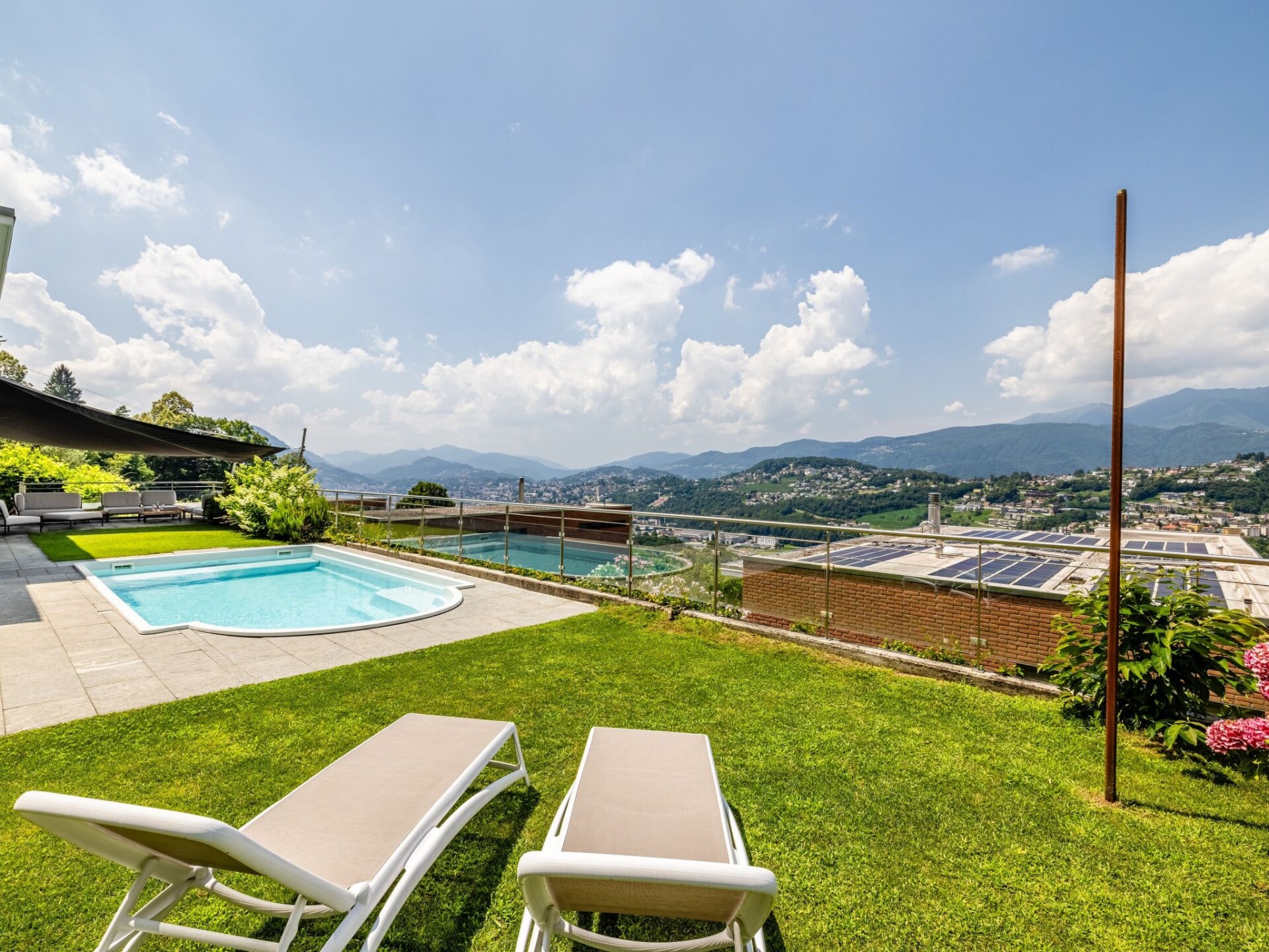 Davesco-Soragno 5 km van Lugano: Kindvriendelijke eengezinswoning "Villa Girandola", van 2 verdiepingen, omgeven door bomen en weiden. Aan de rand van de plaats, rustige, zonnige, verhoogde ligging villa wijk, 30 m van de bosrand, aan een doodlopende weg, op het westen. Voor alleengebruik: terrein, ligweide, mooie tuin ter ontspanning, openluchtzwembad hoekig, verwarmd (100 - 140 cm diepte, seizoensgebonden beschikbaarheid: 01.Apr. - 30.Sep.) met trap en oprolbaar afdekscherm. Patio, terras, tuinmeubelen, barbecue. In het huis: Internet (WiFi), centrale verwarming, wasmachine, droger. Toegangsweg tot aan het huis. Parkeerplaats (voor 2 auto's) bij het huis. Bushalte "Soragno" 500 m, treinstation "Lugano" 6 km. Attracties in de buurt: Swissminiatur, Melide, Spash and Spa, Rivera, Foxtowm, Medrisio. Bekende skigebieden kunnen gemakkelijk worden bereikt: Airolo, Nara, Campo Blenio. Bekende meren kunnen gemakkelijk worden bereikt: Lago di Lugano, Lago di Como, Lago Maggiore. Auto noodzakelijk. Geschikt voor families.