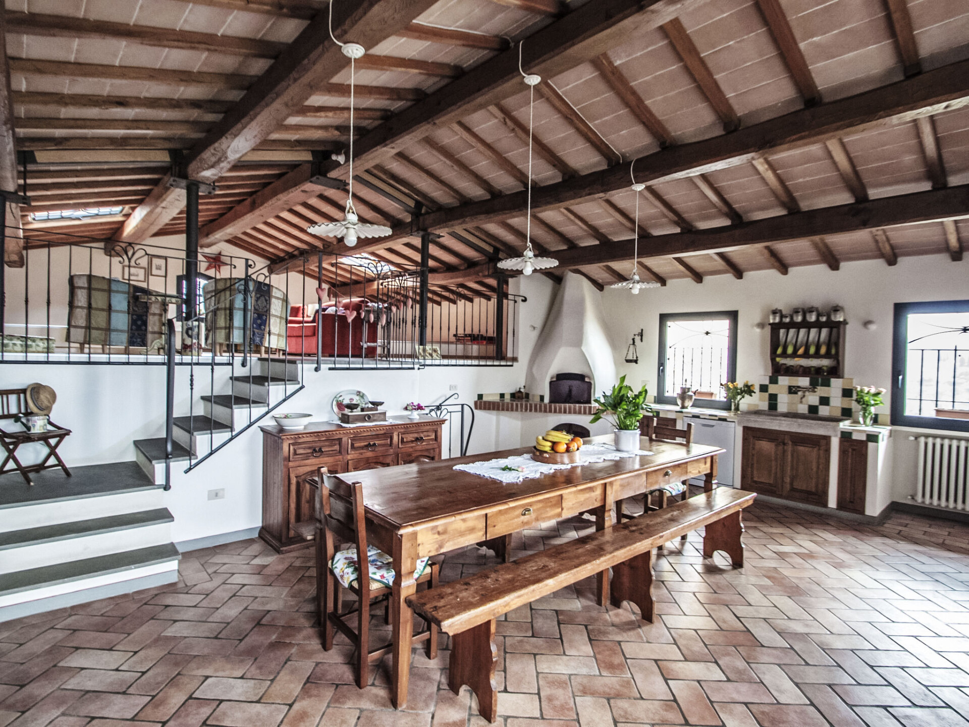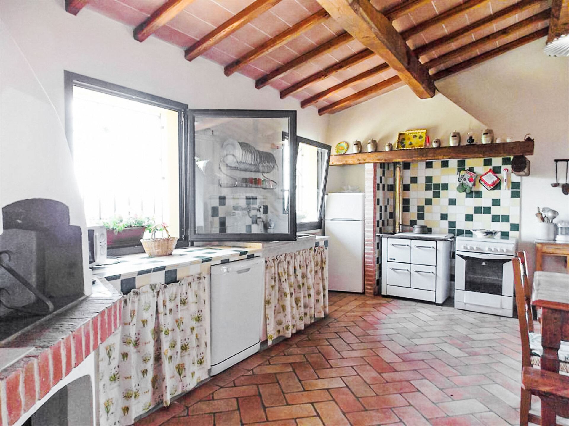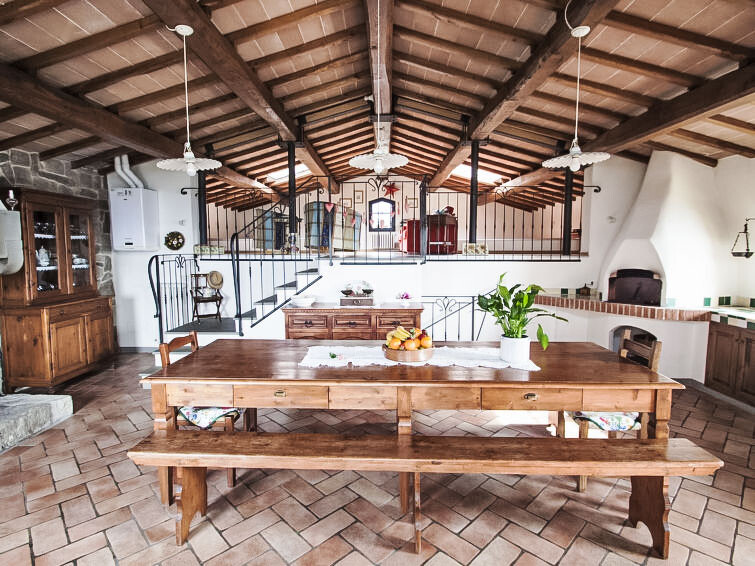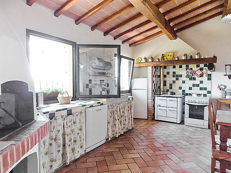Huis 5-kamers 150 m2 op 2 verdiepingen op de 1e verdieping. Comfortabel en smaakvol ingericht: open eetkamer met open haard. 1 2-pers. kamer. 1 2-pers. kamer met douche/bidet/WC. 1 2-pers. kamer. Kookhoek (4-pits kookplaat, oven, afwasmachine, magnetron, diepvriezer). Douche/bidet/WC. Bovenverdieping: woonkamer met afgeschuinde daken met Sat-TV. Terrasmeubelen, barbecue. Panoramazicht op het landschap. Ter beschikking: wasmachine, klamboe, kinderstoel. Internet (Internet (WiFi), gratis). IT048037C2HHXZVQ67