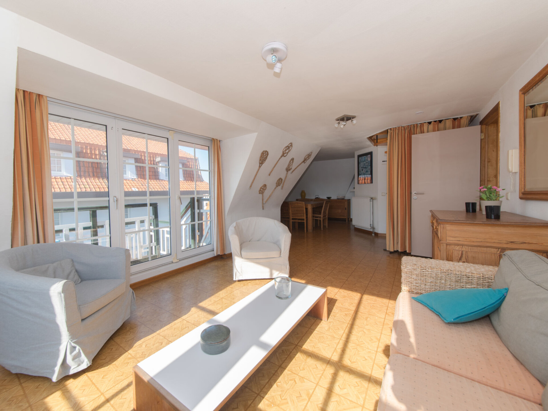 "Jong & Blij 6 with amazing views", appartement 3-kamers op 2 verdiepingen, op de bovenste verdieping. Het objekt is geschikt voor 4 volwassenen + 2 kinderen. Doelmatig en gezellig ingericht: hal met aparte WC. Groot woon-/eetkamer met eettafel, Digitale TV, internationale TV-zenders en Flatscreen TV. Uitgang naar het balkon. 1 2-pers. kamer met 1 2-pers bed (160 cm, lengte 200 cm). Open keuken (4-pits kookplaat, oven, afwasmachine, broodrooster, waterkoker, magnetron, elektrische koffiemachine). Douche, dubbele wastafels. Verwarming. Bovenverdieping: (wenteltrap), 1 groot kamer met afgeschuinde daken met 4 bedden (90 cm, lengte 200 cm). Klein balkon. Mooi uitzicht op het dorp. Ter beschikking: haardroger. Internet (WiFi, gratis). Geschikt voor families. Rookvrij huis. 1 klein huisdier/hond toegestaan. Rookmelders, brandblusser, geen lift. In plaats van een afgesloten slaapkamer bevinden sommige slaapgedeeltes zich in een open ruimte (galerij, nis, etc.). LD212883