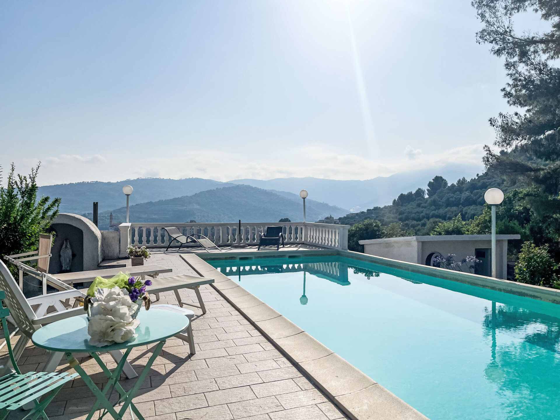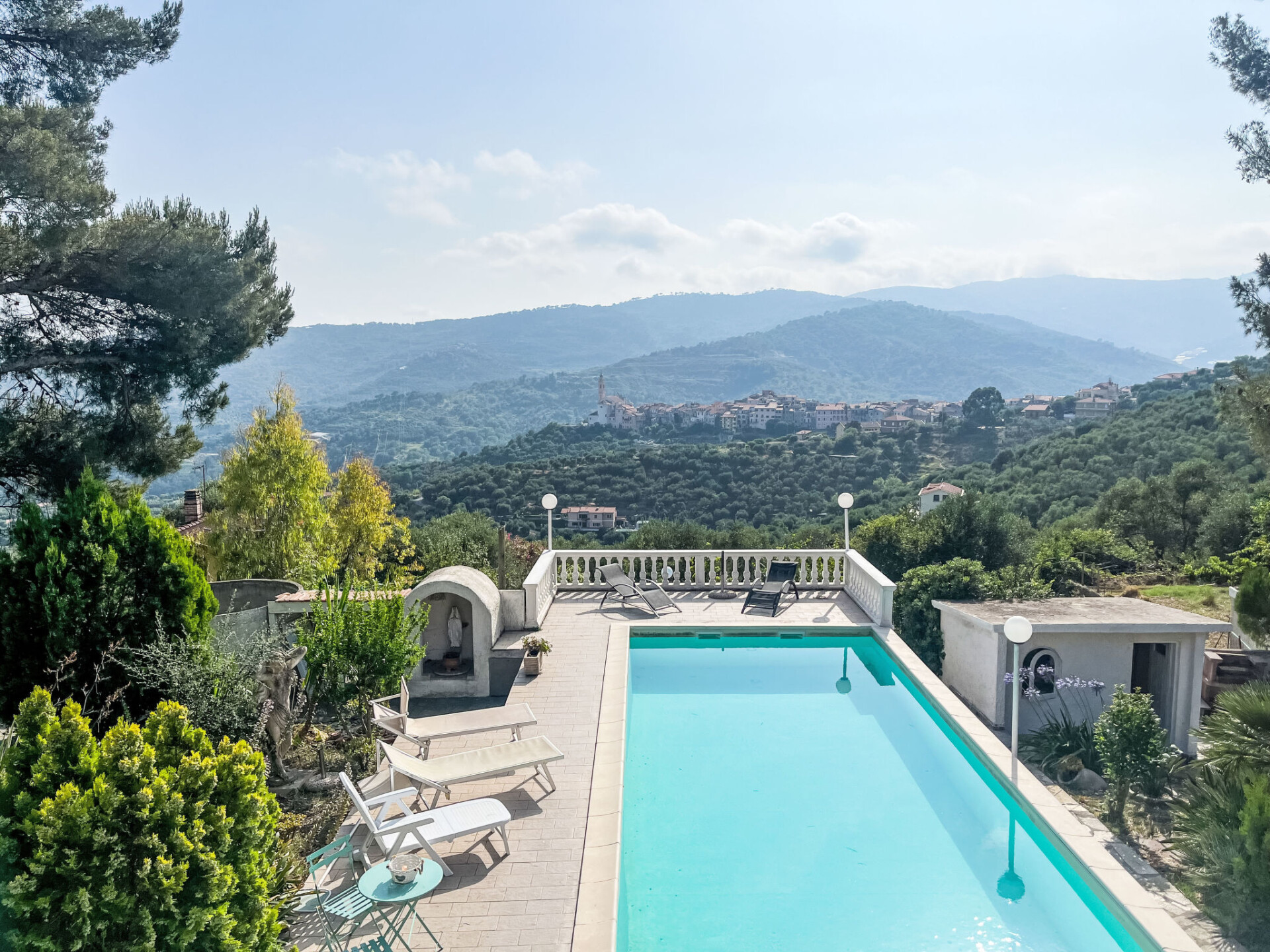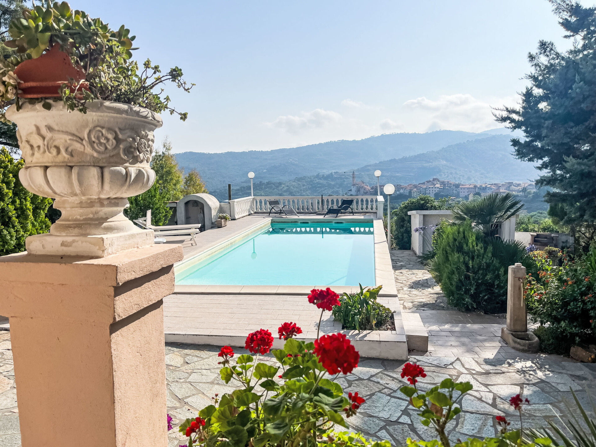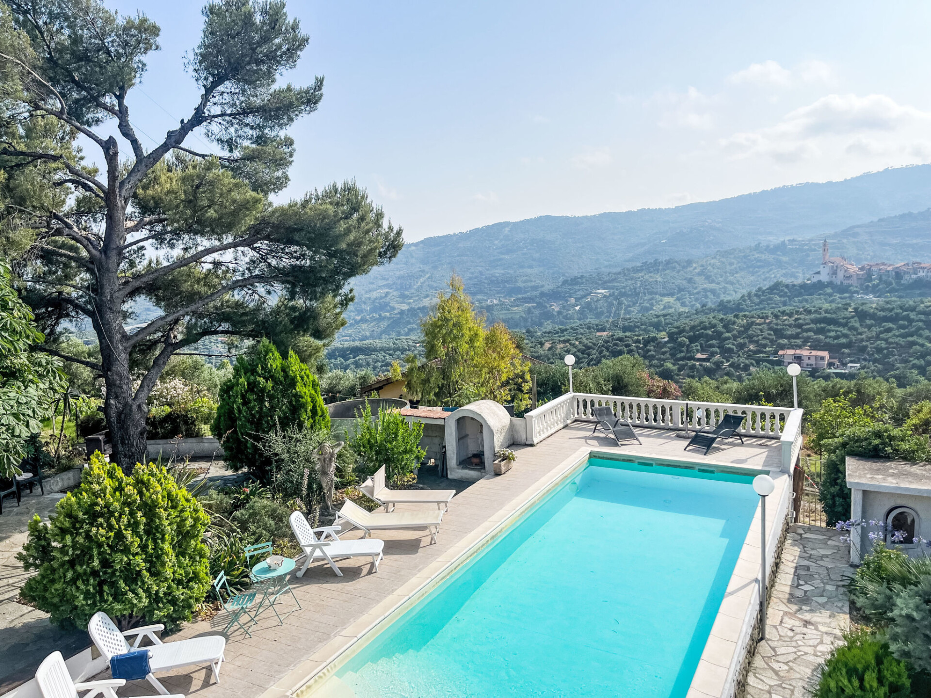 Huis met 2 woningen "Villa Jose", van 2 verdiepingen, vrijstaand, omgeven door bomen en velden. Boven Poggi, 2.5 km van het centrum van Poggi, 7 km van het centrum van Imperia - Porto Maurizio, 27 km van het centrum van San Remo, op een heuvel, 4.5 km van zee, te midden van groen. Voor medegebruik: terrein 5.000 m2 (omheind) met planten en bomen, openluchtzwembad (10 x 4 m, 140 cm diepte, seizoensgebonden beschikbaarheid: 15.Mei. - 30.Sep.). Patio, terras, tuinmeubelen. In het huis: wasmachine (voor medegebruik). Parkeerplaats op het terrein. Winkel 800 m, supermarkt 5 km, bushalte 190 m, treinstation "Imperia/Porto Maurizio" 8 km, zandstrand "Imperia - Porto Maurizio/Borgo Prino" 5 km, overdekt zwembad 8 km. Jachthaven 9 km. Een deel van het huis is afgesloten en niet bezet.